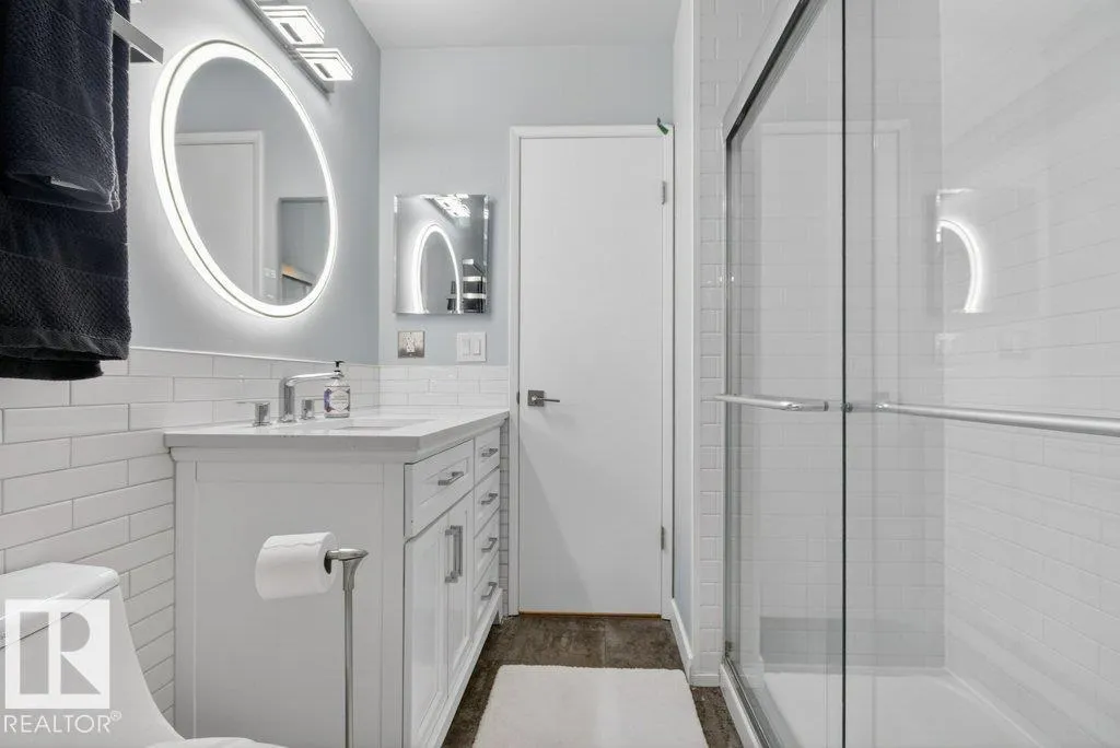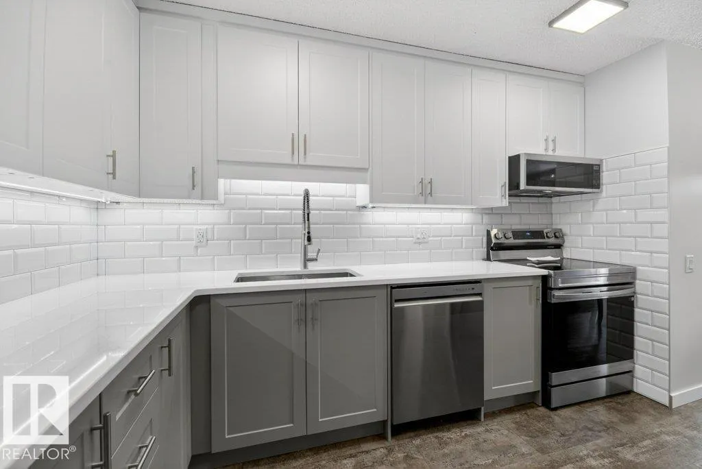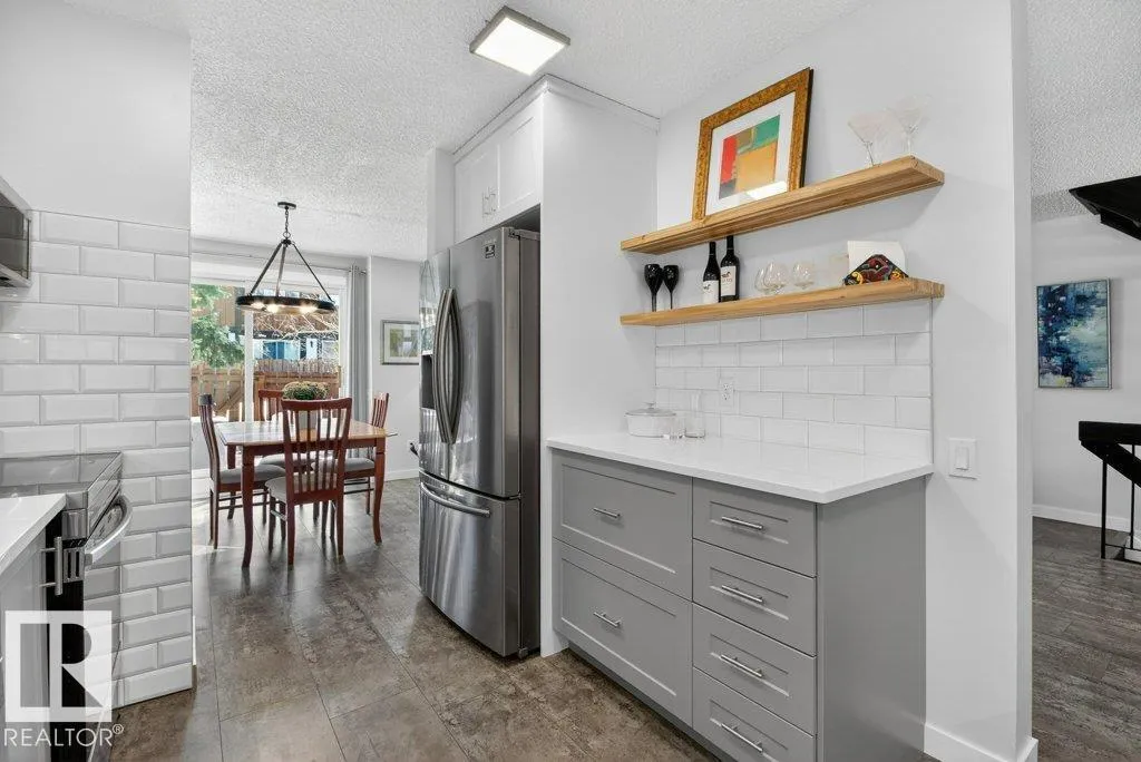 Beautifully renovated air conditioned townhouse in Hearthstone, an upscale condo complex in Brander Gardens, surrounded by big tress & mature landscaping near the river valley where you can enjoy exploring wilderness trails, Fort Edmonton Park, John Janzen Nature Centre & the future Edmonton Nordic Spa. The complex has had all the windows, garage doors & shingles replaced. Recently painted interior in contemporary shades & an amazing new kitchen with quartz counters & stainless steel appliances, modern bathrooms & new LED lighting throughout. Luxury vinyl tile flooring on main & upper levels. Spacious living/dining room with gas fireplace & patio door opening onto the FENCED backyard & patio. Three big bedrooms upstairs with 3 pce bath which has a large walk-in shower. The basement is developed with a recreation/exercise room, 3pce bath, laundry area & plenty of storage. Pets are welcome with Board approval. Easy access to Whitemud Fwy. A home for all ages! Move in & enjoy this wonderful neighbourhood! (id:27476)