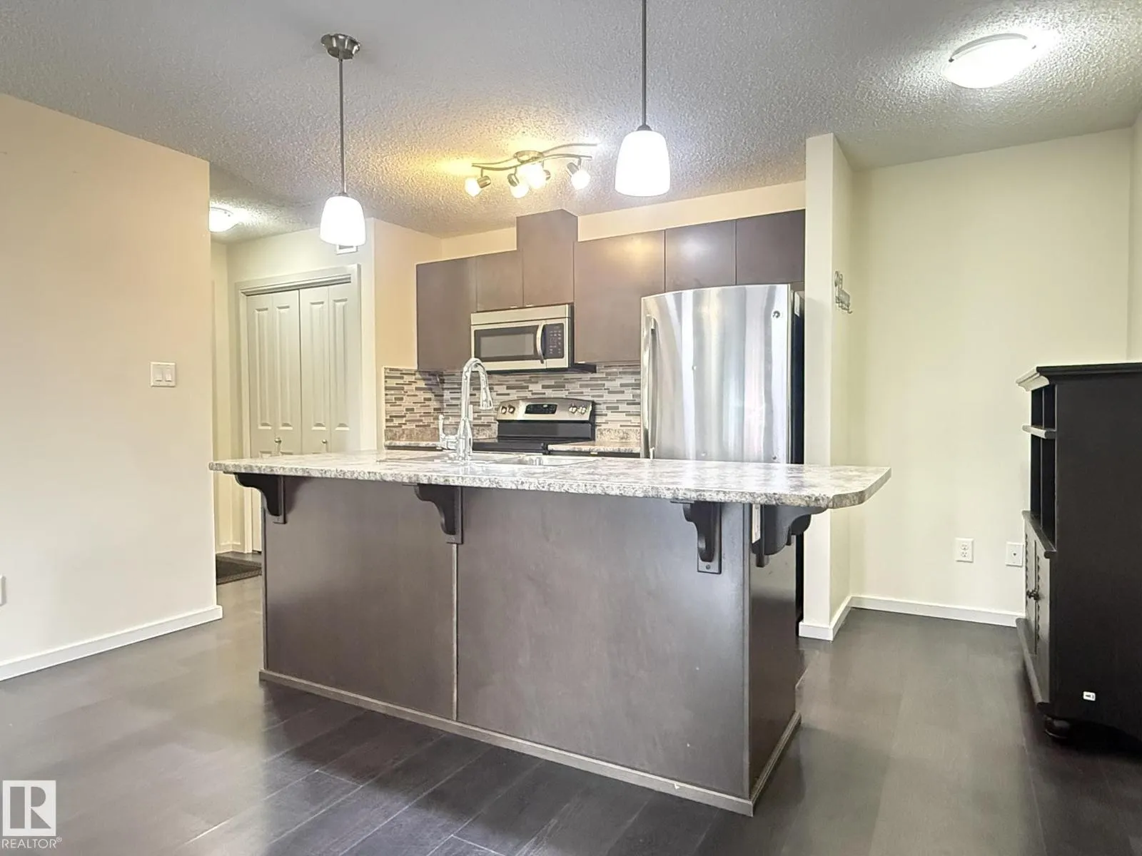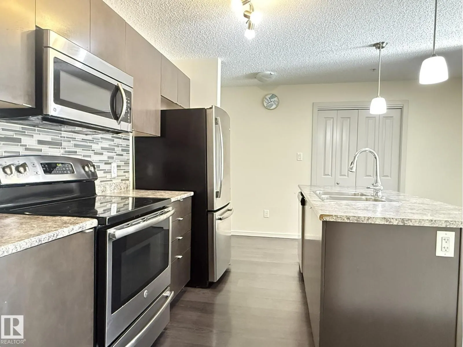 2 bedroom, 2 bathroom END UNIT on main floor with WRAP AROUND PATIO! Nice open living space with large island bar, SS appliances and pantry. Good sized bedrooms, primary has corner window, massive walk through closet with natural light and 4 piece bathroom. Laundry room has stackable washer/dryer and extra storage. This unit comes with 2 TITLED PARKING STALLS!-1 underground and 1 surface stall. This condo is in a great location, walking distance to shopping, dining, theatre, schools, playground, transit (id:27476)
