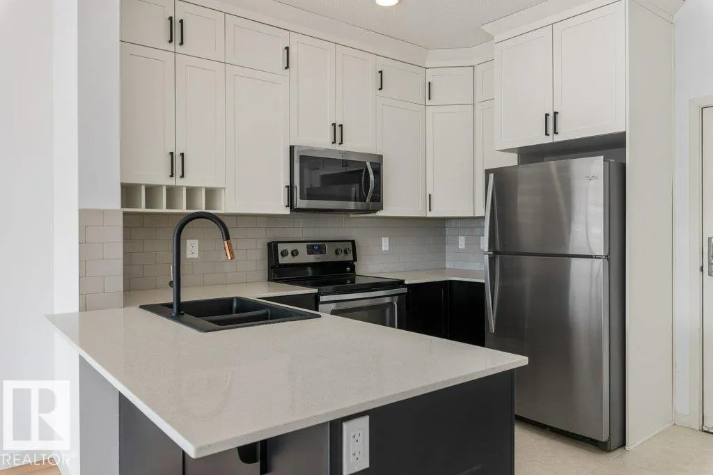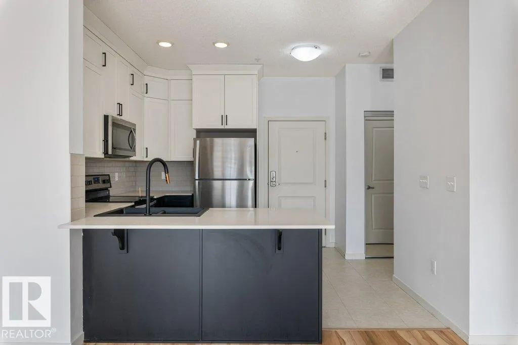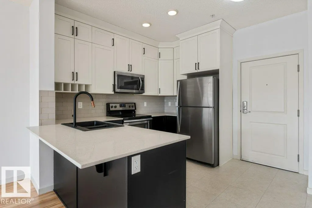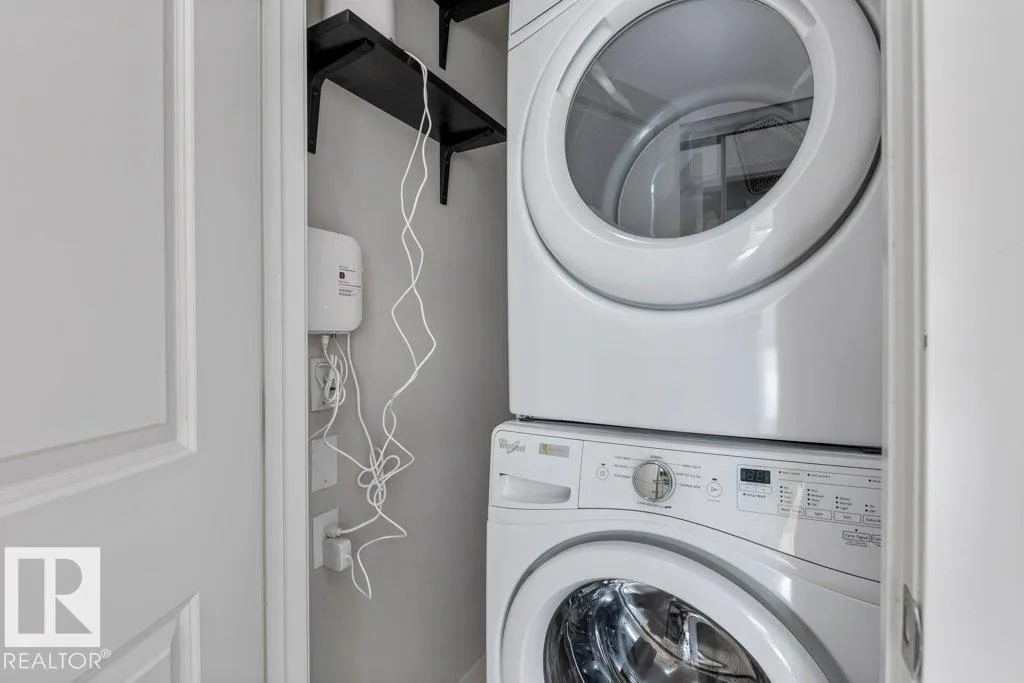 Welcome to this immaculate top-floor condo offering modern comfort and style! Featuring new carpet and fresh paint throughout, this open-concept layout is bright and inviting. The beautiful kitchen showcases stainless steel appliances and flows seamlessly into the living and dining areasâperfect for entertaining. This well-designed unit includes one spacious bedroom with a stylish barn door, a versatile den ideal for a home office, and 9â ceilings that enhance the airy feel. Enjoy the convenience of in-suite laundry and garbage chutes on every floor. The titled tandem underground parking stall includes a storage cage located just steps from the elevator. Immediate possession available! Ideally situated close to all major amenities, schools, shopping, and more, this move-in ready home is perfect for first-time buyers, investors, or those looking to downsize in comfort and style. (id:27476)