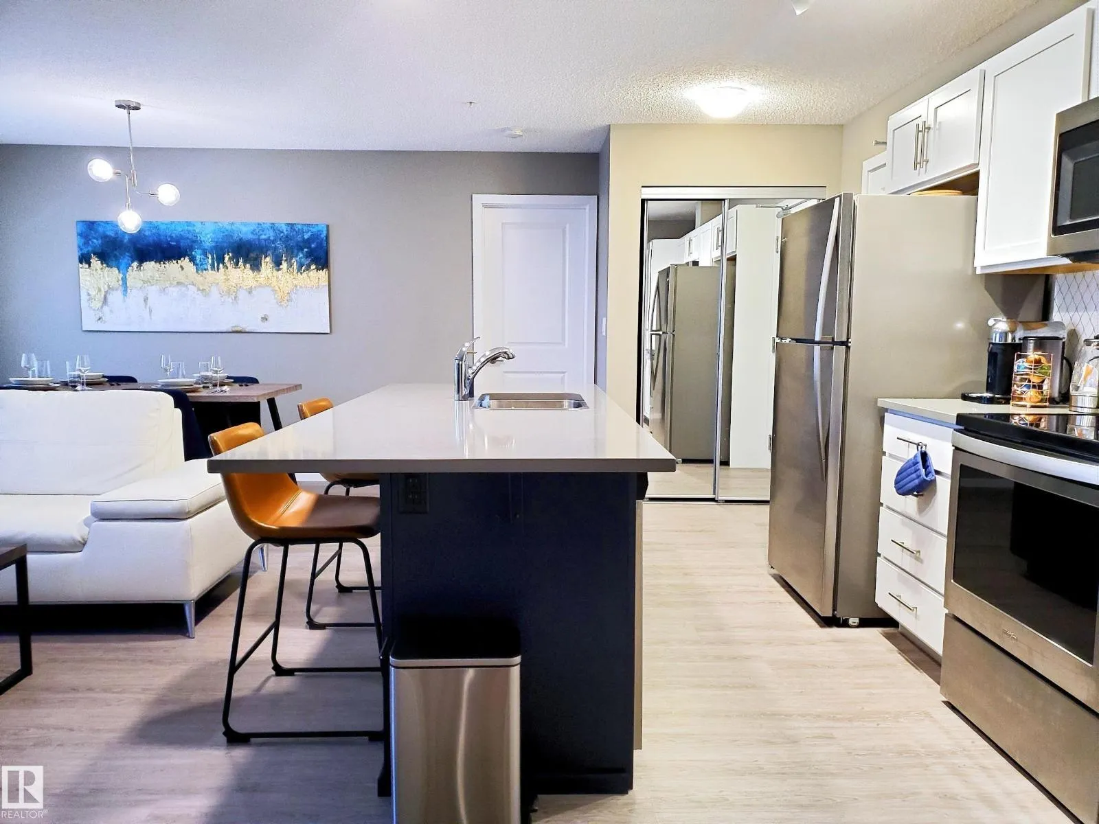 Experience Affordable Luxury at the Elements at Windermere. Discover modern urban living in one of Edmontonâs most prestigious communities. This impeccably designed 2-bedroom, 2-bathroom residence features a rare open-concept layout that masterfully balances style and function. The heart of the home is a sleek island kitchen flowing into a dedicated, spacious dining areaâa rare find that makes hosting dinner guests a delight. The thoughtful split-bedroom floor plan ensures maximum privacy, with the primary suite boasting a 4-piece ensuite and expansive closet. Enjoy the convenience of in-suite laundry and titled underground parking. Step outside to your private patio, perfect for long summer evenings. Located just steps from the Currents of Windermere, you are walking distance to VIP cinemas, gourmet dining, and boutique shopping. With quick access to Anthony Henday and nearby golf courses, this is more than a homeâitâs a lifestyle. (id:27476)