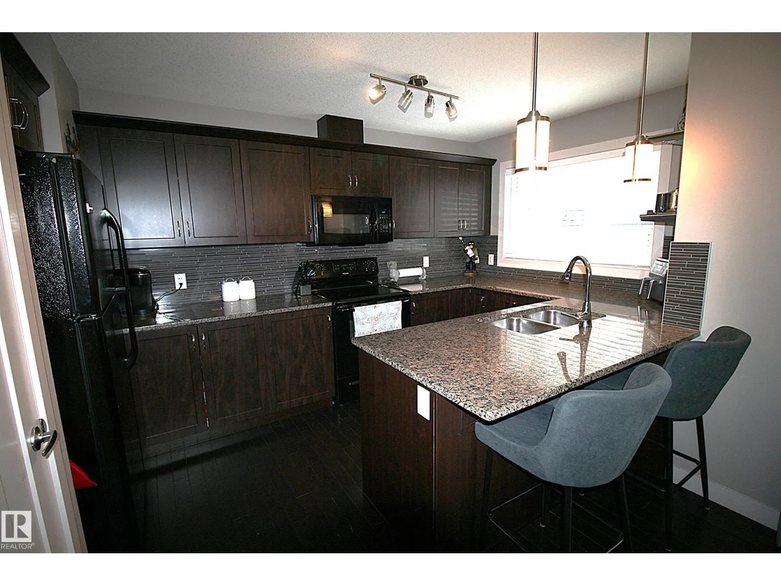 Affordable in Callaghan, this three bedroom well kept home is perfect for first time buyers, family living or investors. Close to Transit, parks and shopping, this home has quick access to James mowat trail(111 st), yet still in a quiet private location.Fully finished from top to bottom, including a two car garage for parking convenience, this end unit has the bonus of no neighbors on one side.Entering the home, we have a flex space and laundry area, with access to the garage.Up a short flight of stairs, we have luxurious mocha hardwood, and an open concept kitchen/dining and living space. The wonderful kitchen has plenty of cupboard space, sleek appliances and granite countertops.Enjoy mornings on your balcony, or soak up the ample natural light. A 2 piece bath room finishes off this level. Heading upstairs, we have a bonus area for a desk or comfy reading area.There are two good sized bedrooms for the kids, and the master is king sized with dual closets. A roomy 4 piece bath finishes off the top floor. (id:27476)