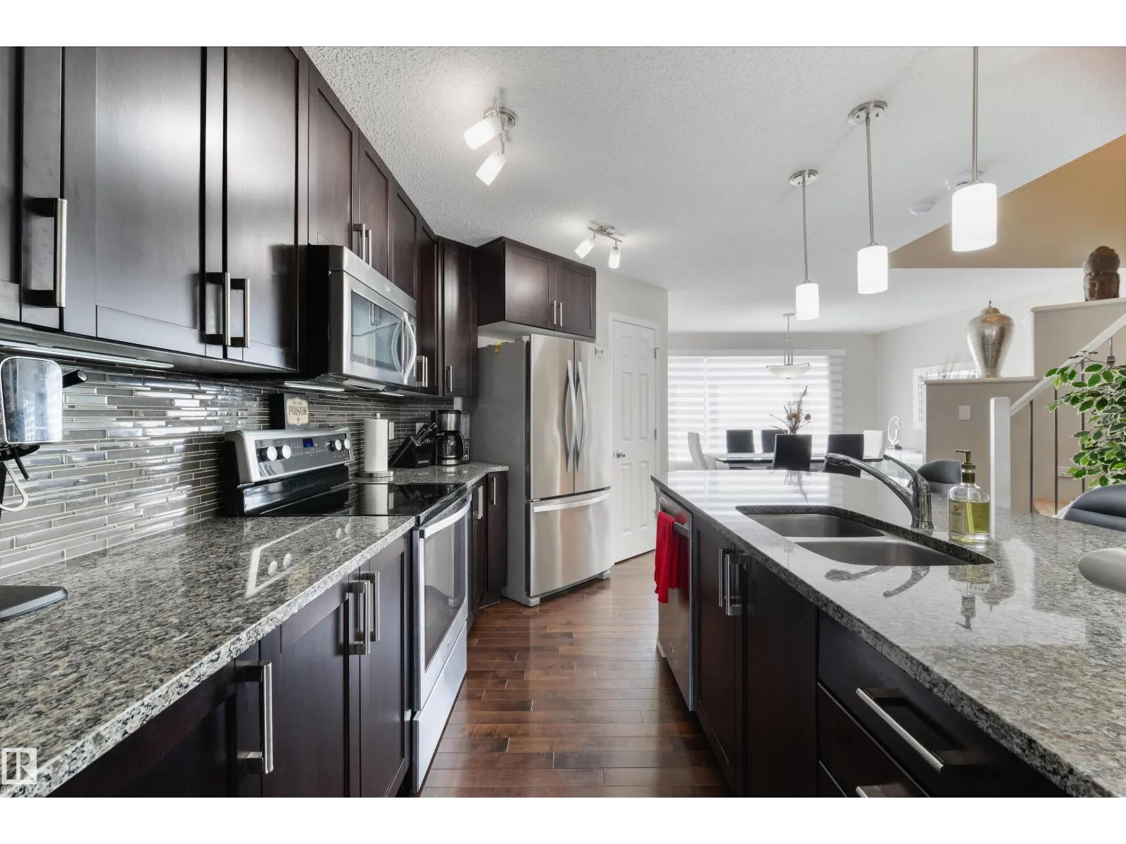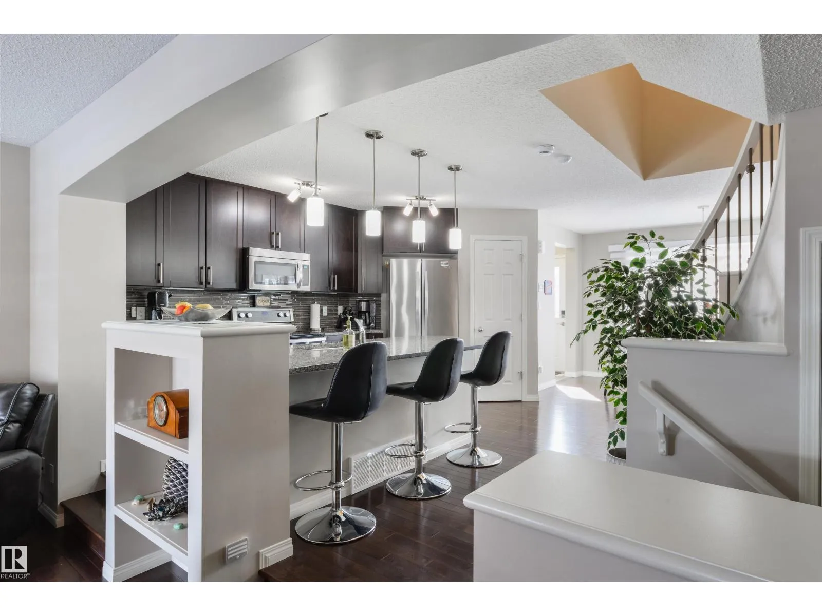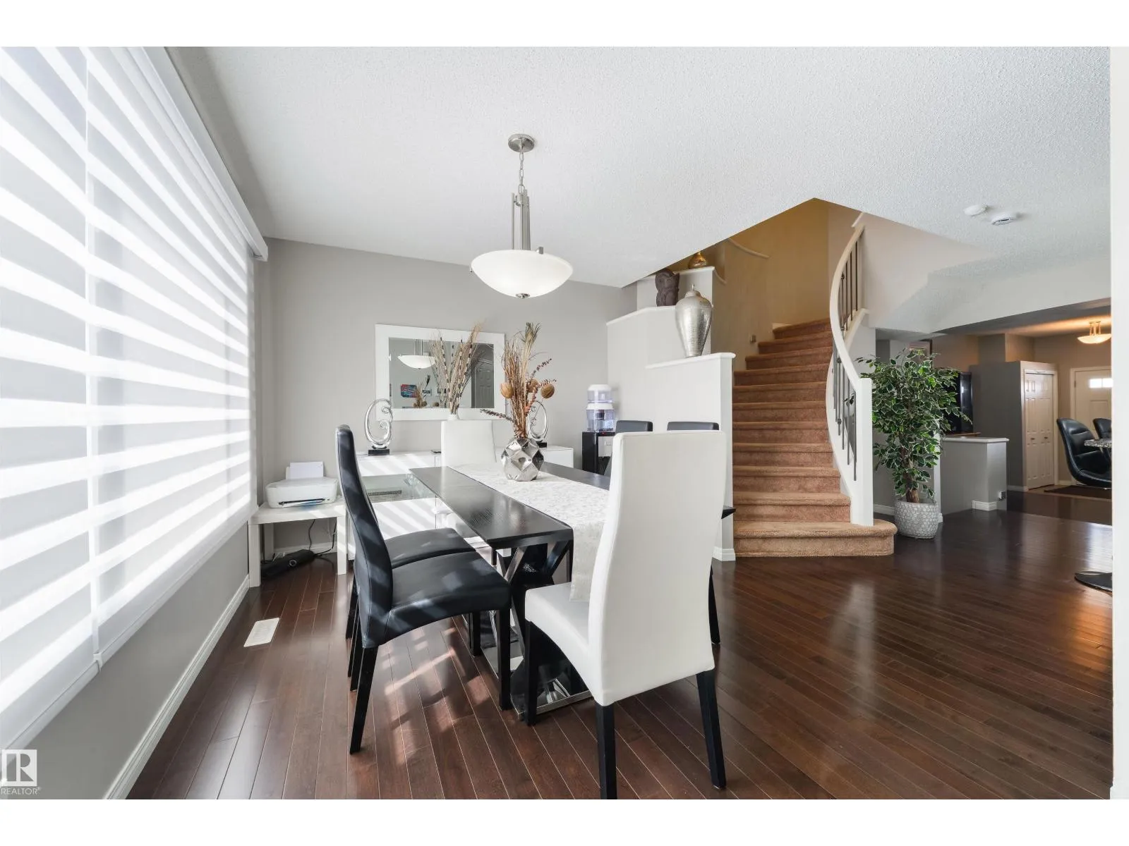 This is the one you have been waiting for! Immaculate and pride of ownership is evident. The main floor offers elegance and functionality. When you enter the home you will love the main living area with built in shelves and fireplace feature. The Kitchen has a great layout with breakfast bar, Granite Countertops, Stainless Steel appliances and pantry. The dining area can host large groups or families. Take the Curved staircase up to your private retreat. The Primary offers plenty of room for a King bed and furniture. The 5 pc ensuite is also separate from the walk in closet. There are two more good sized bedrooms on this level with accesss to a 4 pc bathroom. A conveniently placed laundry room completes this level. The home has designer Hunter Douglas blinds throughout with motorized ones in the dining area and primary bedroom. This home offers low maintenance with artificial turf in front and concrete in the back. There is extra an parking pad next to the oversized (26X26) Heated Garage. (id:27476)