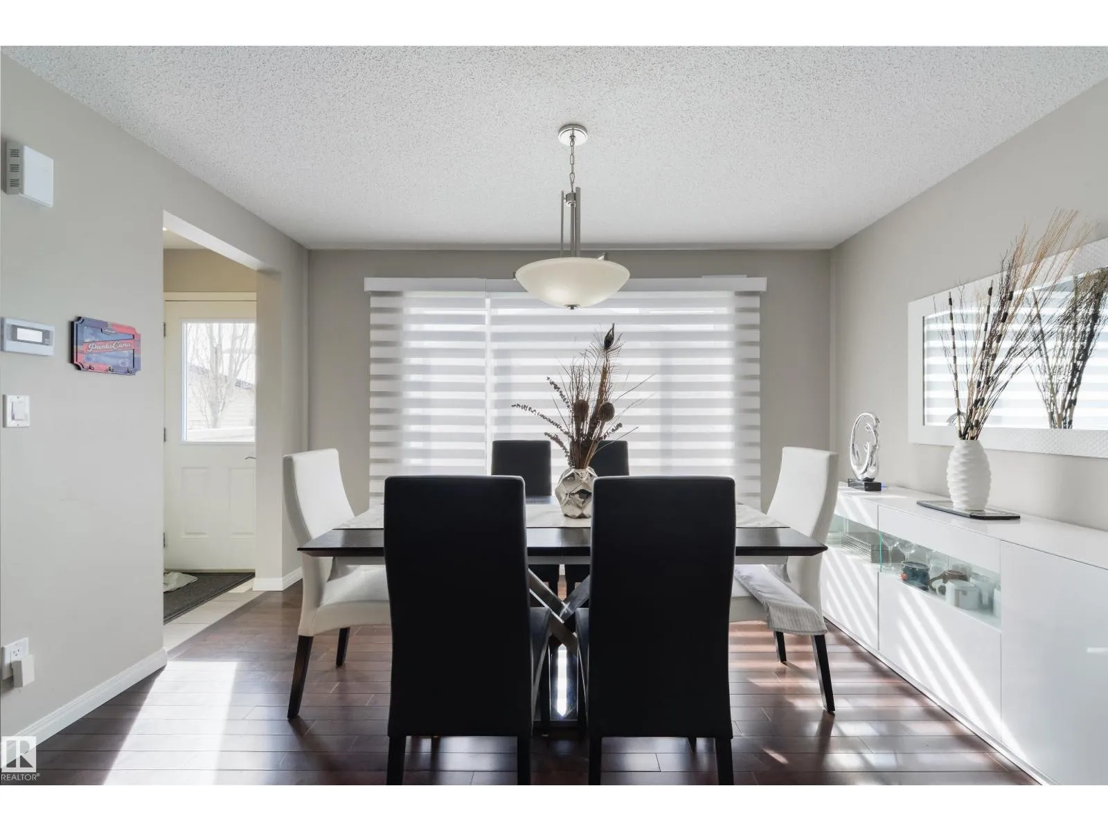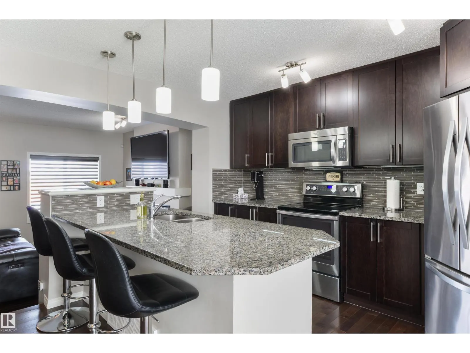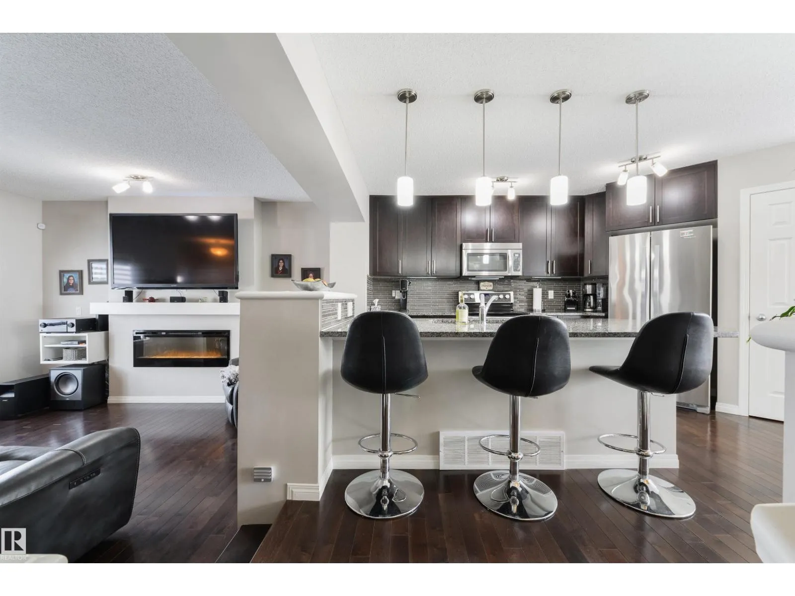 This is the one you have been waiting for! Immaculate and pride of ownership is evident. The main floor offers elegance and functionality. When you enter the home you will love the main living area with built in shelves and fireplace feature. The Kitchen has a great layout with breakfast bar, Granite Countertops, Stainless Steel appliances and pantry. The dining area can host large groups or families. Take the Curved staircase up to your private retreat. The Primary offers plenty of room for a King bed and furniture. The 5 pc ensuite is also separate from the walk in closet. There are two more good sized bedrooms on this level with accesss to a 4 pc bathroom. A conveniently placed laundry room completes this level. The home has designer Hunter Douglas blinds throughout with motorized ones in the dining area and primary bedroom. This home offers low maintenance with artificial turf in front and concrete in the back. There is extra an parking pad next to the oversized (26X26) Heated Garage. (id:27476)
