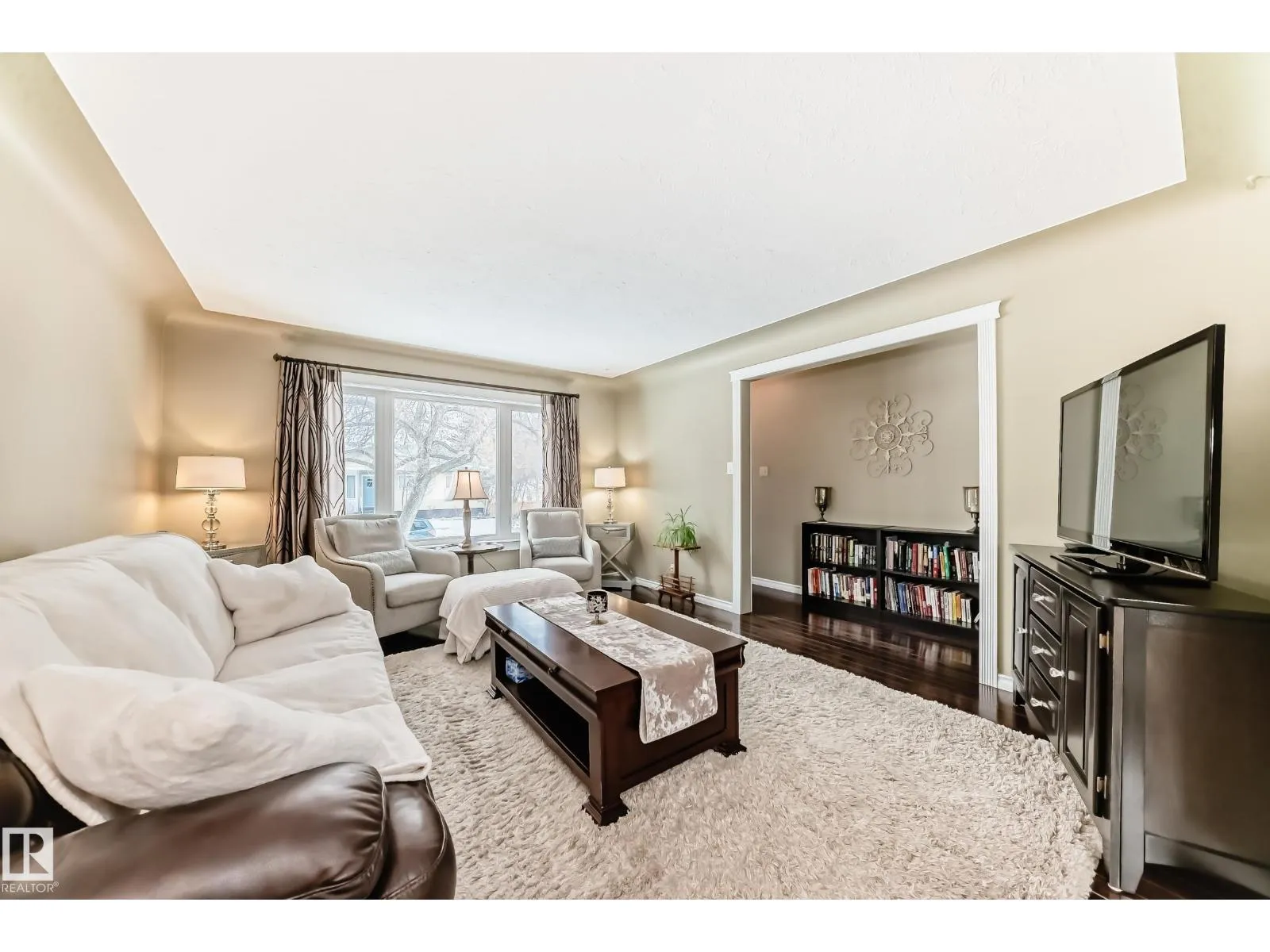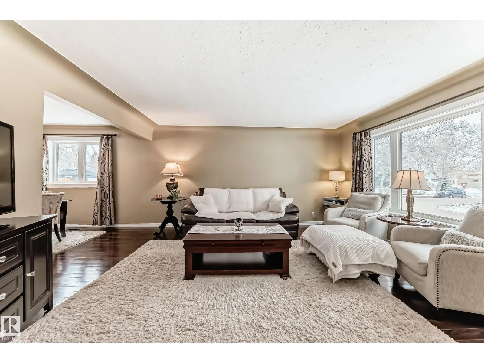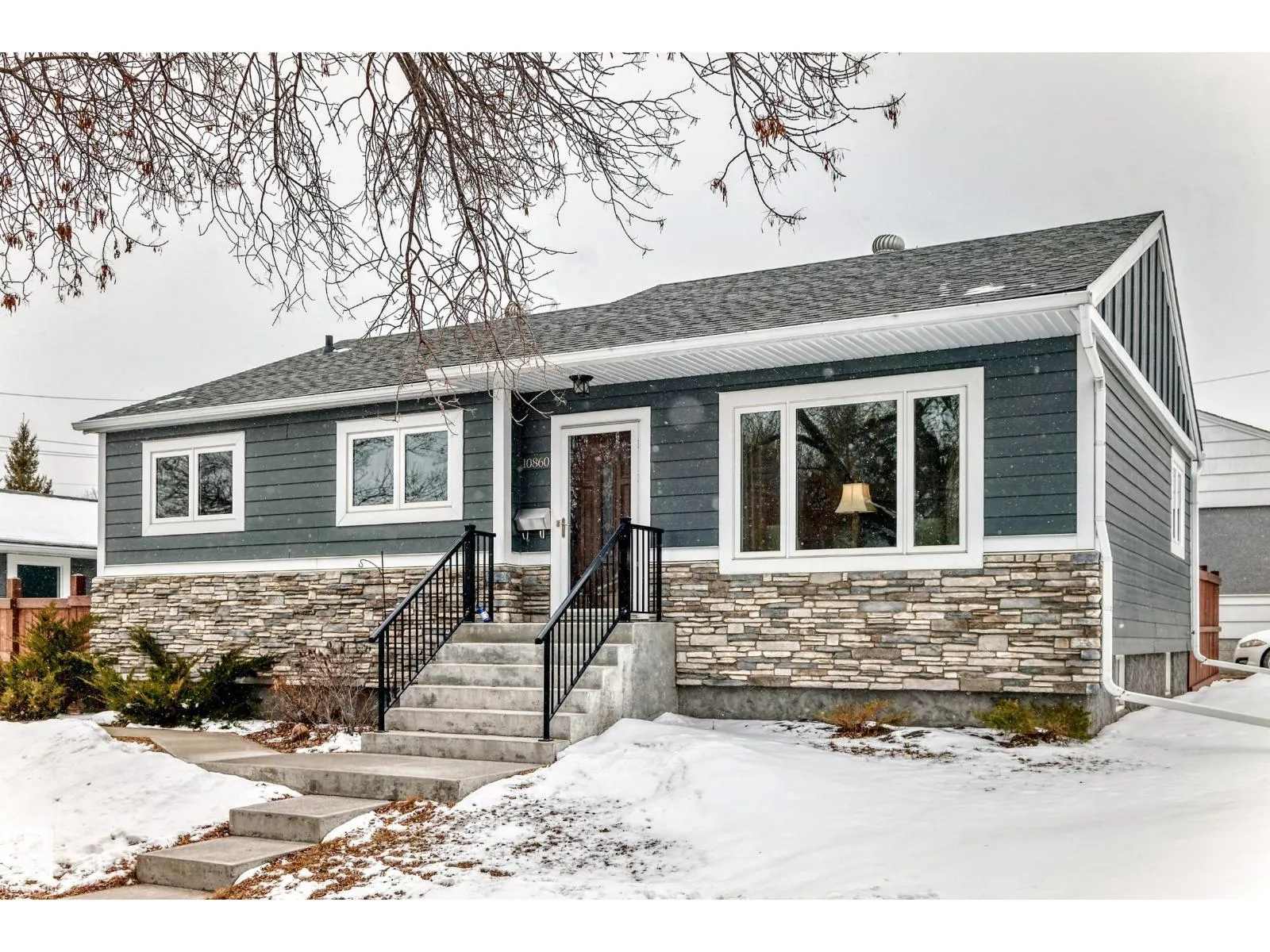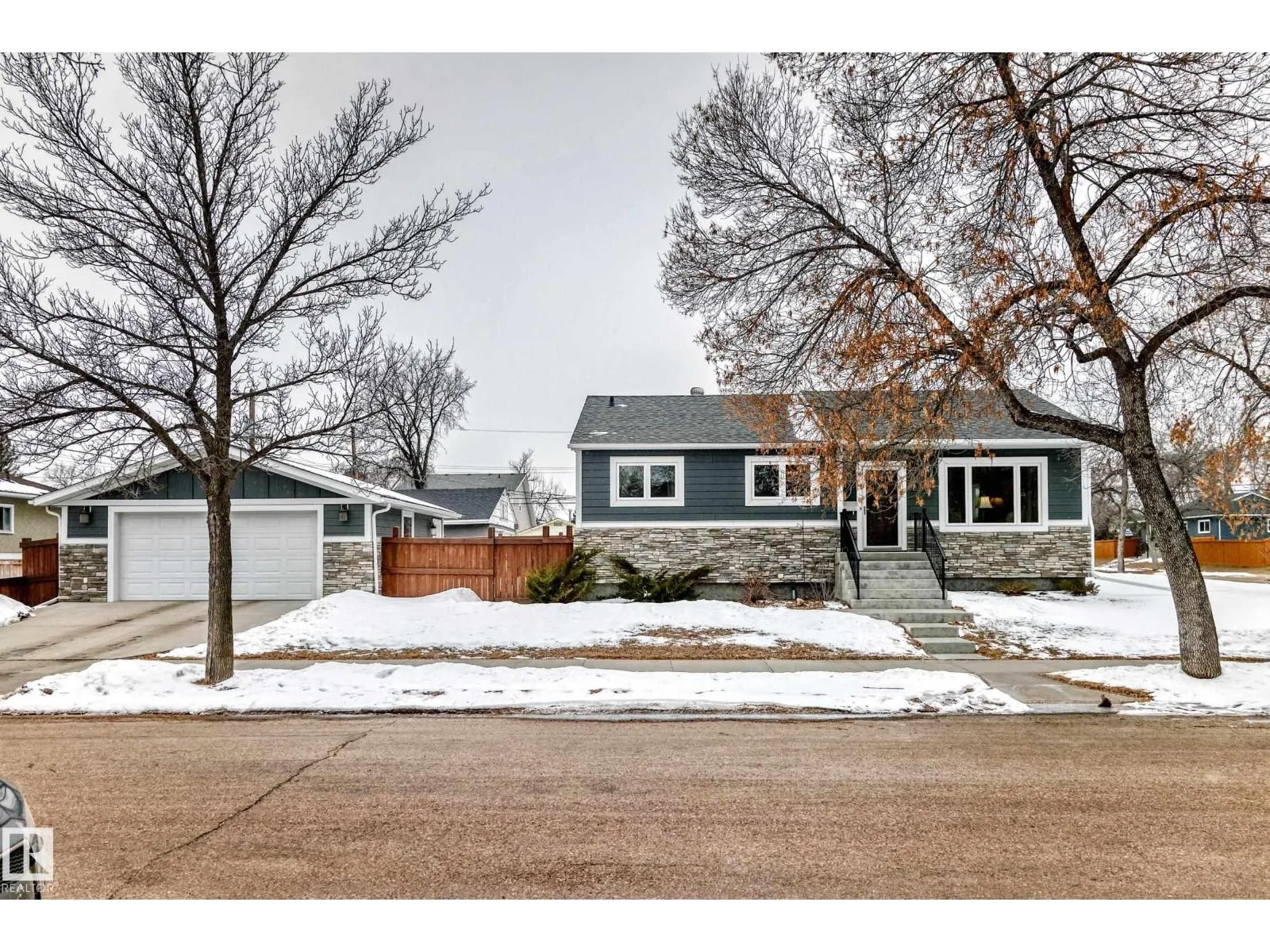 This beautifully and extensively professionally renovated 3+2 bedroom bungalow is a must-see, perfectly located on a picturesque tree-lined street in McQueen. Exceptional exterior upgrades include newer Hardie Board siding,stone, windows, shingles, soffit, fascia, eaves, and sidewalksâoffering both style and peace of mind. Step inside to a warm, inviting interior featuring gleaming hardwood floors, an upgraded kitchen with modern countertops, and a stunning 5-piece bathroom. The fully finished basement adds incredible versatility with 2 additional bedrooms, a spacious rec room, and a second kitchen with islandâideal for extended family or potential suite living. Complete with a newer oversized double garage, beautiful patio, landscaped yard, and newer fencing. Priced perfectlyâthis is an opportunity you donât want to miss. (id:27476)