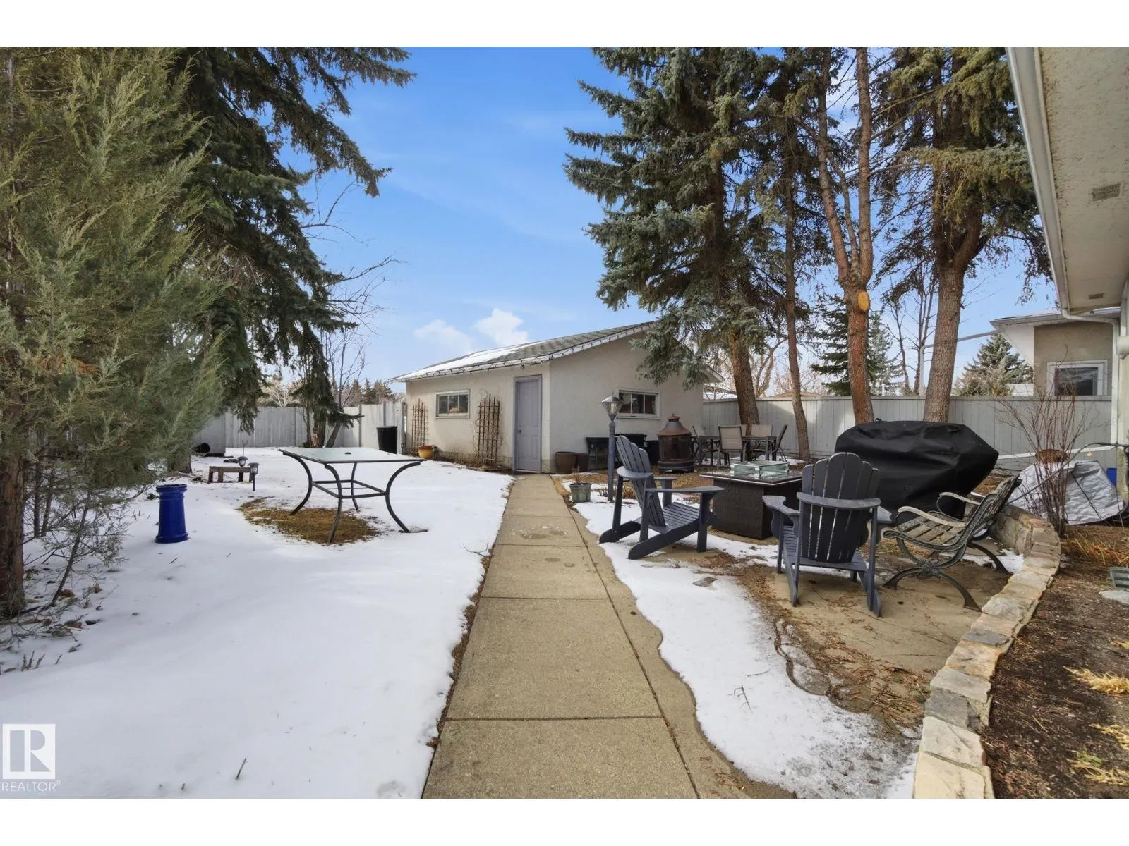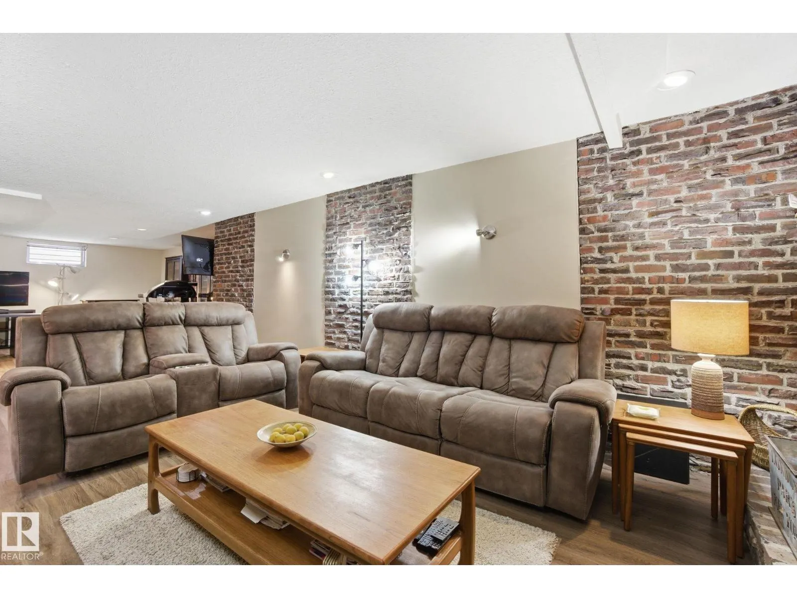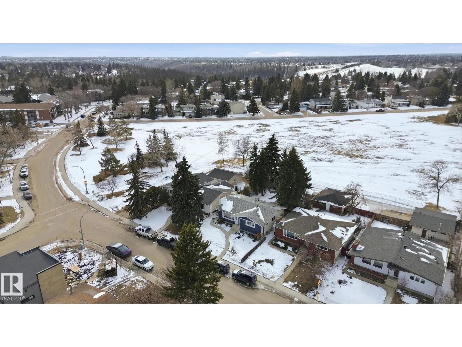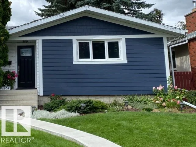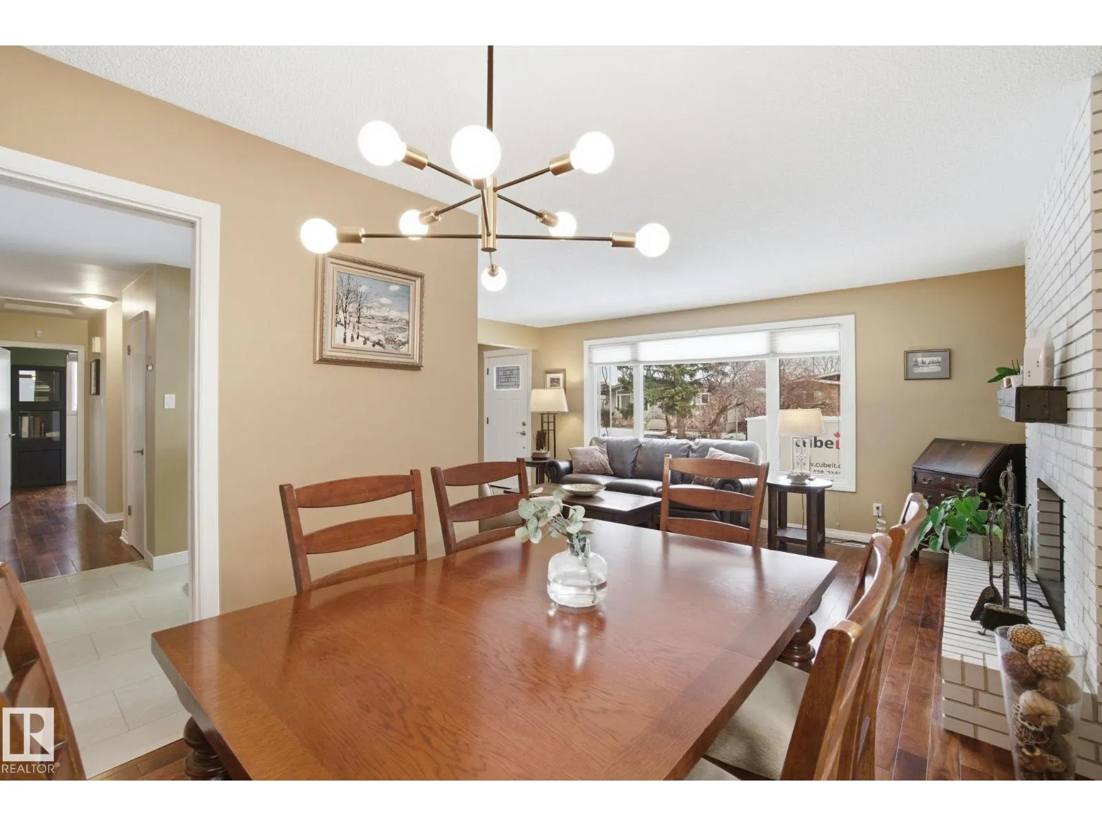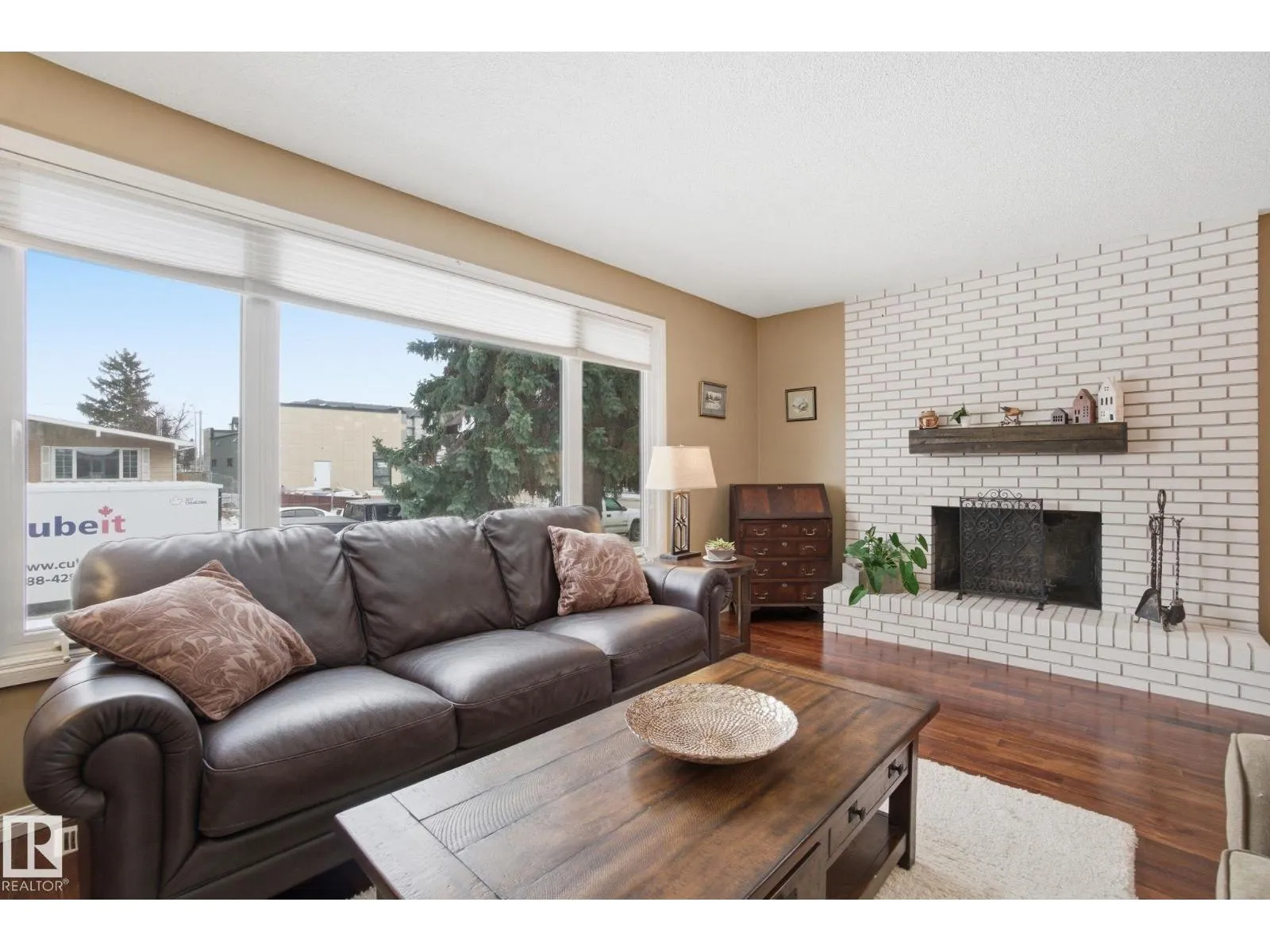 BACKING LANSDOWNE PARK! This gorgeous 4 bed 2.5 bath bungalow is perfectly located, spacious, bright and substantially updated! The kitchen has modern 2-tone wood & white cabinets, quartz counters, artisan tile backsplash & stainless steel appliances. There's a breakfast bar for seating & a formal dining area with a modern chandelier & mid-mod built-in china cabinet. The large living room has huge vinyl windows, hardwood floors & a brick wood-burning fireplace. 3 bedrooms on the main, an updated bathroom with quartz counters, 2 sinks, black faucets & custom tile tub surround. The primary has a 2pc ensuite & 2 closets. The basement is fully finished with vinyl flooring & carpet, a 2nd wood burning fireplace in the cozy family room, a flex space which can host an office, gym, or games area. There's also a 4th full bedroom, another full bathroom with a shower, laundry room & storage. Incredible neighbourhood - quick to Whitemud, University / Downtown. Backs onto Lansdowne Park & School / Community Hall. (id:27476)