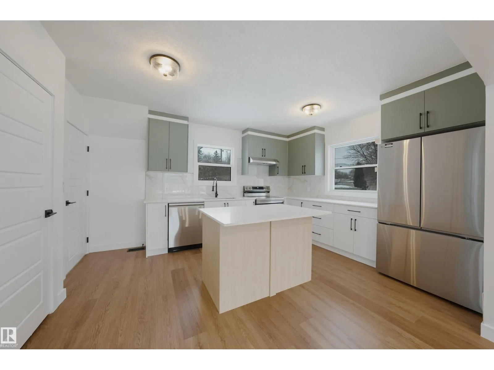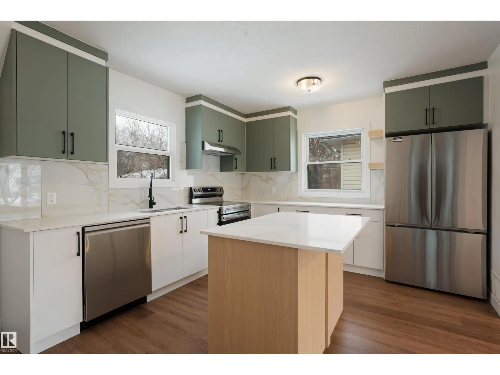 Welcome to this beautifully fully renovated home on a large 55â x 123â lot in the established community of Newton, within walking distance to elementary schools. This spacious property offers 6 bedrooms and 2 full bathrooms, making it perfect for families, first-time buyers, or investors seeking rental potential. The main floor features 3 bright bedrooms with large windows, a welcoming living room with a stylish feature wall, and a stunning modern kitchen with island, quartz countertops, and brand new stainless steel appliances. The fully finished basement includes 3 additional bedrooms, a fully renovated bathroom, separate entrance, brand new kitchen with new appliances, and its own laundry, ideal for extended family living. Recent upgrades include new windows, doors, baseboards, flooring, paint, modern lighting, renovated bathrooms, and two new kitchens. Outside features a large fenced yard with mature trees, detached single garage, storage shed, and hot tub. Close to schools, parks, transit & shopping. (id:27476)