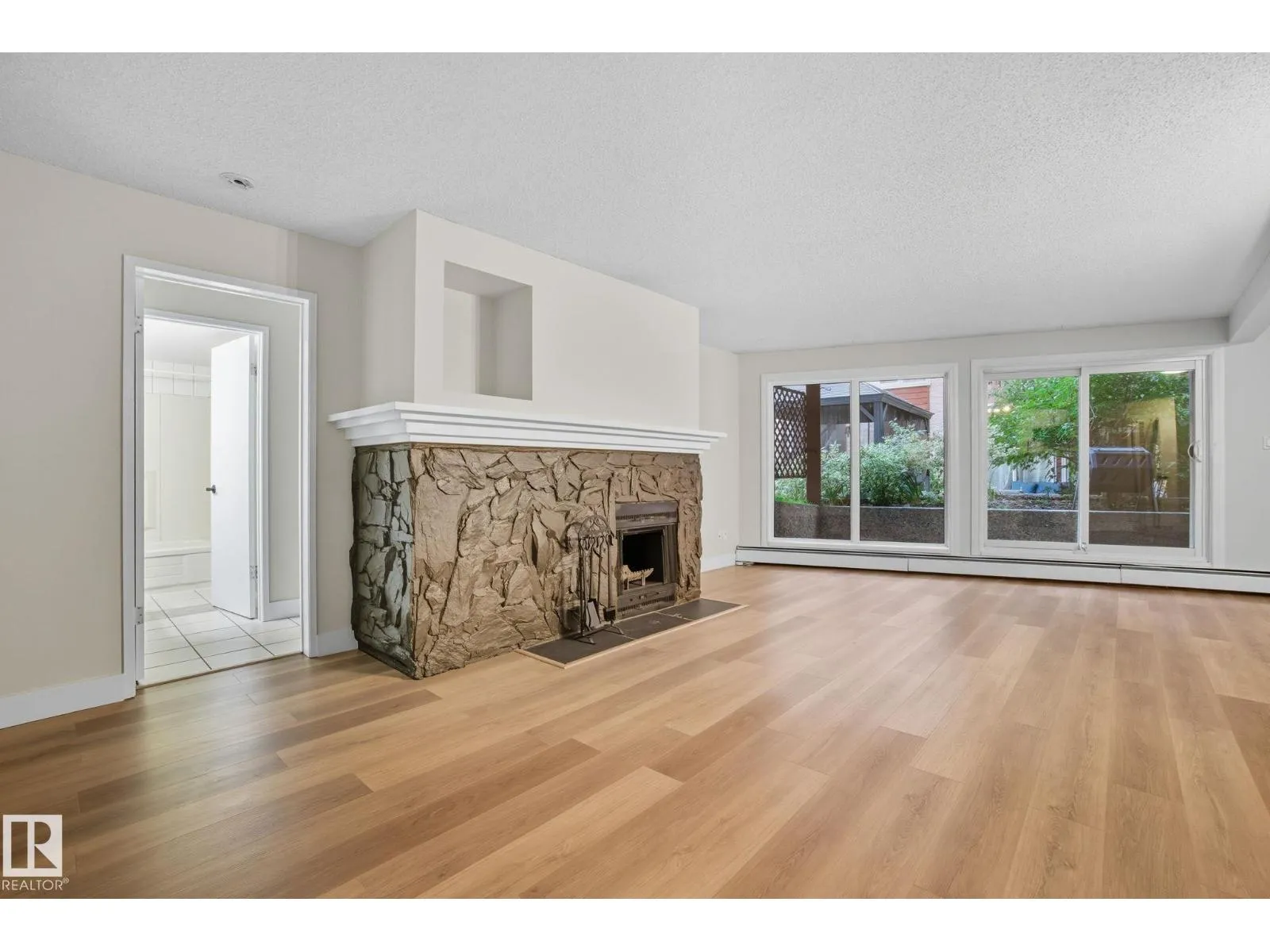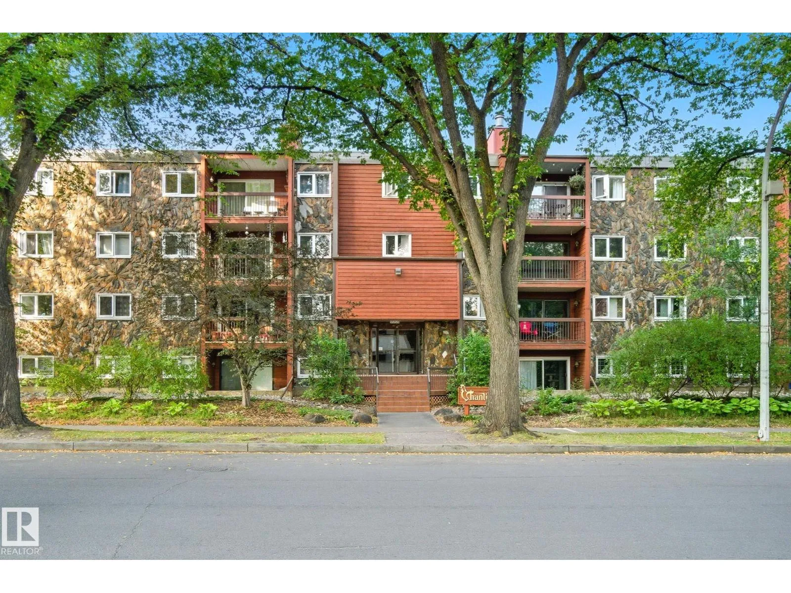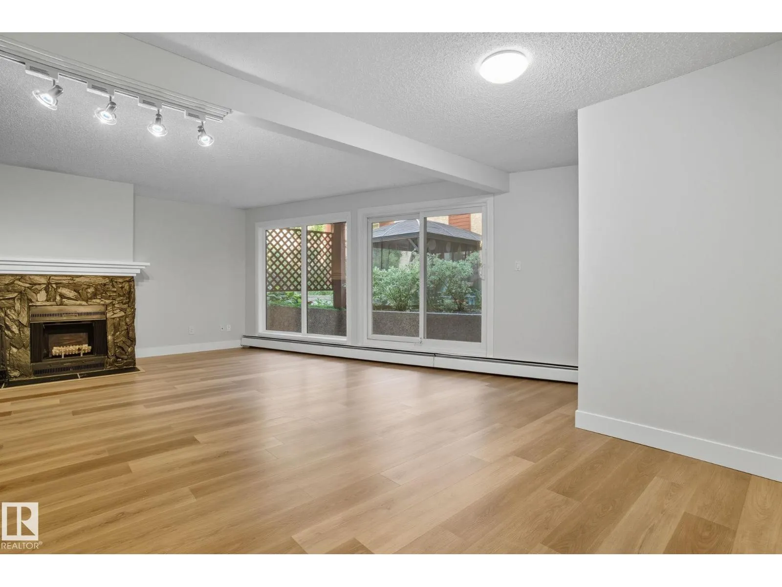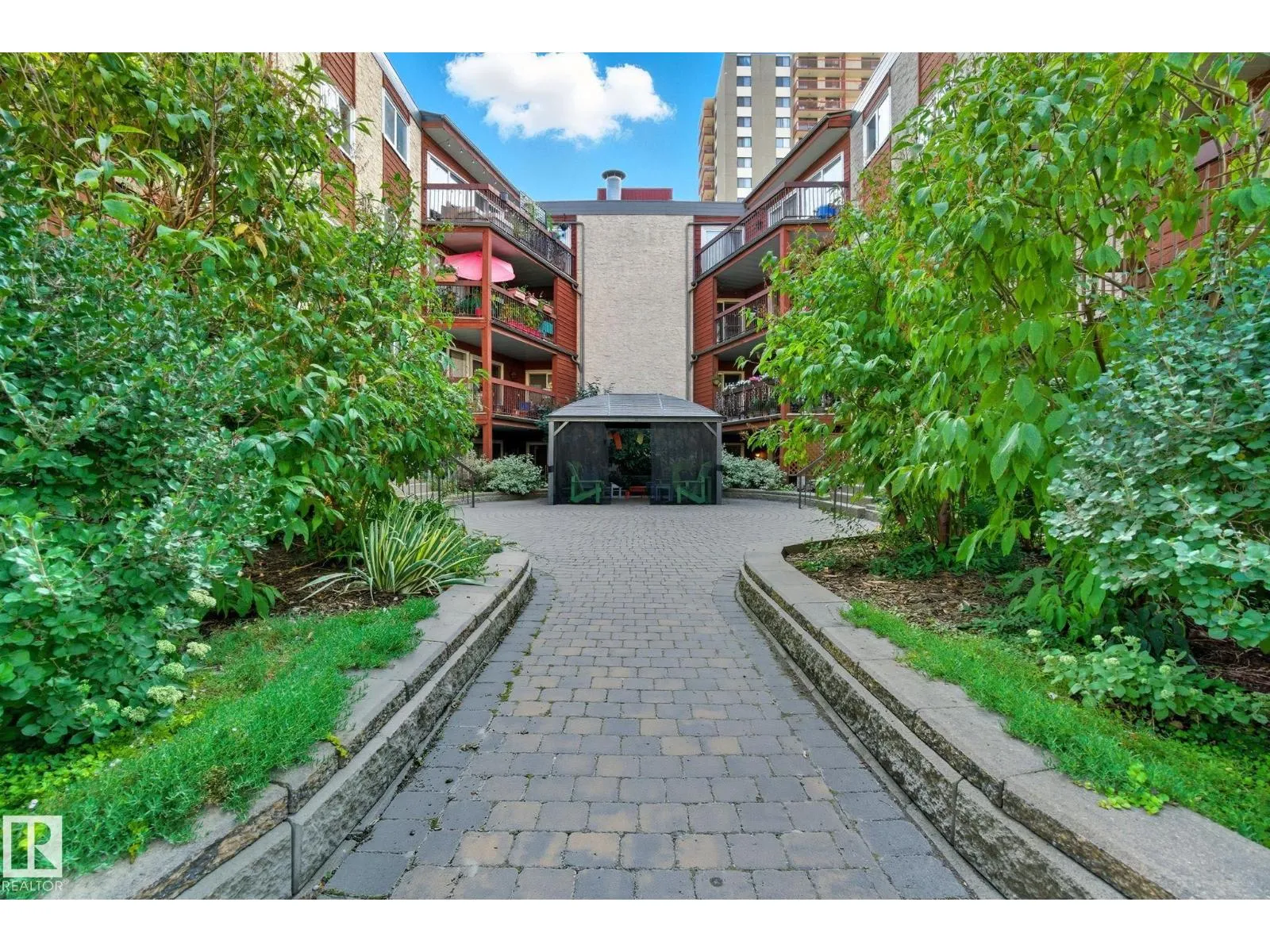 Best Value in Central Edmonton! Welcome to the Chanticleer! This Beautifully renovated 2 bedroom home boasts over 1200 sq ft! Renovated kitchen with gorgeous white cabinetry, quartz countertops, SS appliances and new tile backsplash. The bedrooms are at separated by the massive living area at opposite ends of the home and each has it's own large closet and full bath. Situated on the ground floor for ease of access, the unit is private and secure as it faces the serene central courtyard, with access from both the main living area and the bedroom with huge patio doors. Numerous Additional upgrades include new vinyl flooring, light fixtures,a timeless and cozy wood-burning fireplace and new paint throughout. Well-managed complex offers underground parking, in-suite laundry and plenty of storage including a locker in the parkade. This spacious unique home has no neighboring unit on either side and is located in one of the nicest pockets of downtown our city has to offer. Quiet building allows 1 cat per suite (id:27476)
