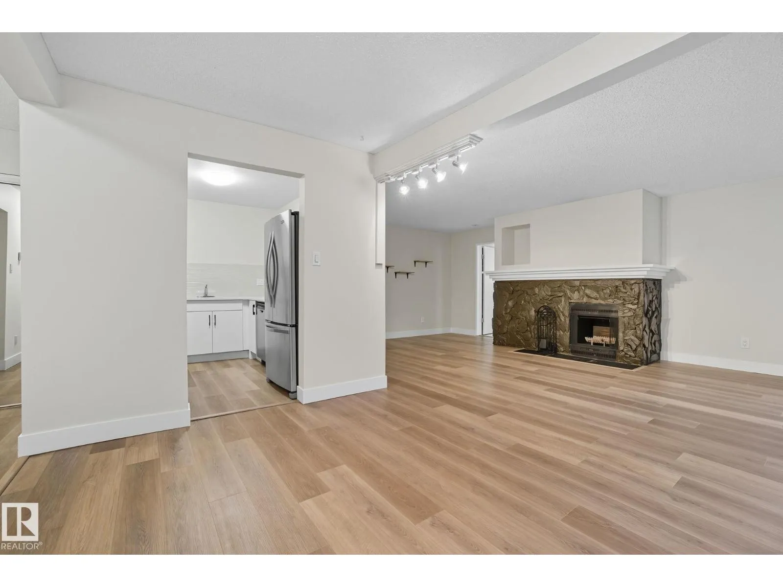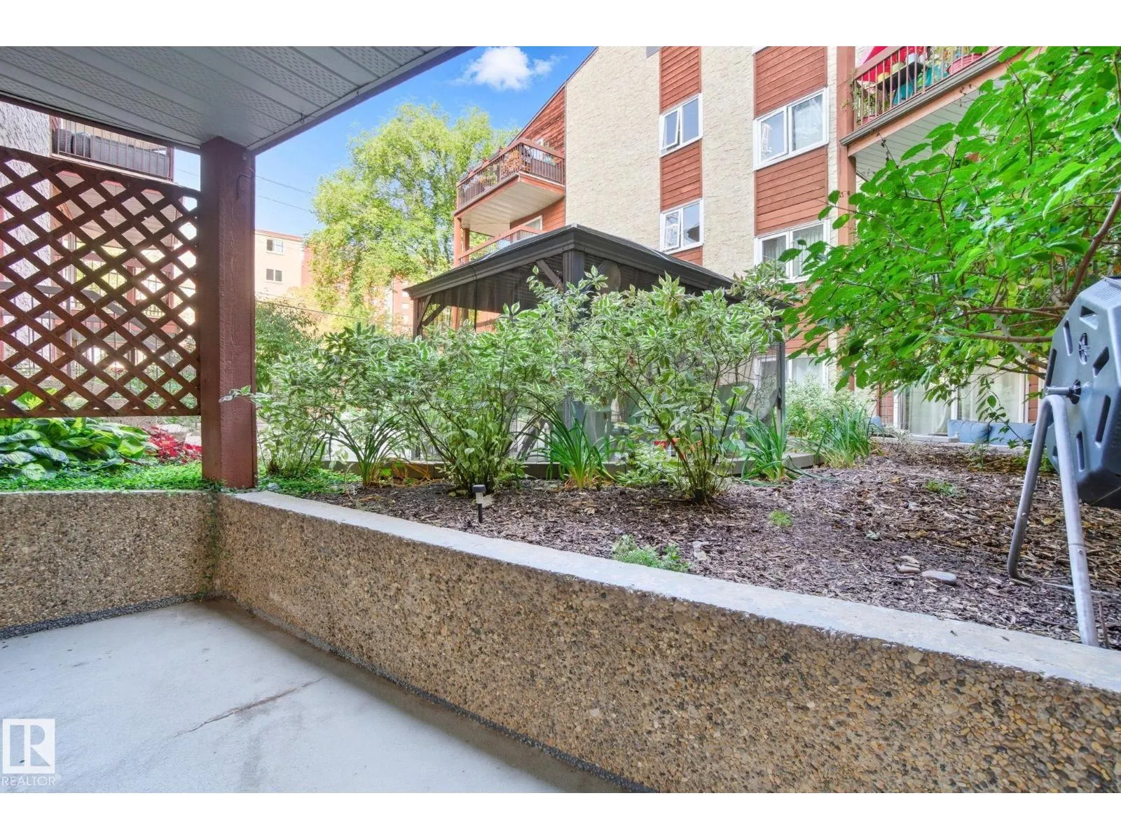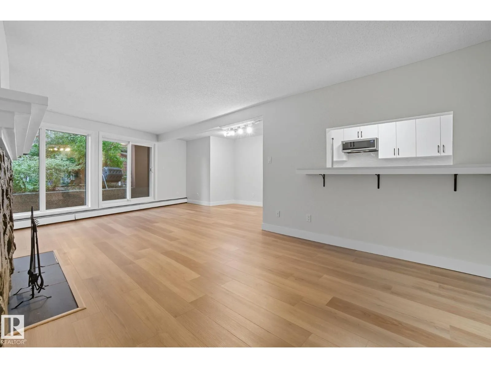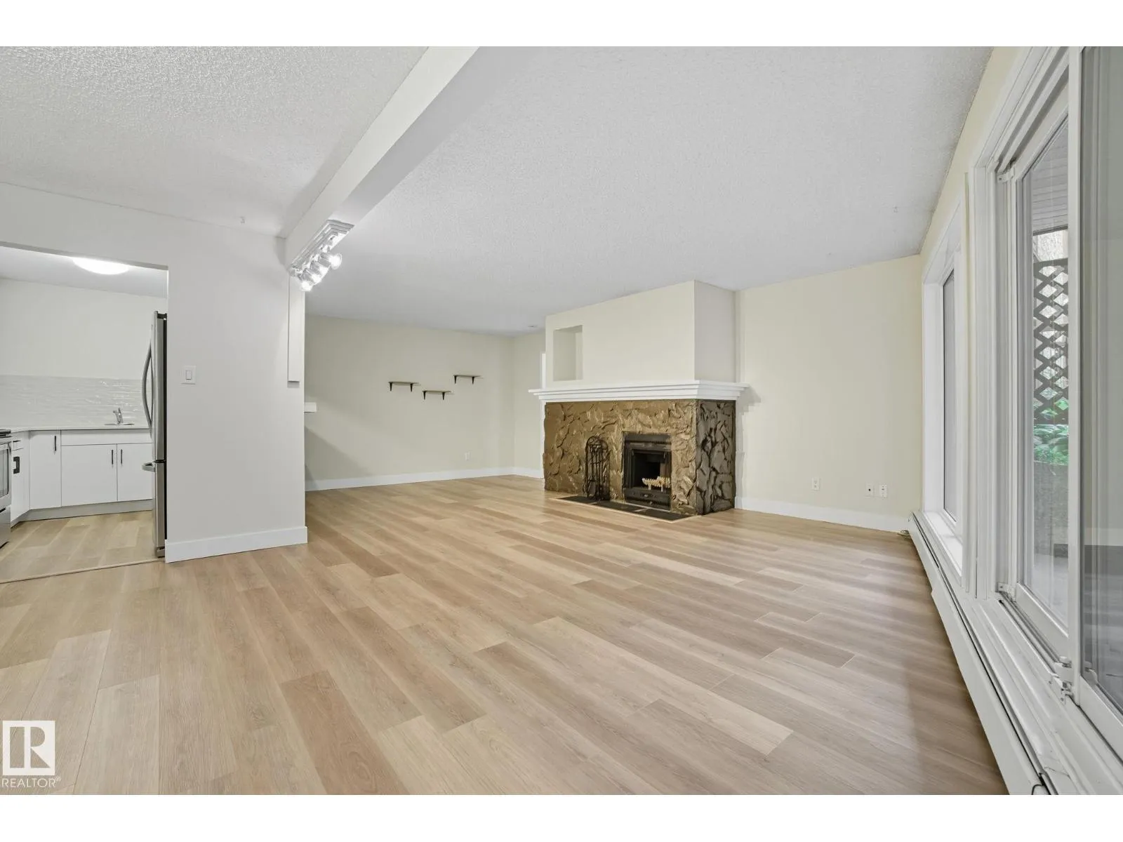 Best Value in Central Edmonton! Welcome to the Chanticleer! This Beautifully renovated 2 bedroom home boasts over 1200 sq ft! Renovated kitchen with gorgeous white cabinetry, quartz countertops, SS appliances and new tile backsplash. The bedrooms are at separated by the massive living area at opposite ends of the home and each has it's own large closet and full bath. Situated on the ground floor for ease of access, the unit is private and secure as it faces the serene central courtyard, with access from both the main living area and the bedroom with huge patio doors. Numerous Additional upgrades include new vinyl flooring, light fixtures,a timeless and cozy wood-burning fireplace and new paint throughout. Well-managed complex offers underground parking, in-suite laundry and plenty of storage including a locker in the parkade. This spacious unique home has no neighboring unit on either side and is located in one of the nicest pockets of downtown our city has to offer. Quiet building allows 1 cat per suite (id:27476)