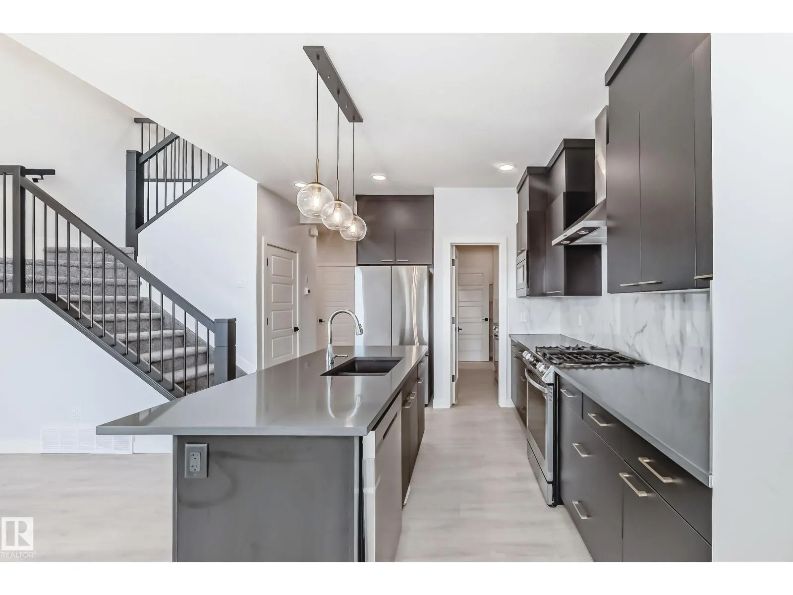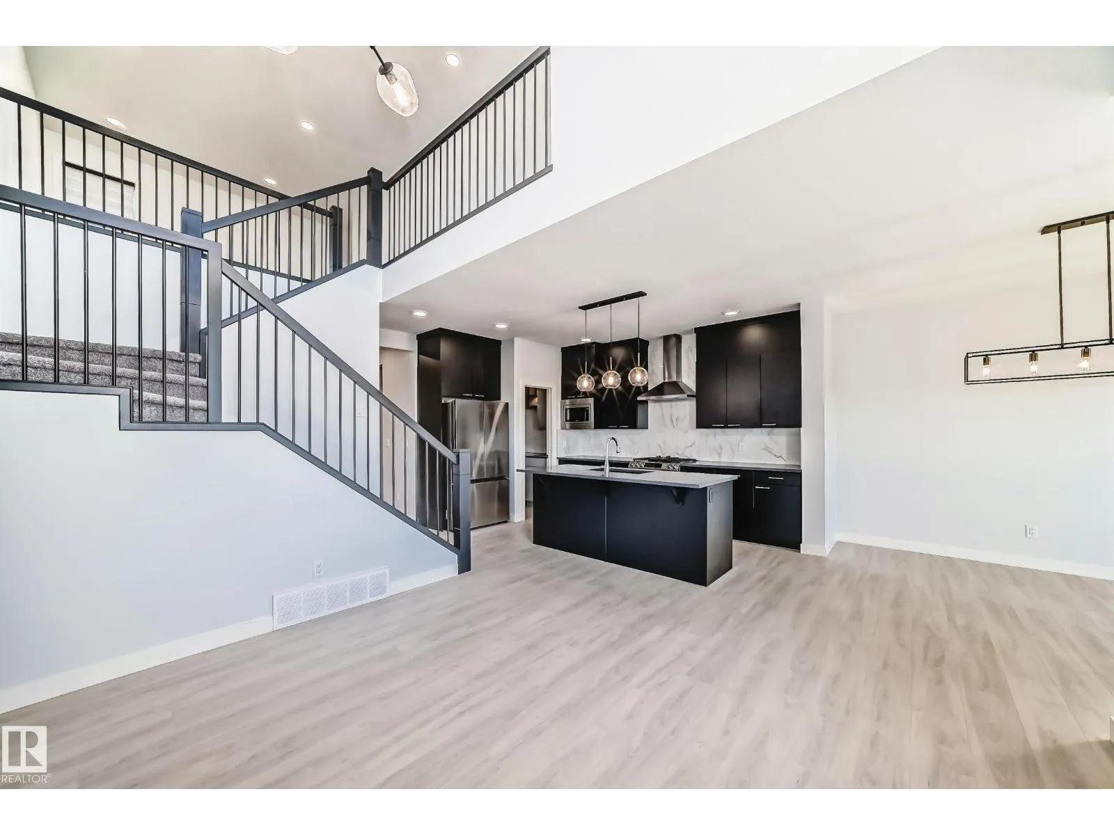 Welcome to the desirable Orchards community in Southeast Edmonton. This single-family shows 10/10 and features an OPEN-TO-BELOW layout with a SIDE ENTRANCE. Enjoy the benefits of a new home without the extra expenses. This home comes fully landscaped, front and back, is fenced, and has a deck. The main floor has a 9' ceiling, an open to below feature with a fireplace, bright airy windows, a gorgeous matte black upgraded kitchen and a complimentary SPICE KITCHEN as well. The pantry is spacious, and all appliances are included. The second floor features a central bonus room, 3 bedrooms and a full-sized laundry room. The beautiful primary bedroom features a private balcony that overlooks the green space. The 5-piece en suite is a dream and leads to the large walk-in closet. The side entrance is great for a future basement suite. The backyard is pie-shaped and backs a walking trail. There is lots of room for children to play. Enjoy parking your cars inside the convenient double attached garage. (id:27476)