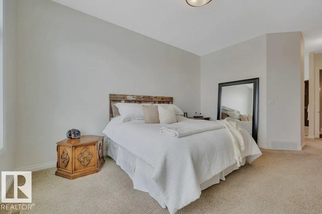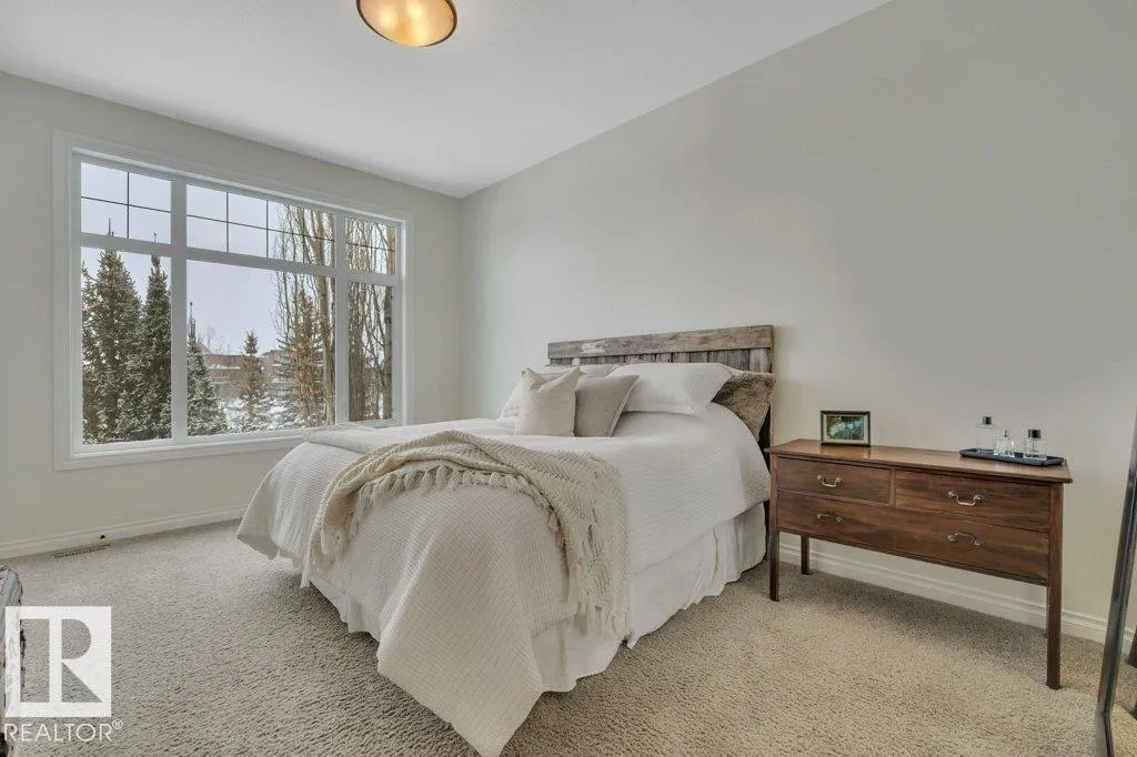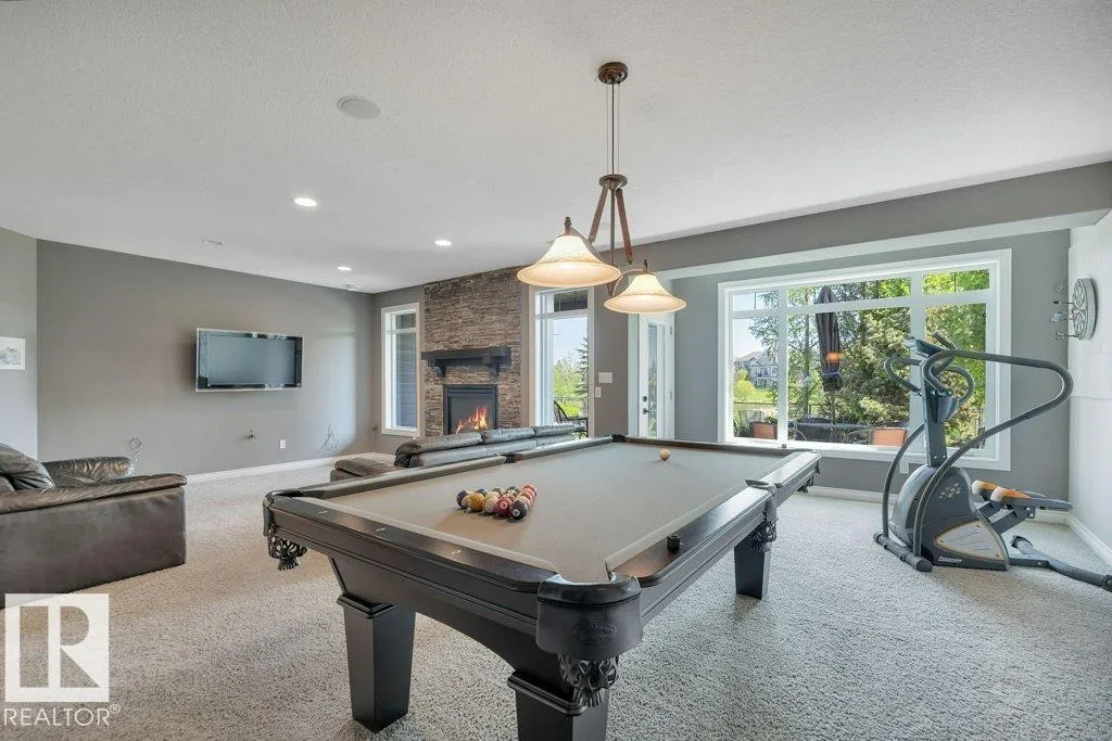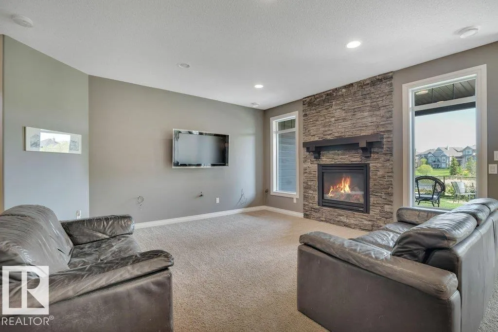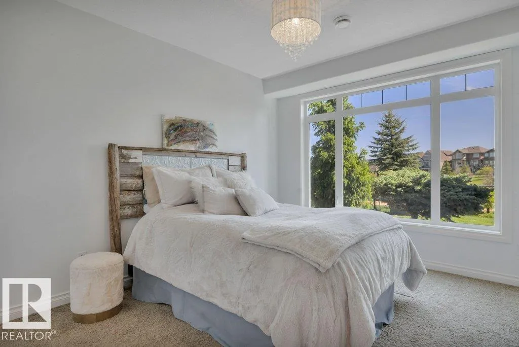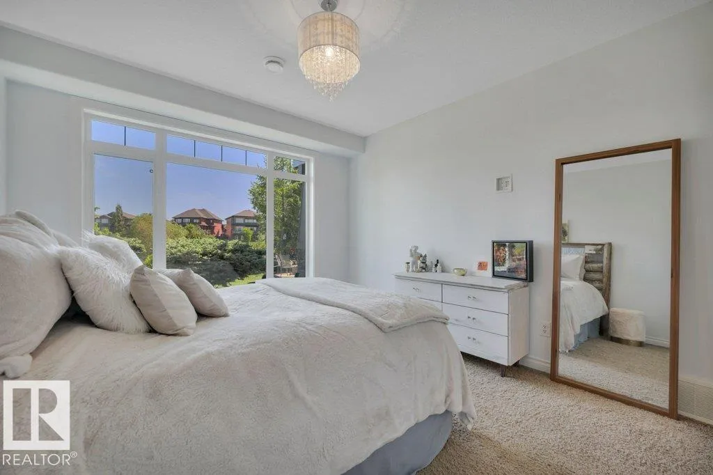 Executive Walkout Bungalow | Custom Built by Hillview Homes. Offering 3371 sqft of living space on a quiet lot backing onto a beautiful pond and fountain, with trails leading to the river valley. Features 4 bedrooms plus den, 2.5 baths, 10'â14' coffered ceilings, and transom windows that fill the home with natural light. Kitchen includes Sub-Zero fridge, gas cooktop, double wall ovens, and new washer/dryer. Spa-inspired primary suite with steam shower and private deck access. Walkout basement offers 3 bedrooms, rec room, fireplace, and in-floor heating with boiler system and new hot water holding tank. This very well maintained home by original owners shows pride in ownership throughout, with upgraded Hardie plank siding, AC, and oversized heated garage with drain, hot/cold water, and dog run off man door. Rocky Mountain-inspired yard with a hidden âwine timeâ retreat. Close to schools and Currents of Windermere. Do not miss out on this one. (id:27476)