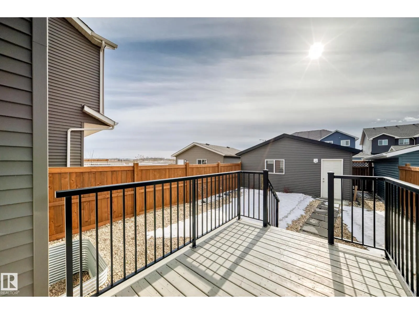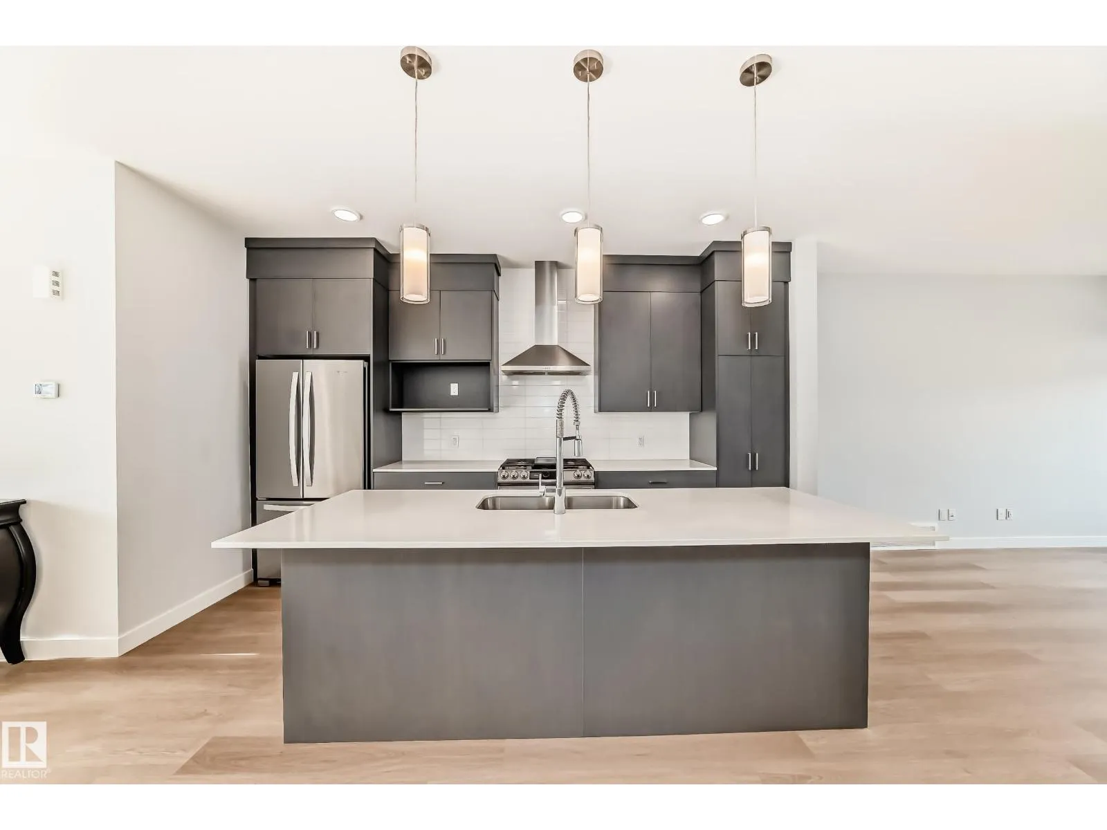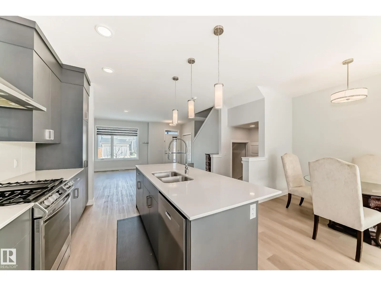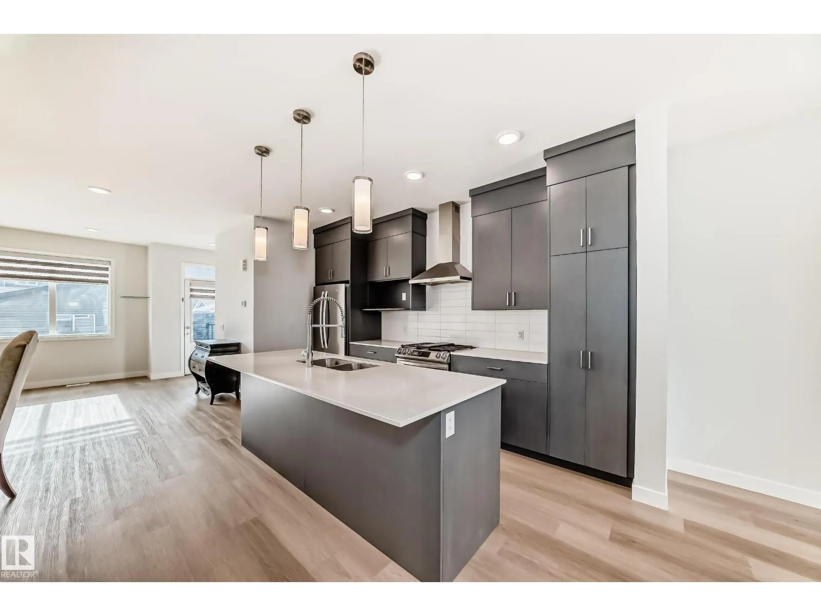 Welcome to this stunning 2-storey home, the popular âAsher E3â by Brookfield Residential, located in the vibrant community of Orchards! Offering over 1,700 sq ft, this home is perfect for families or professionals seeking style & value. The bright, open-concept main floor features gorgeous vinyl plank flooring & a spacious living area. The chef-inspired kitchen that truly stands out- offers a large centre island/quartz countertops/plenty of upgraded cabinetries/nice backsplash & SS appliances/flowing seamlessly into the dining area. Main floor 1/2 bath. Upstairs offers 3 generously sized bedrooms, 2 full baths & laundry room. Master bedroom includes a walk-in closet & a luxurious 5 pc ensuite w double sinks. Tons of upgrades: glass tub doors/floor-to-ceiling kitchen cabinetry/premium blinds/glass shelves & security system. Enjoy a maintenance-free deck & landscaped/fenced yard w no lawn mowing required. Double detached garage w back lane access. Easy access to all amenities. Quick poss avail. Don't miss! (id:27476)