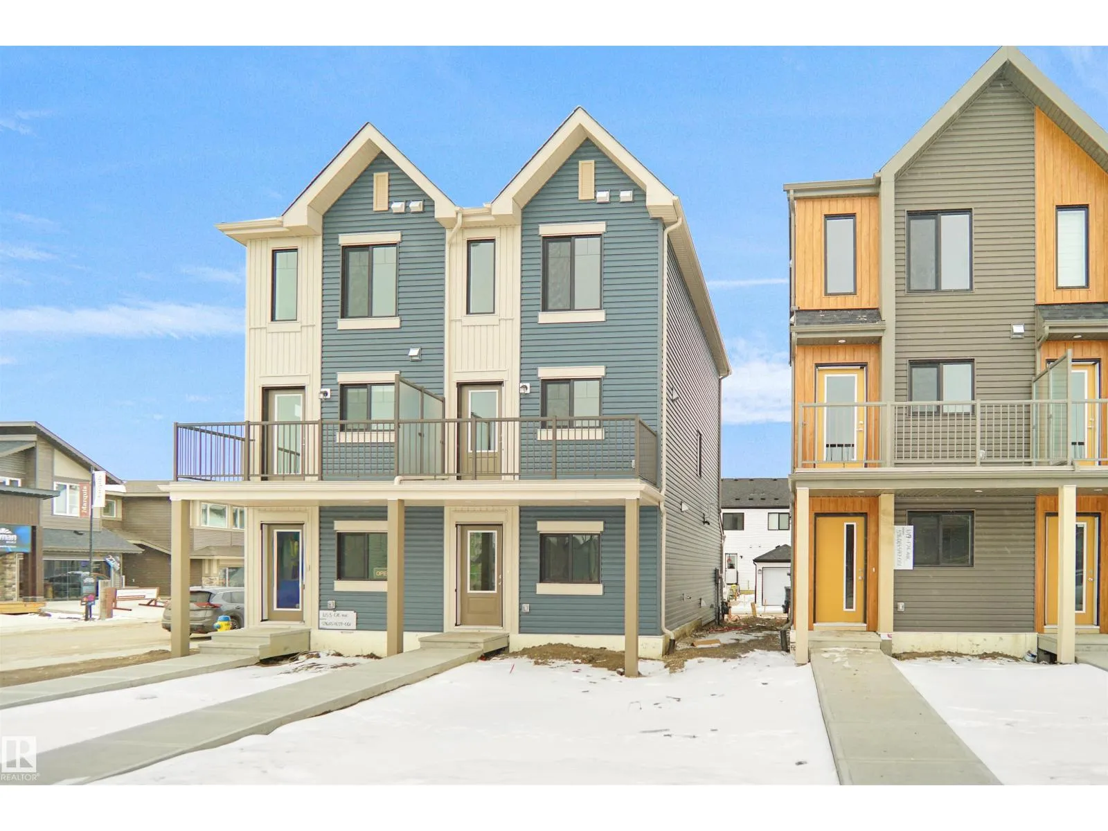 Welcome to this brand new half duplex, the âReimerâ model built by the award-winning Pacesetter Homes, located in one of Edmonton's newest west-end communities of Riverâs Edge. With over 1,280 sq. ft. of thoughtfully designed living space, this home is ideal for a young family or couple looking for modern style and functionality. The main floor features a versatile flex room or 3rd bedroom located conveniently near the garage entrance, complete with a full 3-piece bathroom perfect for guests or a home office setup. Upstairs on the second level, you'll find a contemporary kitchen with upgraded cabinetry, premium countertops, tile backsplash, and luxury vinyl plank flooring flowing seamlessly into the spacious great room, ideal for entertaining. The upper level offers 2 comfortable primary bedrooms and 2 full bathrooms, including a well-appointed primary suite. Additional features include a single oversized attached garage and modern finishes throughout. *** To be complete by end of this coming week *** (id:27476)