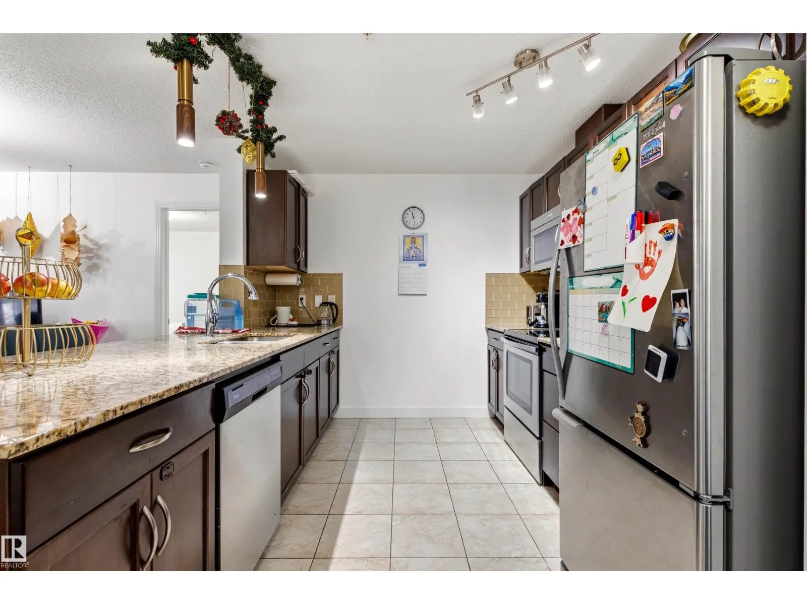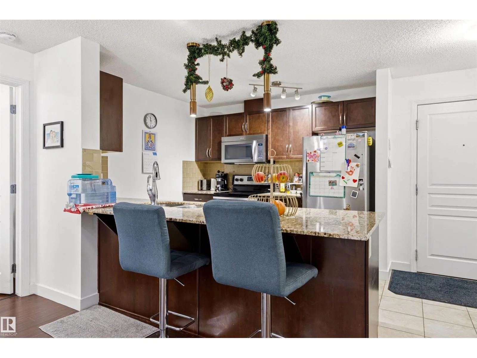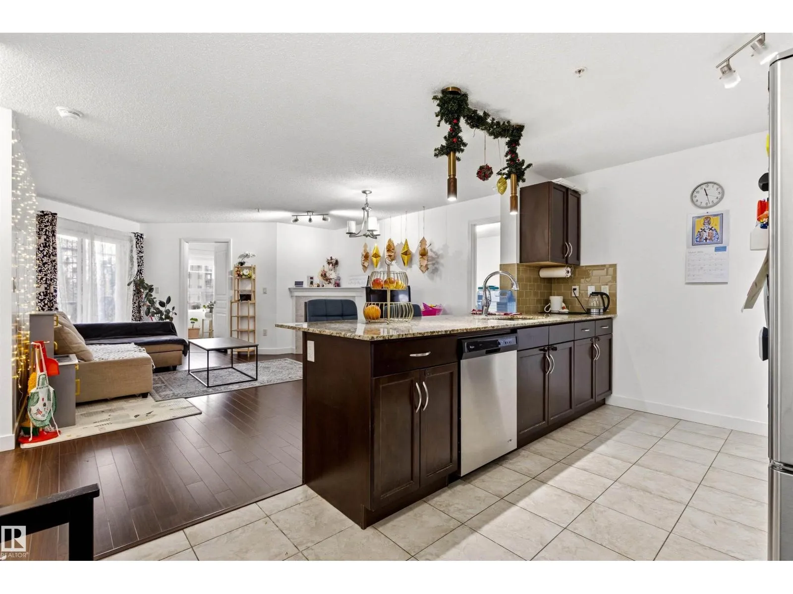 Welcome to this beautifully maintained condo offering over 1,000 sq ft of bright living space in a fantastic location. This well-designed unit features 2 spacious bedrooms plus a versatile denâperfect for a home office. Large windows flood the home with natural light, and there is in floor heating creating a warm atmosphere throughout. The kitchen is thoughtfully finished with granite countertops and stainless steel appliances, opening to a comfortable living and dining area ideal for both everyday living and entertaining. With 2 full bathrooms, convenience and comfort are built in. Step outside to enjoy the generous-sized balconyâperfect for morning coffee or evening relaxation. This unit also includes 1 underground parking stall with additional storage. The building is immaculately kept and offers excellent amenities including an exercise room, ownersâ lounge with kitchen,TV& pool table, and a guest suite for visitors. Close to transportation, shopping, schools, right at your doorstep! (id:27476)