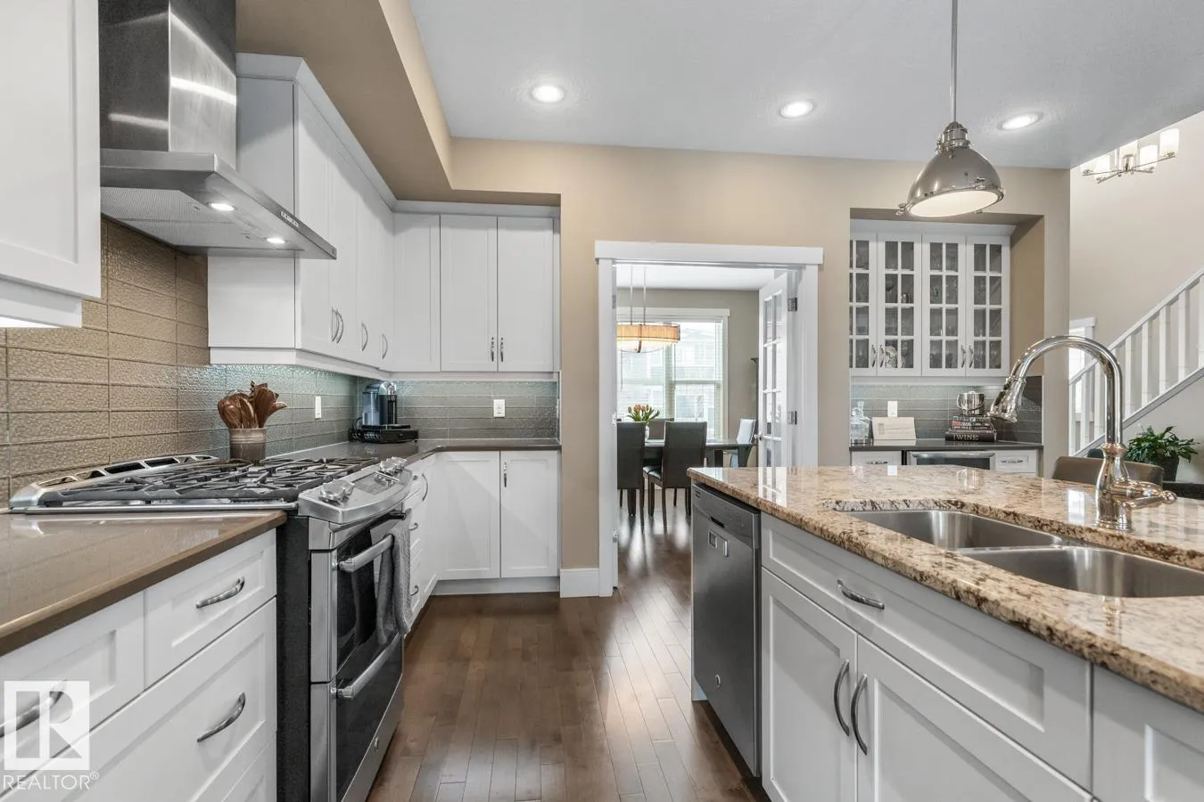 GORGEOUS IN GRIESBACH! Gourmet Kitchen is anchored by a 10' GRANITE ISLAND & features GAS STOVE, GLASS TILE BACKSPLASH & upgraded cabinetry. The Dining Room seats 10+ guests, the perfect backdrop for memorable gatherings. Custom designed Den has garden doors leading to the WEST FACING BACKYARD. Solid hardwood flooring sets an impressive tone on this level. Loft has VAULTED CEILINGS, Juliet balcony & full bathâideal for a media, music or games room. Finished Basement enhances functionality, while the OVERSIZED, INSULATED DOUBLE GARAGE w/ EV CHARGER adds everyday convenience. Lovely landscaped yards. Quick commute to Downtown by transit or 20 mins. by car. 15 Mins. drive to CFB / Edmonton Garrison. Walkable community w/ many amenities - groceries, restaurants, services, daycares & schools. Plenty of parks, ponds & trails to enjoy in this friendly neighbourhood. With 4 bdrms, 2 dens & 5 baths, this IMMACULATE, 3,700+ sq ft home offers versatility for professionals, families & multi-generational living. (id:27476)