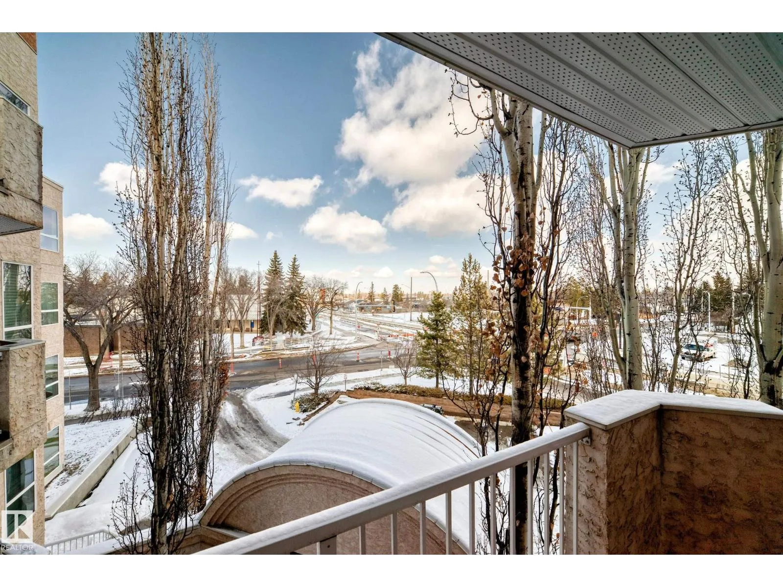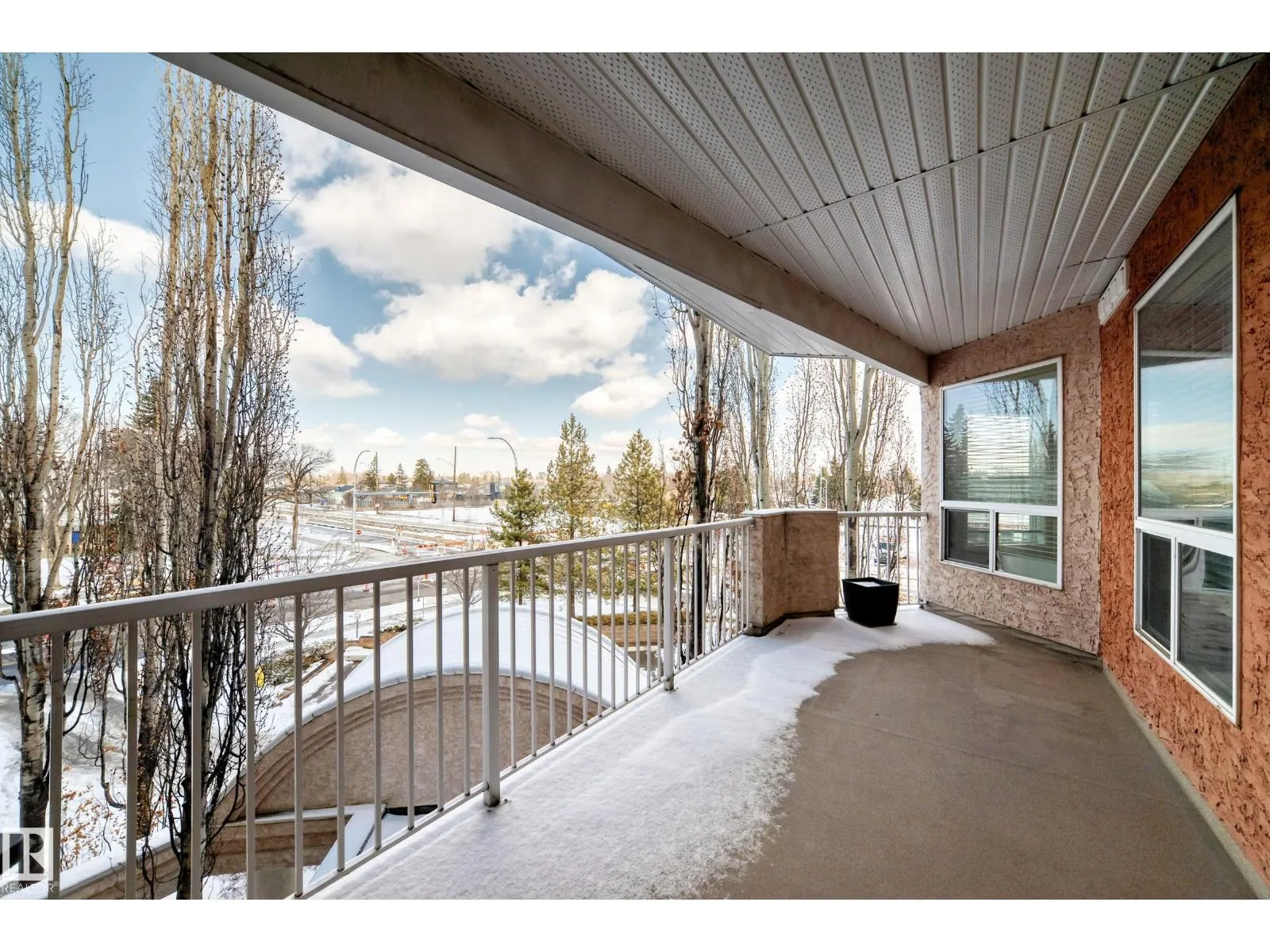 One of the largest units in the building, this bright and spacious condo in Meadowlark Park features 2 large bedrooms, 2 full bathrooms (including ensuite), and an open-concept layout filled with natural light. Enjoy the cozy fireplace and a huge private deck with great views. Includes in-suite laundry, 2 parking stalls (1 heated underground), and a storage unit. Minutes from West Edmonton Mall, downtown, and close to the new LRT line. Perfect for comfortable living or investment! (id:27476)