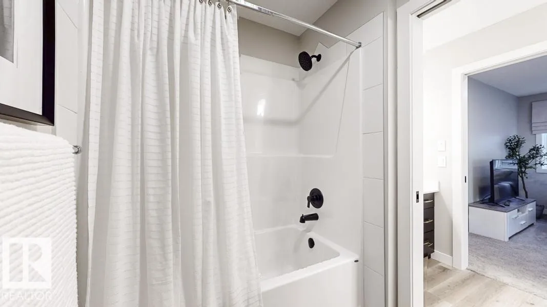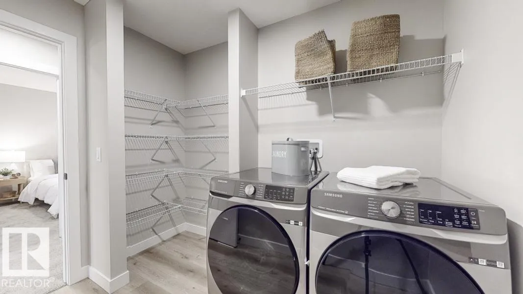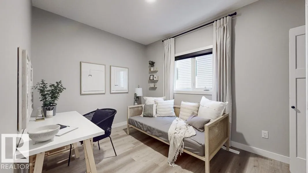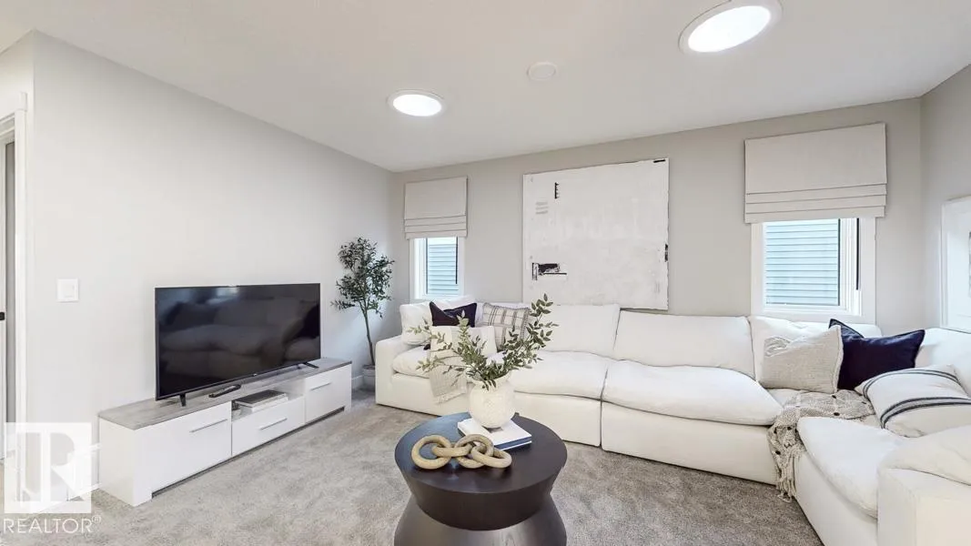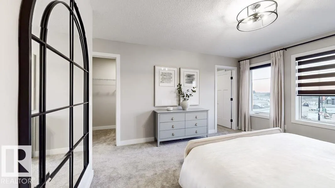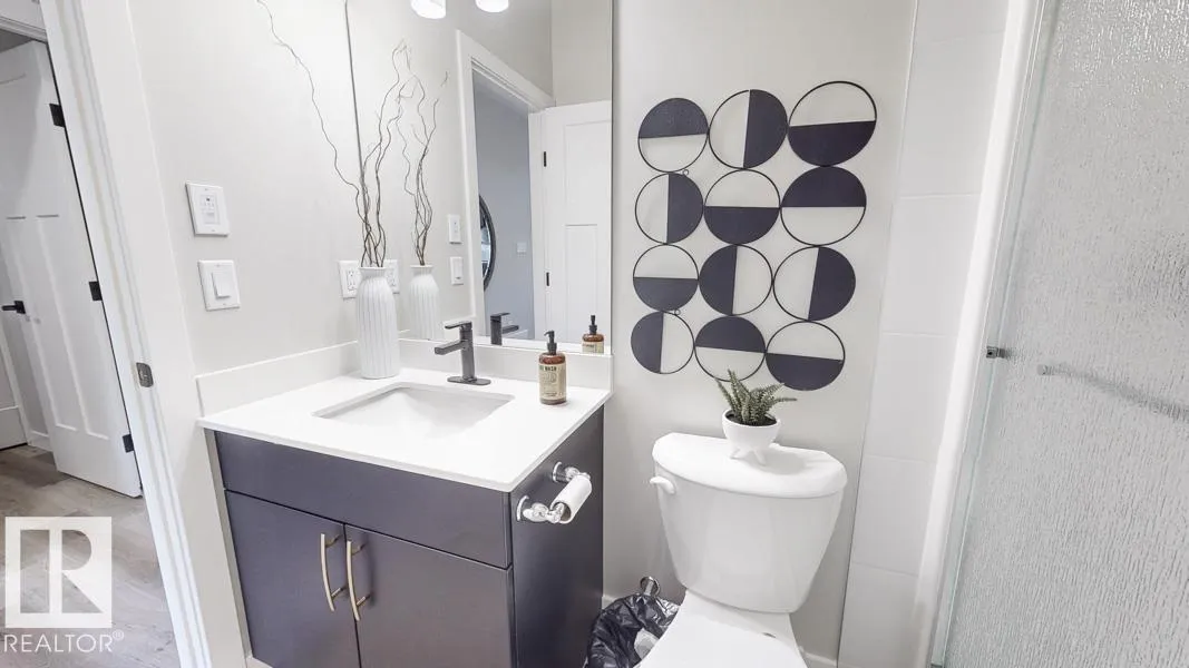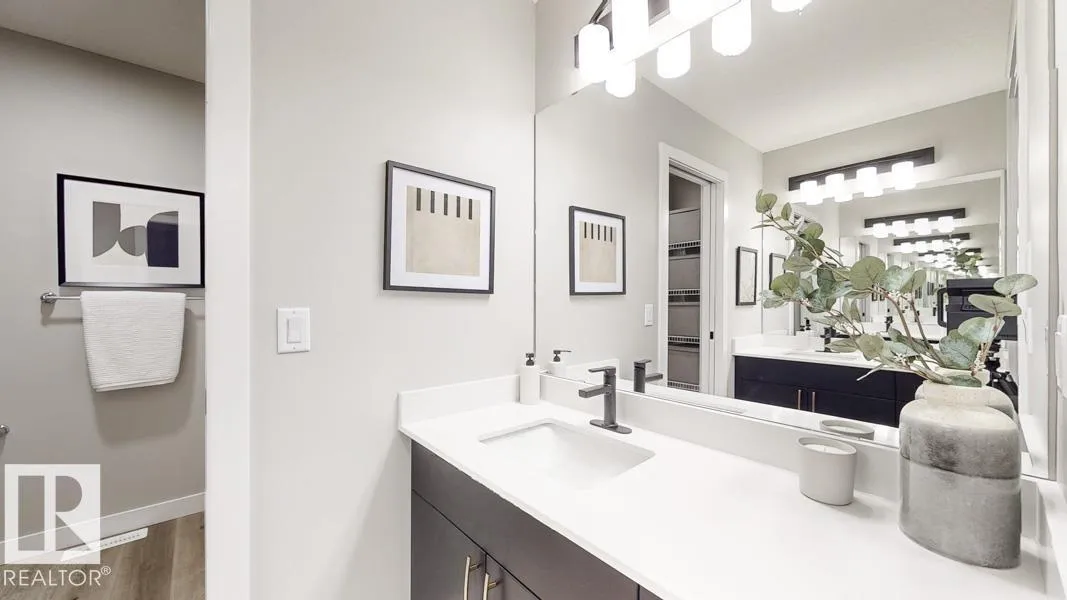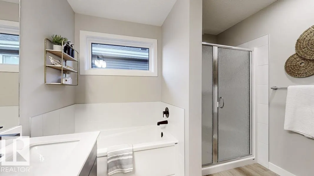 Built by Sterling Homes, this 2,211 sq ft home features a double attached garage with floor drain, 9-ft ceilings on the main and lower floors, side entrance, and luxury vinyl plank flooring on the main and upper levels. The foyer with coat closet opens to a mudroom off the garage, a full 3-pc bath with walk-in shower, and a main-floor bedroom or denâideal for guests or a home office. A formal dining room sits separate from the open great room and kitchen. The kitchen offers quartz countertops, an island with a flush eating ledge and waterfall edge, a Silgranit sink, a built-in microwave, pendant lighting, chimney hood, full-height backsplash, soft-close cabinets with raised doors, and a pantry. The great room features a fireplace, large windows, 17-ft open-to-above ceiling, and a garden door to the deck. Upstairs includes a primary suite with a walk-in closet and a 5-pc ensuite, bonus room, a laundry with cabinets, two additional bedrooms, and a full bath. Basement rough-ins included. (id:27476)