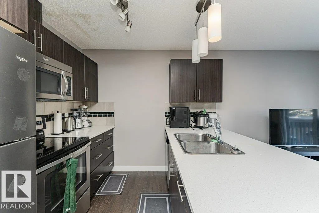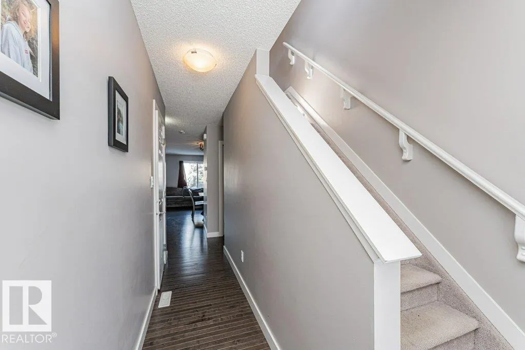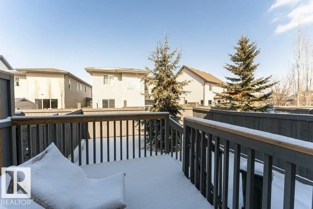 Live in the highly sought-after community of Trumpeter! This beautiful duplex offers over 1,100+ sq ft of thoughtfully designed living space, complete with a single attached garage. The main floor features hardwood flooring, a convenient powder room, and a bright open-concept layout with a spacious living area and dedicated dining space. The kitchen is both stylish and functional, showcasing a quartz island, stainless steel appliances, and ample cabinetry. Upstairs, youâll find a generous primary suite with a walk-in closet and private ensuite, along with two additional bedrooms and a full bathroomâperfect for families or guests. Step outside to your south-facing deck . With scenic walking trails just steps away and a bike path along 205 Street leading directly to St. Albert, this home offers the perfect blend of comfort, convenience, and an active, nature-filled lifestyle. Visitor Parking is just steps away from Unit 20 which makes having guest over super convenient. (id:27476)