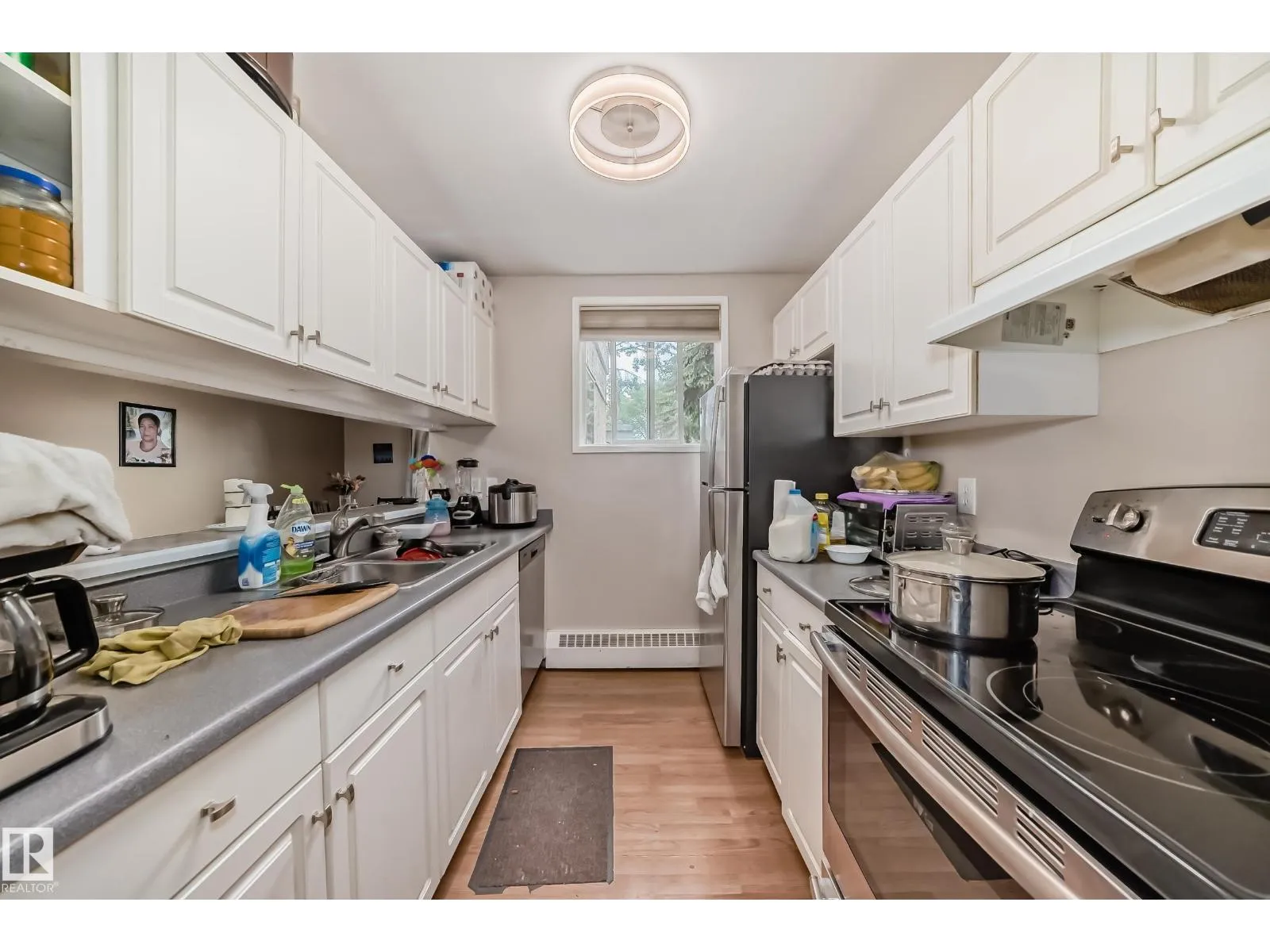 Immaculate 1,019 sq ft 3-bedroom condo unit in the desirable neighborhood of Terra Lossa. This unit boasts of 3 spacious bedrooms including a large master bedroom with a walk-in closet and 4-piece ensuite bathroom. The unit has laminate all through, in-suite laundry, a second 4-piece bathroom for the remaining 2 bedrooms, eating bar in the kitchen and ample storage space. It is important to establish that every room in the unit, including the kitchen, has a window looking on to trees and green space. The building is very close to transit, and only minutes from West Edmonton Mall and the TerraLossa shopping centre. This unit is move-in ready and is perfect for starter or an investor. (id:27476)