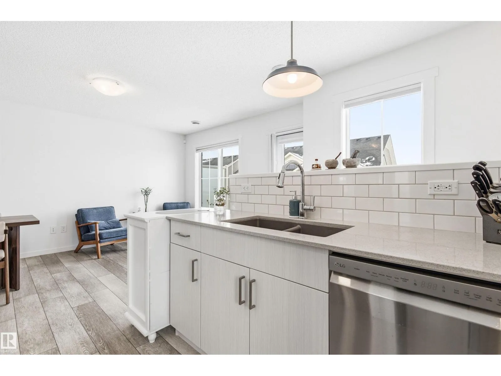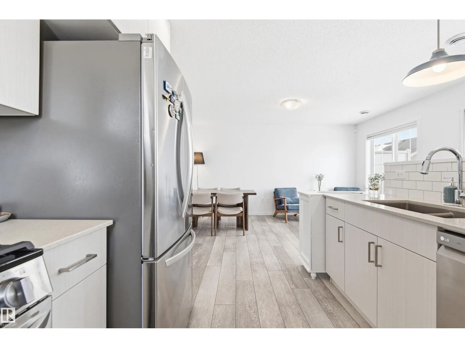 Welcome to this bright and well-maintained top-floor corner townhome, offering exceptional privacy and an open, airy feel! This home features NO carpet throughout the entire living space, finished with durable vinyl plank flooring for a clean, modern look. Enjoy the convenience of a full single-level layout, with no stairs needed to access the kitchen, living, and dining areas. The corner location provides extra windows and abundant natural light throughout. The stylish kitchen includes quartz countertops and a generously sized pantry for ample storage, flowing seamlessly into the dining and living spacesâperfect for everyday living and convenience. The bathroom is upgraded with a sleek sliding glass shower door. Main floor entry offers a spacious foyer with dedicated shoe storage and a large separate storage area. Additional highlights include low condo fees. Conveniently located close to parks, schools, recreation centre, shopping, and public transportation. (id:27476)