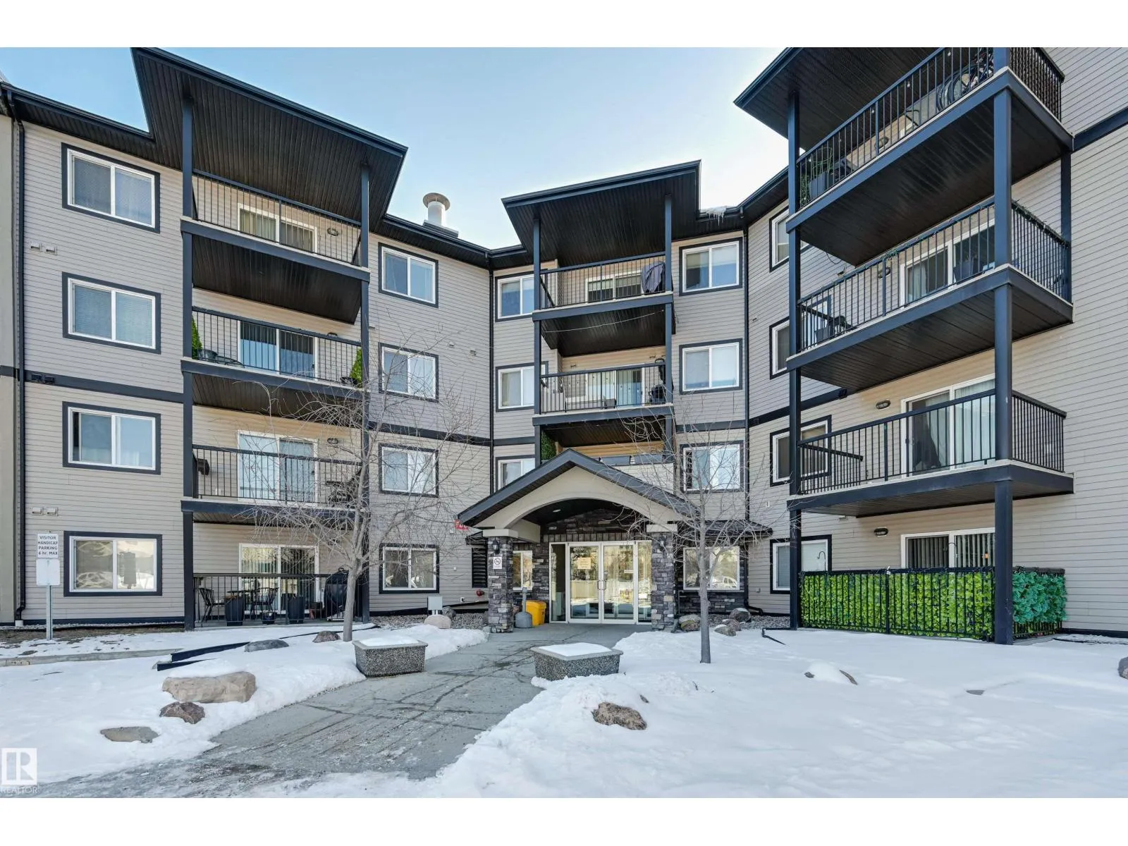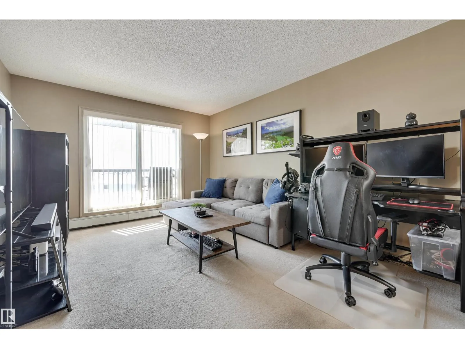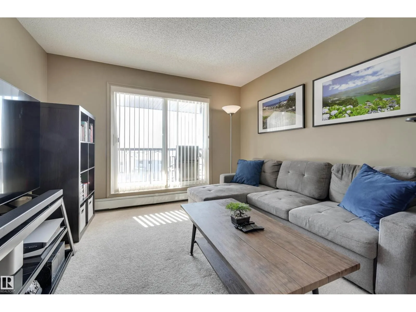 Splendid Top Floor, spacious one bedroom, with a private covered balcony offering great views. You will not feel cramped for space in this open, bright, functional floor plan with large living spaces. The kitchen with ample cabinets and counter space, a bar type counter area, plus dining area overlooking the living room and balcony views. The bedroom is bright, with plenty of closet space, and the bathroom right next door. Convenient in-suite laundry and storage. The large SE balcony with a natural gas line is perfect for enjoying the long days of summer. For your enjoyment, a fitness room plus a games/ social room. Fantastic, well-kept building located in a quiet location, tucked away amongst houses in the thriving community of Matt Berry. Conveniently located to many amenities/essentials, parks, schools, shopping, a few minutes to major roads including Anthony Henday, Public transit just outside the building, and a quick trip to the LRT. This home offers great value with a low-maintenance lifestyle. (id:27476)