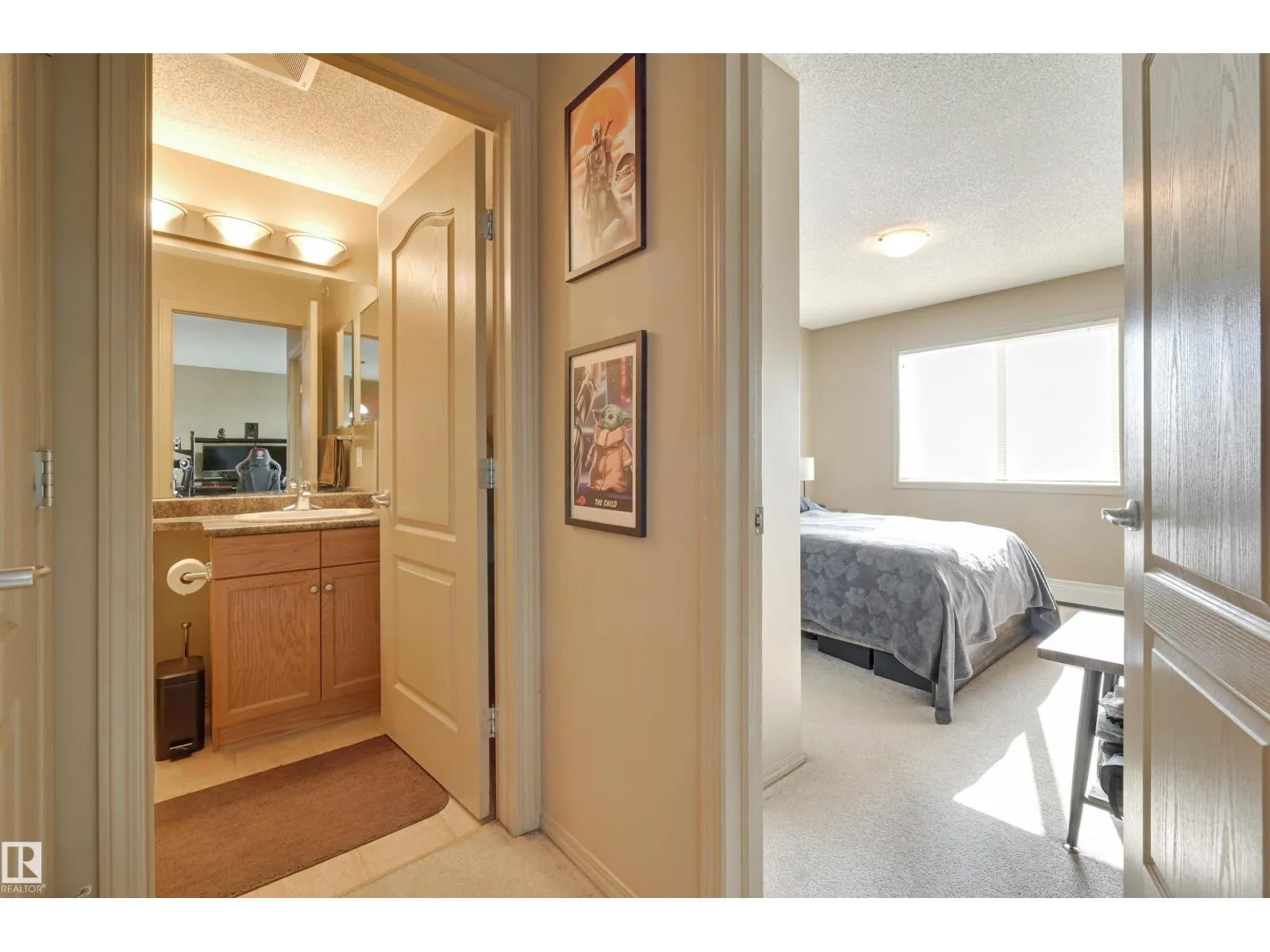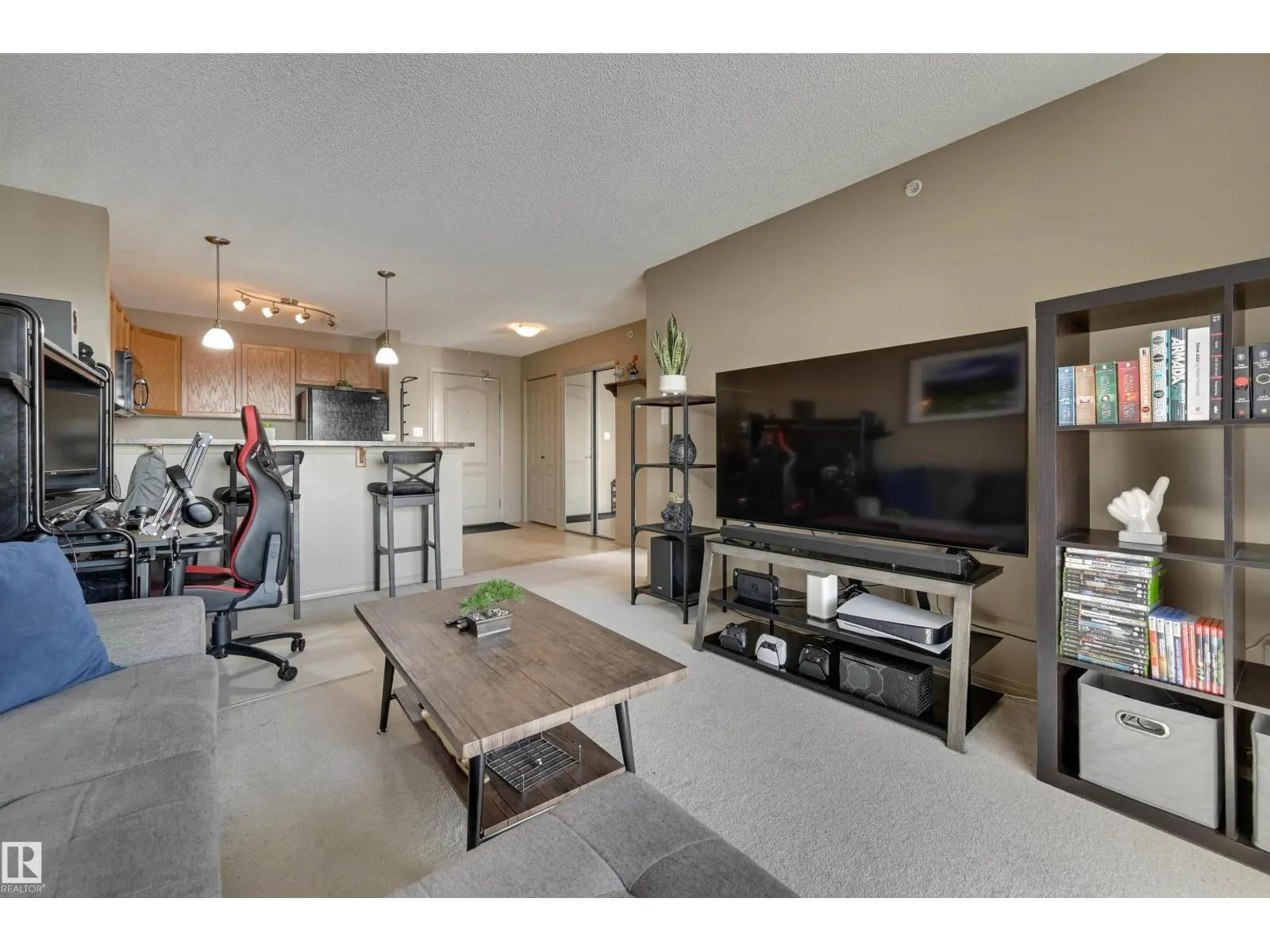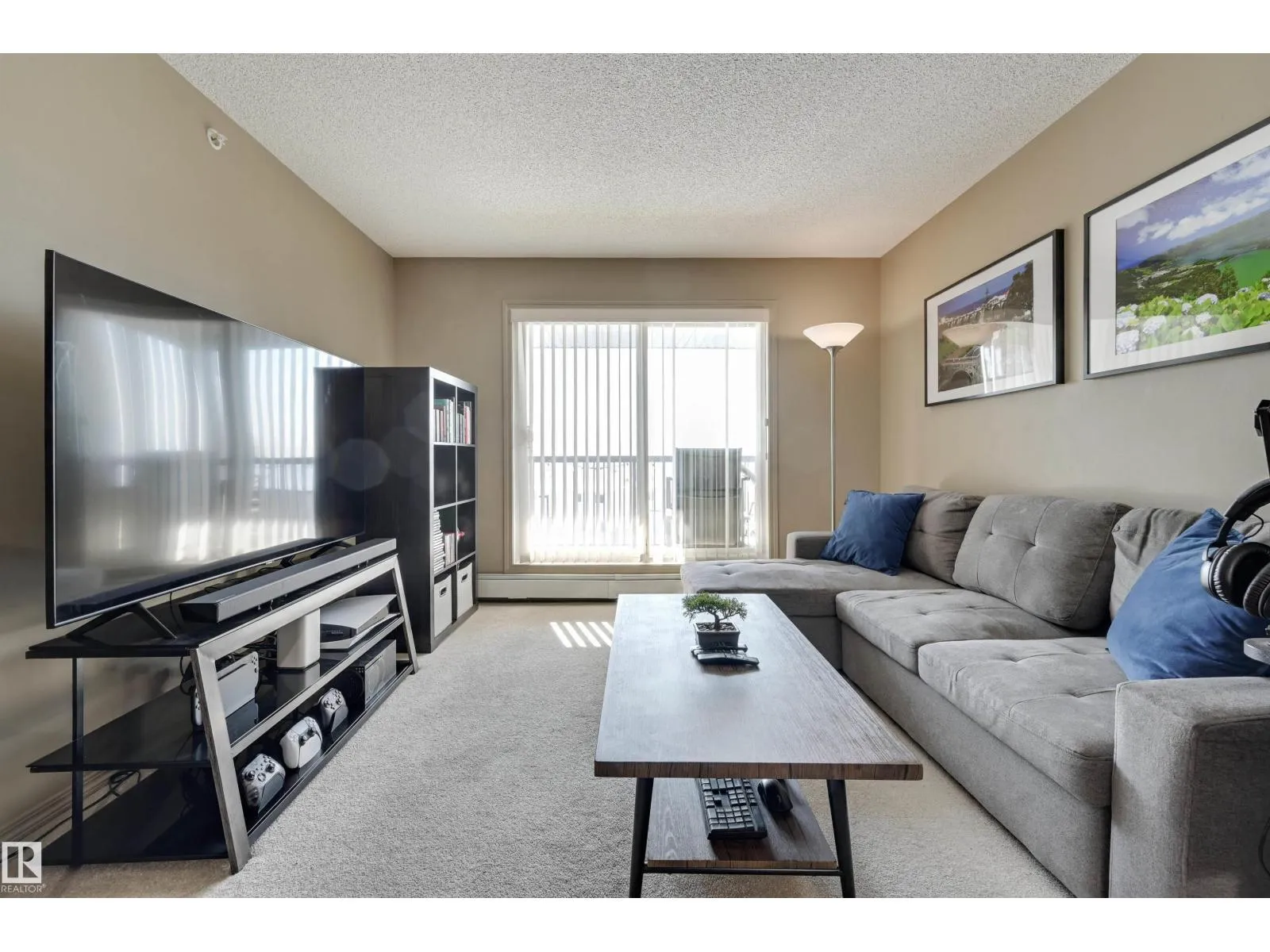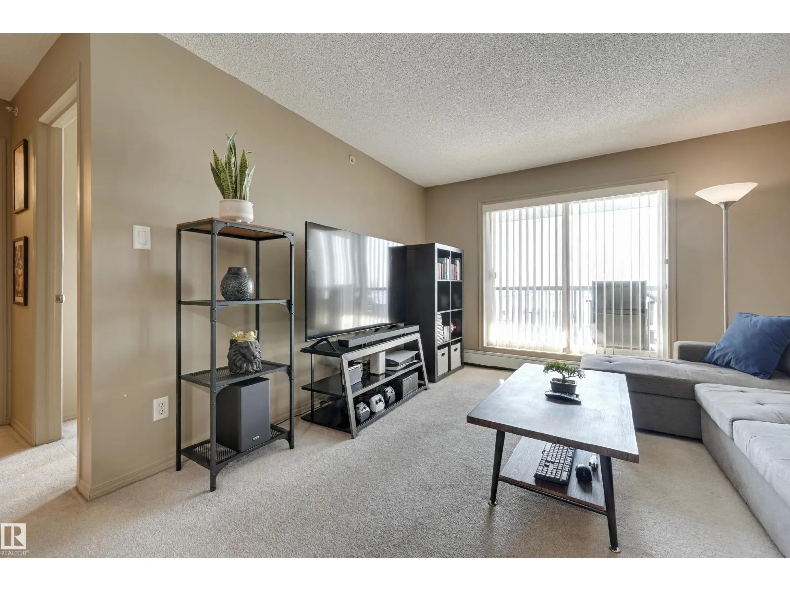 Splendid Top Floor, spacious one bedroom, with a private covered balcony offering great views. You will not feel cramped for space in this open, bright, functional floor plan with large living spaces. The kitchen with ample cabinets and counter space, a bar type counter area, plus dining area overlooking the living room and balcony views. The bedroom is bright, with plenty of closet space, and the bathroom right next door. Convenient in-suite laundry and storage. The large SE balcony with a natural gas line is perfect for enjoying the long days of summer. For your enjoyment, a fitness room plus a games/ social room. Fantastic, well-kept building located in a quiet location, tucked away amongst houses in the thriving community of Matt Berry. Conveniently located to many amenities/essentials, parks, schools, shopping, a few minutes to major roads including Anthony Henday, Public transit just outside the building, and a quick trip to the LRT. This home offers great value with a low-maintenance lifestyle. (id:27476)