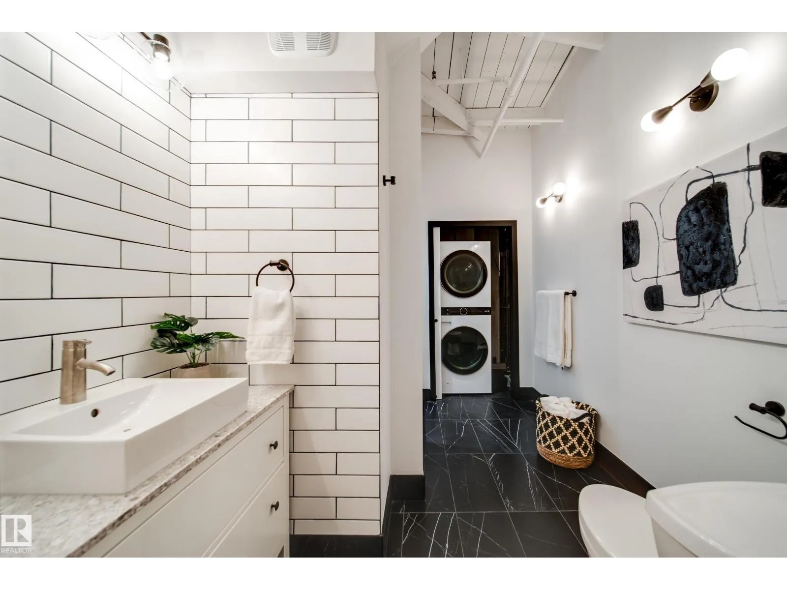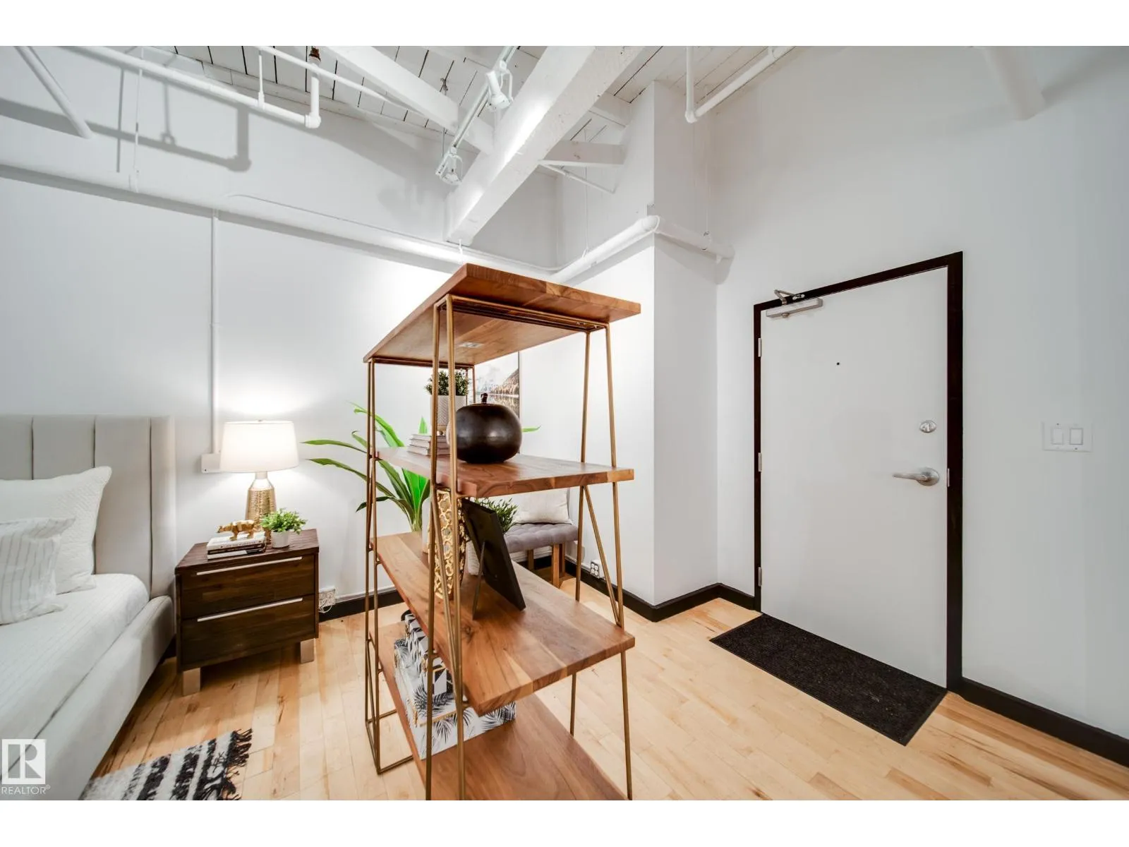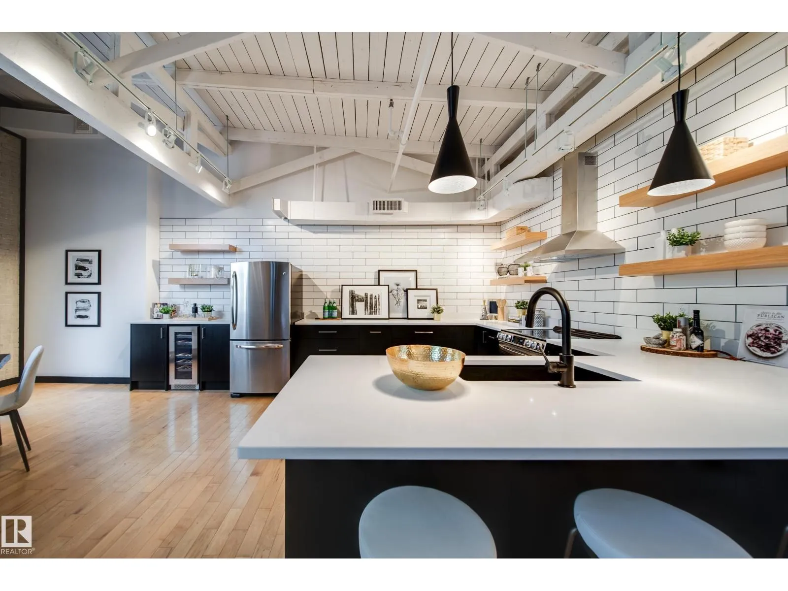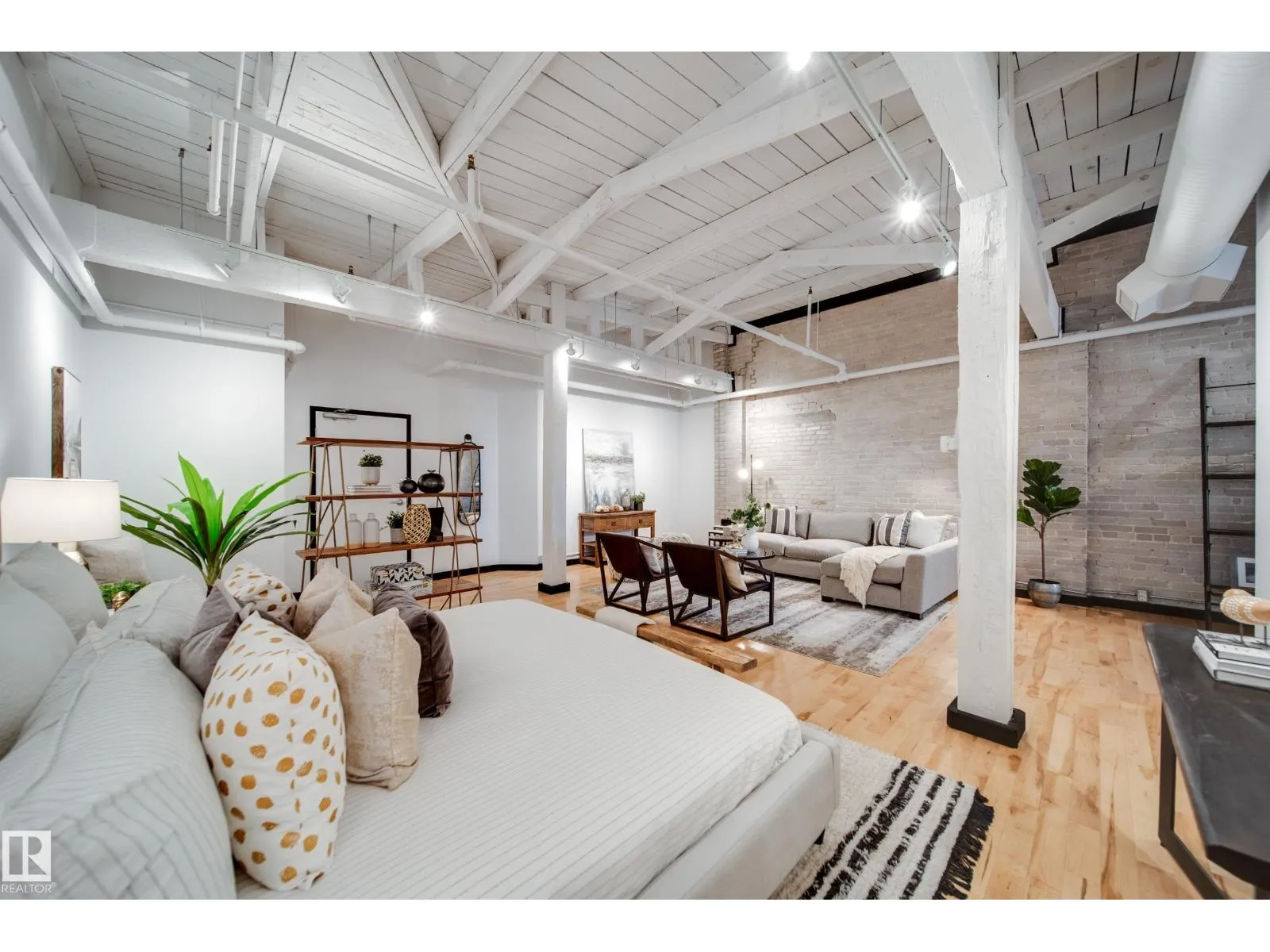 PHILLIPS LOFTS, EDMONTONâS PREMIER LOFT BUILDING, PRESENTS ONE OF THE FINEST UNITS TO HIT THE MARKET! This New York-style loft, steeped in history, is located in the heart of the warehouse districtâideal for those seeking an urban lifestyle with walkability, entertainment, restaurants, and just steps to Rogers Place. Situated on the top floor, this fully renovated unit boasts 13' ceilings and original beams that are over 100 years old. Every inch of this space has been updated with high-quality renovations, including a brand-new bathroom and kitchen featuring custom cabinetry, tile work, appliances, plumbing, and counters. The large bedroom area, dining space, and dedicated home office make it a perfect fit for modern living. Few units offer a balcony, but this one does! With central AC, pet-friendly policies, and access to a rooftop patio, this lock-and-leave property is an entertainer's dream. Donât miss out! (id:27476)