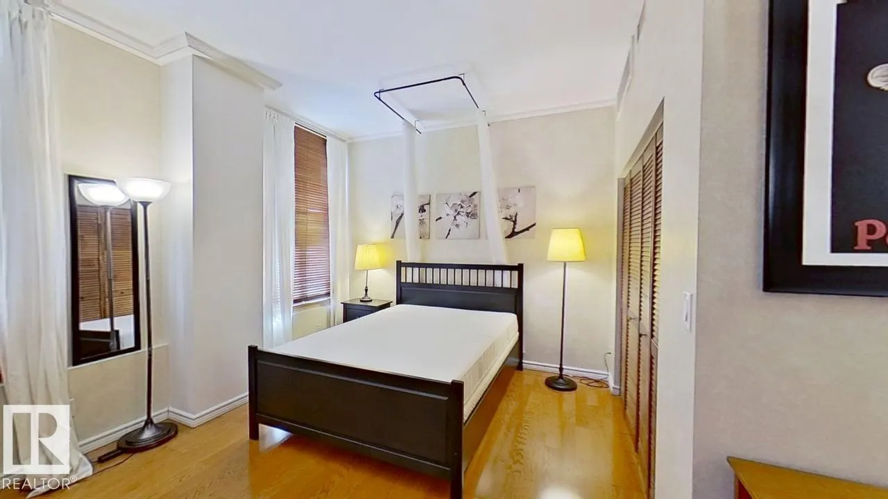 Turnkey suite located in the iconic McLeod Building. Fully furnished and move-in ready. Impeccably maintained. Ideal for any landlord, student or young professional looking to avoid thousands in extra start-up costs. Features include 11ft ceilings, hardwood and tile flooring. Oversized north-facing windows overlook an interior courtyard, which means lots of natural light but more peace and privacy than suites facing Rice Howard Way or 100 St. Power, water and heat are included in condo fees. En suite laundry is a bonus. This building located in the heart of downtown features authentic Chicago-style architecture and rich, turn-of-the-century craftsmanship, including vaulted marble lobby and original wood ⢠The Ice District ⢠Restaurants, pubs and nightlife ⢠Canada Place and the Stanley A. Milner Library ⢠The Provincial Museum, Art Gallery, and the Citadel and Winspear theatres ⢠Transit and LRT lines ⢠River valley parks, bike/ walking trails Quick possession available. Act Now (id:27476)
