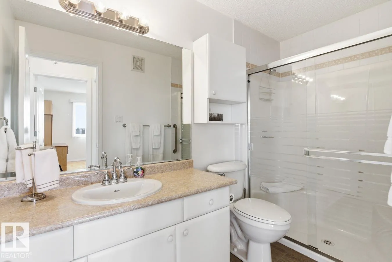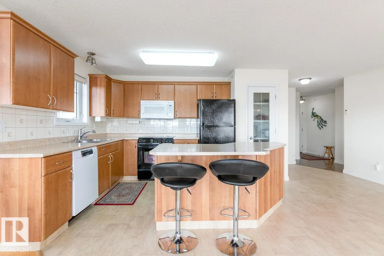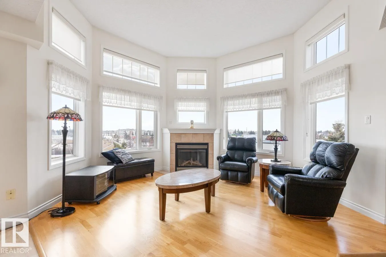 Immaculate top-floor 2 bedroom, 2 bathroom condo with TWO underground parking stalls. The bright, open living space is anchored by a cozy gas fireplace and walls of windows that fill the home with natural light. The kitchen opens to a generous living and dining area, leading to a sunny south-facing balcony with a natural gas BBQ hookup. The spacious primary retreat features a walk-in closet and private ensuite, while the second bedroom provides flexibility for guests or a home office. Enjoy year-round in-floor heating, air conditioning, and the ease of in-suite laundry and remote-controlled upper window coverings. This well-cared-for building offers outstanding amenities including a social room with outdoor patio & BBQ, fitness room, workshop, and underground parking with wash bay. Ideally located within walking distance to shopping, dining, and everyday essentials. (id:27476)