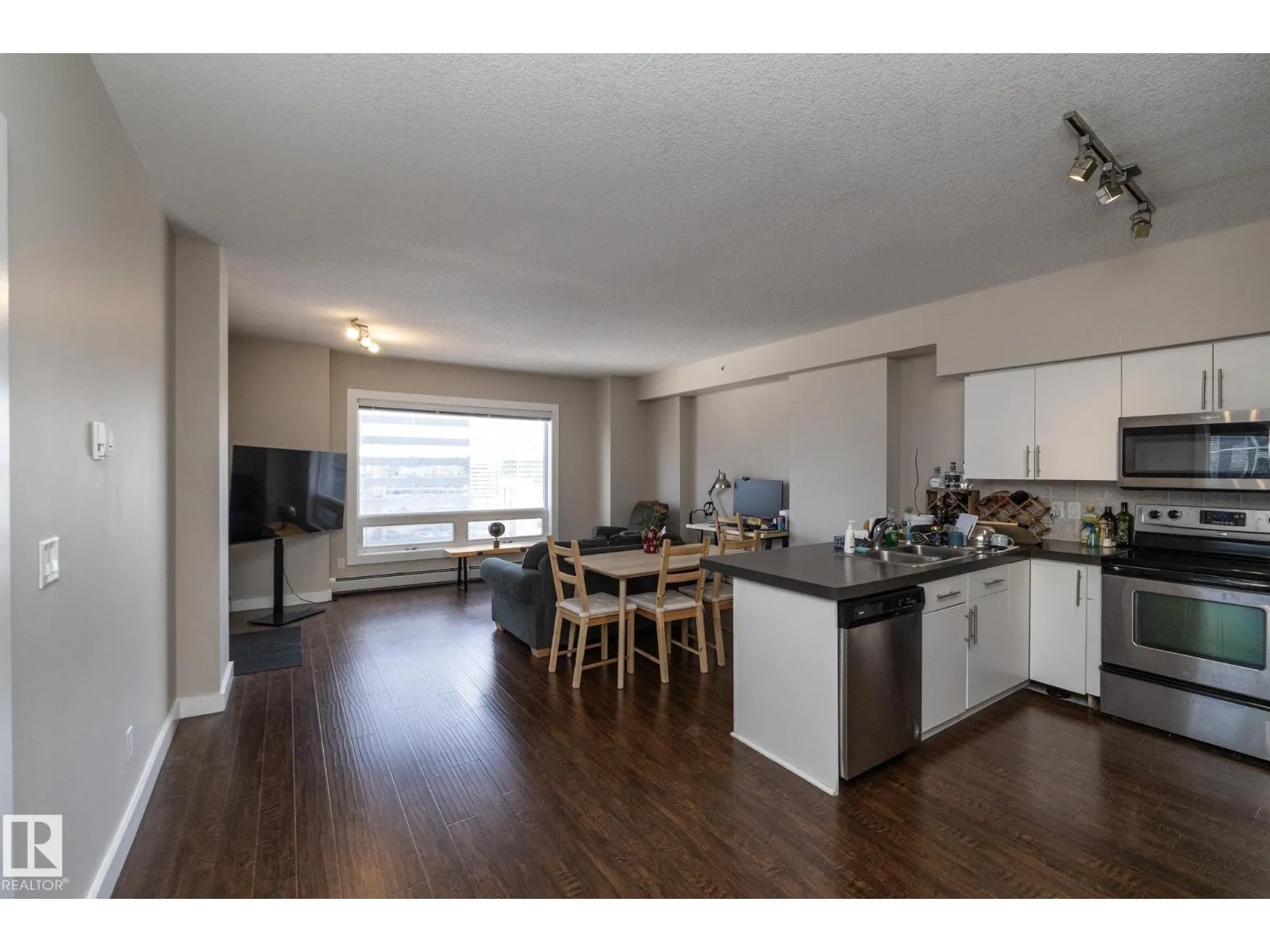 Welcome to ICON 1 in Edmontonâs vibrant ICE District. This well-designed condo offers 2 bedrooms, 2 bathrooms, and 1 titled underground parking stall. The open-concept floor plan is filled with natural light and features durable laminate flooring throughout, light contemporary cabinetry, and sleek stainless steel appliances. Enjoy the convenience of in-suite laundry and not one, but two west-facing balconiesâperfect for taking in the city atmosphere. Living at ICON 1 is all about location. Youâre just steps from some of the cityâs best restaurants, cafés, shopping, grocery options, the farmersâ market, and Rogers Place. With easy access to LRT stations and major bus routes, commuting around the city is effortless. Experience downtown living at its finestâthis is one you donât want to miss. (id:27476)