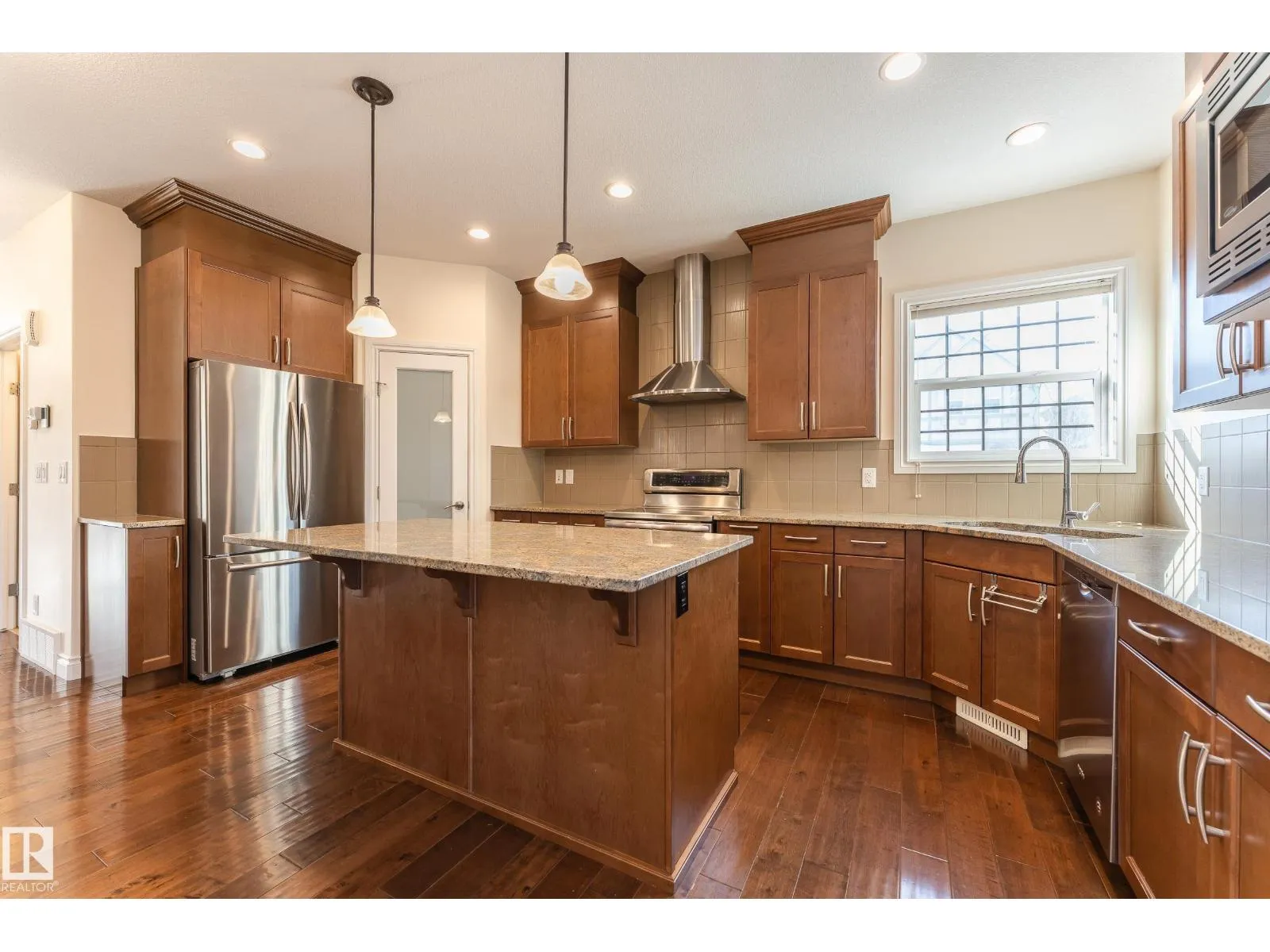 Welcome to this WEST BACKING stunning property located in The Village of Griesbach! Originally built by Coventry-Homes. This FULLY-UPGRADED home with nearly 3,660 sqft living space has 3-storey design and a 2-bedroom LEGAL BASEMENT SUITE with walk-up basement. Main floor features kitchen with granite countertop and full height cabinet, large walk-in pantry, spacious living room with fireplace and wood shelves, engineered flooring, and a bedroom/den with full bathroom. The second level has a bonus room with full size balcony, laundry room with sink, 2 bedrooms with walk-in closets, and a full main bathroom. The top level features the master bedroom with a balcony and a luxury 5-pc en-suite. The 9 ft LEGAL basement suite has 2 bedrooms, a full bathrooms, kitchen, laundry and living room. It also has 2 on-demand water heaters, and 2 furnaces with ZONE-CONTROLS. Additional features include central vacuum system with dustpan, Air-conditioner, INSULATED OVERSIZED double car garage, and low-maintenance backyard. (id:27476)