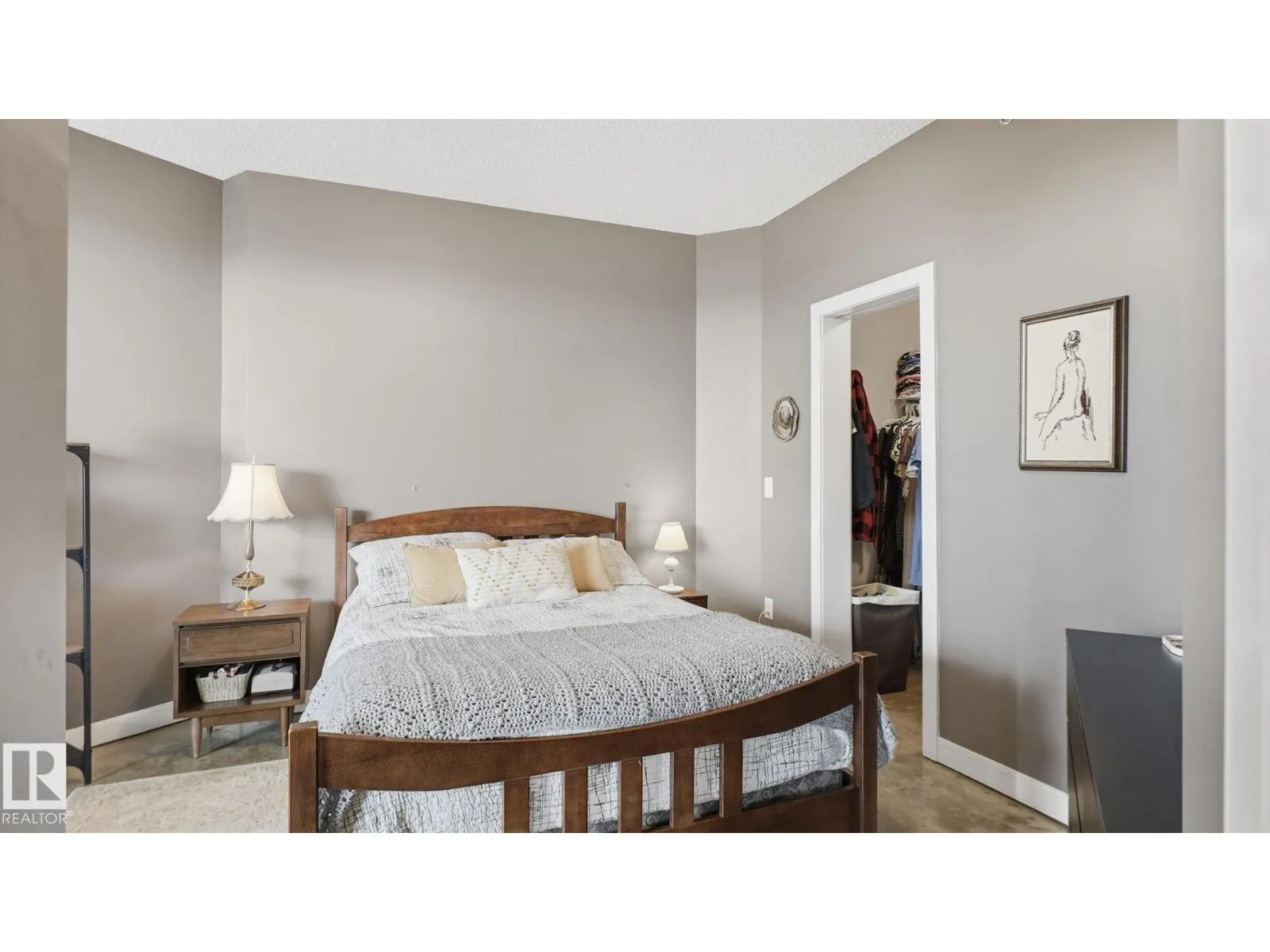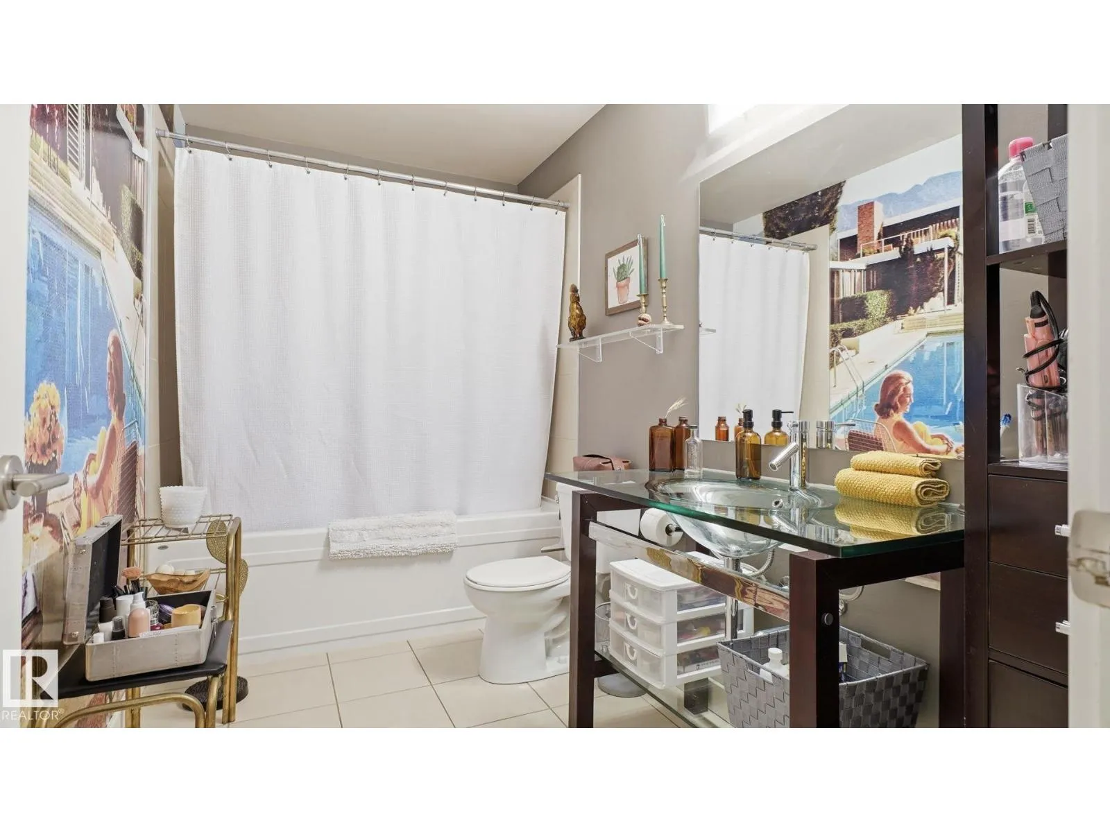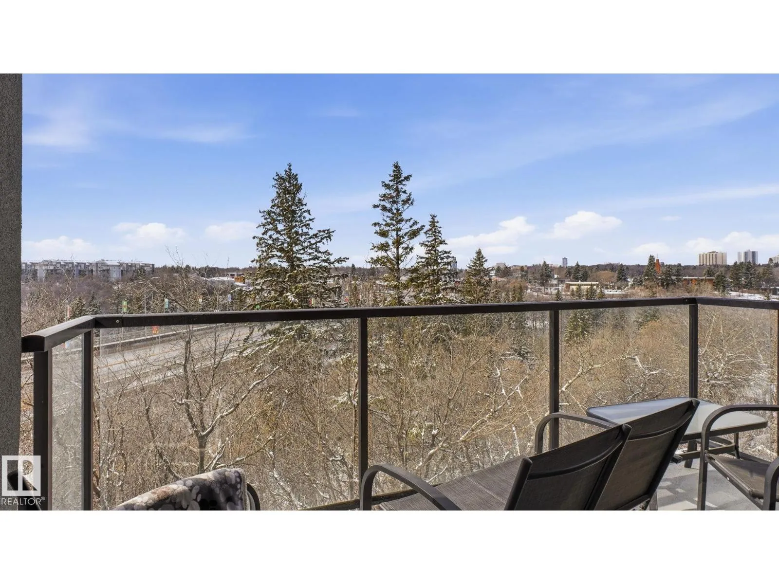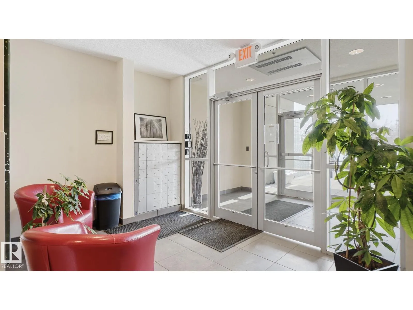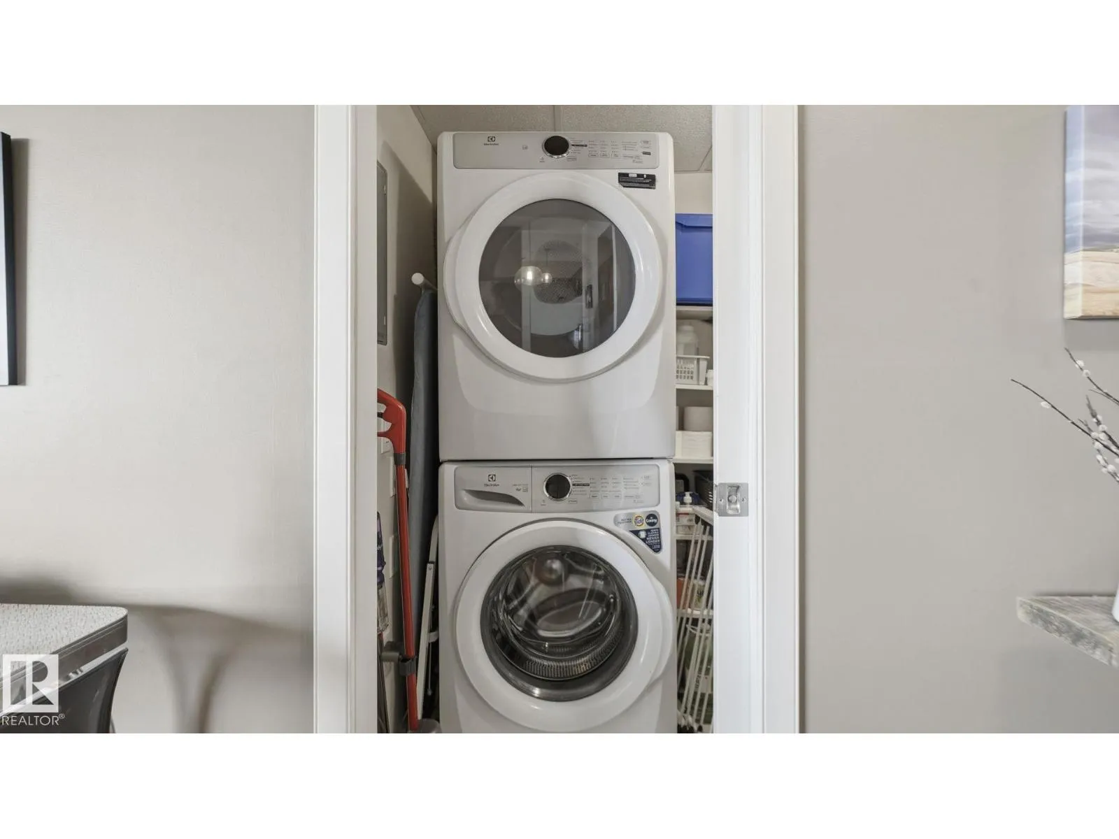 Inviting condo located in Trinity Pointe, a boutique concrete & steel building in Bonnie Doon, steps from Mill Creek Ravine. This bright unit features expansive windows, and a spacious open-concept living area anchored by a cozy gas fireplace. The well-appointed kitchen offers a gas range, built-in oven, dishwasher, and ample cabinetryâperfect for everyday living and entertaining. The spacious corner layout provides excellent natural light and direct access to a private balcony with treed views. The generous primary bedroom includes a walk-in closet and access to a full bath, while in-suite laundry adds everyday ease. Includes 1 underground parking stall and additional storage. Pet friendly building with great amenities featuring a fitness room and secure parkade. Walk to ravine trails, cafés, Whyte Ave, and the Valley Line LRT. Ideal for professionals, students, or investors seeking a low-maintenance lifestyle. (id:27476)