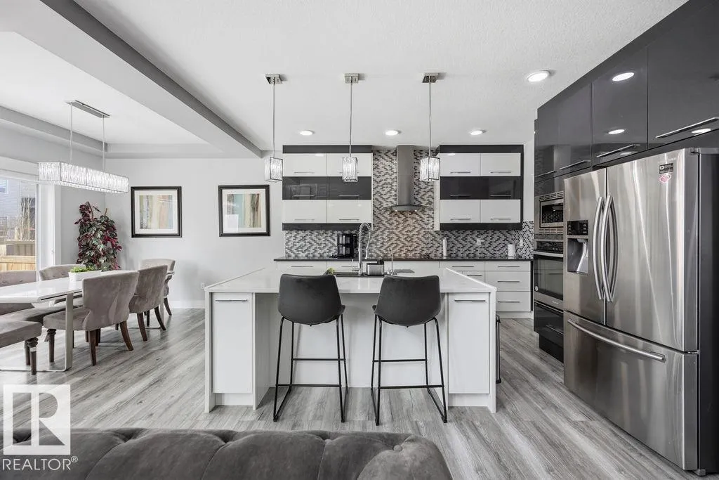 Welcome to this warm and inviting home in the family-friendly community of McConachie! Offering 7 bedrooms and 4 bathrooms, this spacious residence is designed for comfort and versatility. Step inside to a bright, airy living room with soaring vaulted ceilings and plenty of natural light. The kitchen is a true gathering space, featuring stainless steel appliances, a beautiful marble island, and ample pantry storage perfect for everyday living and entertaining.The main floor offers a flexible bedroom ideal for guests or a home office. Upstairs, the primary suite provides a relaxing retreat with a 5-piece ensuite and walk-in closet, along with three additional bedrooms for the family. A separate side entry leads to a fully finished basement complete with 2 bedrooms, a second kitchen, dining area, family room, its own laundry, and plenty of storageâideal for extended family or added living space. Outside, enjoy the backyard deck, double attached garage, and extended driveway with room for three vehicles. (id:27476)