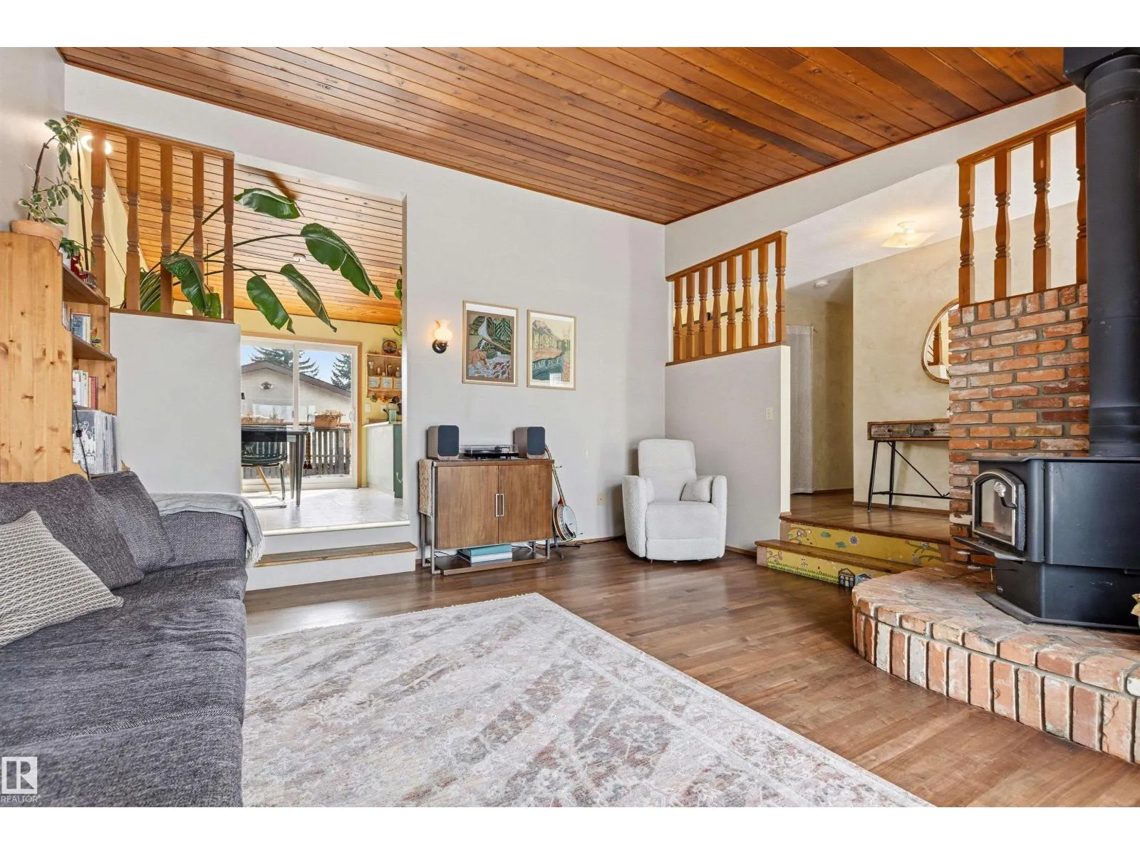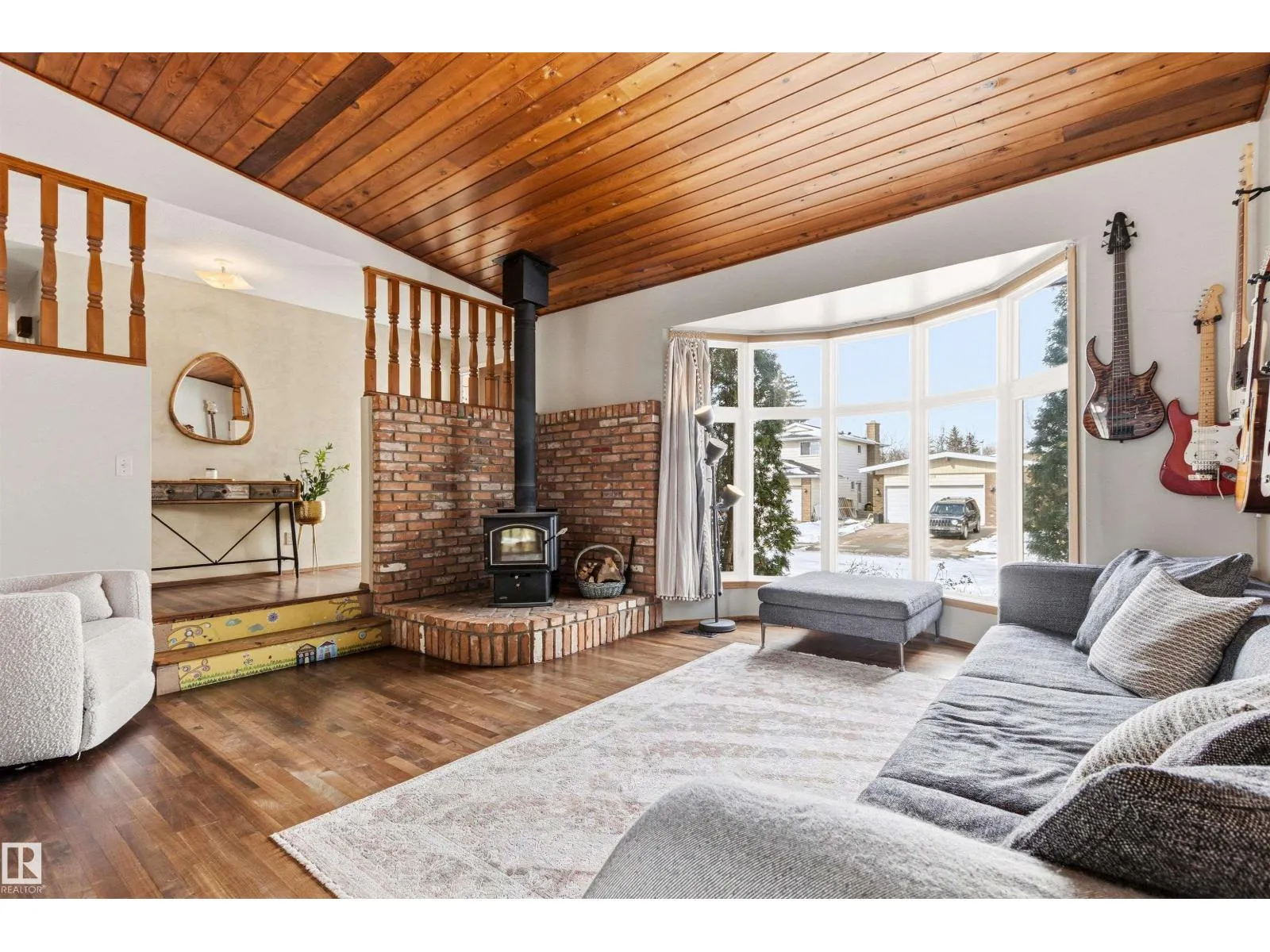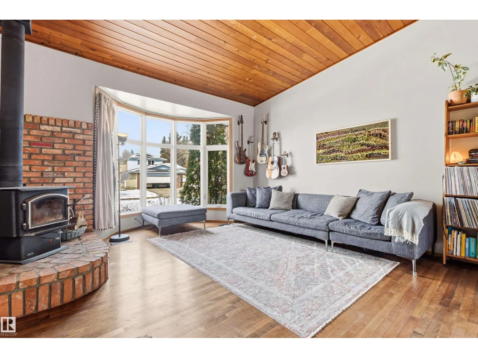 Located in the established community of Ormsby Place, this well-appointed bungalow offers over 2,180 sq ft of total living space w/ a pleasant blend of character & thoughtful updates. The main living area is defined by vaulted cedar plank ceilings, hardwood flooring, & a curved bay window that fills the space w/ natural light, complemented by a freestanding wood-burning fireplace set on a brick hearth. The kitchen features sage cabinetry & plenty of counterspace, opening into the dining room where patio doors lead to a private deck. Three bdrms â including a primary with 2-pc ensuite & a 4-pc bath round out the main level. The FULLY RENOVATED basement impresses w/ a large recreation room w/ a wood feature wall, 2 additional bdrms, a modern 3-pc bath & laundry/utility room. Key updates include the high-efficiency furnace & hot water tank (2022), shingles on the home(2017) & main floor windows (2018). A double detached garage & large, landscaped yard w/ mature trees complete this exceptional home. (id:27476)