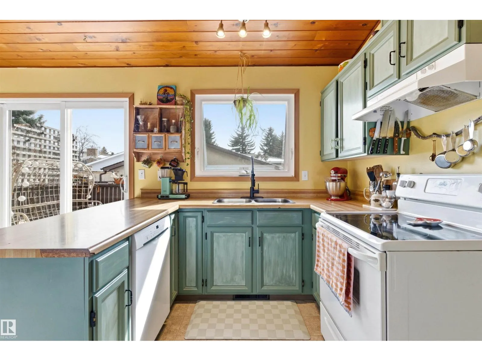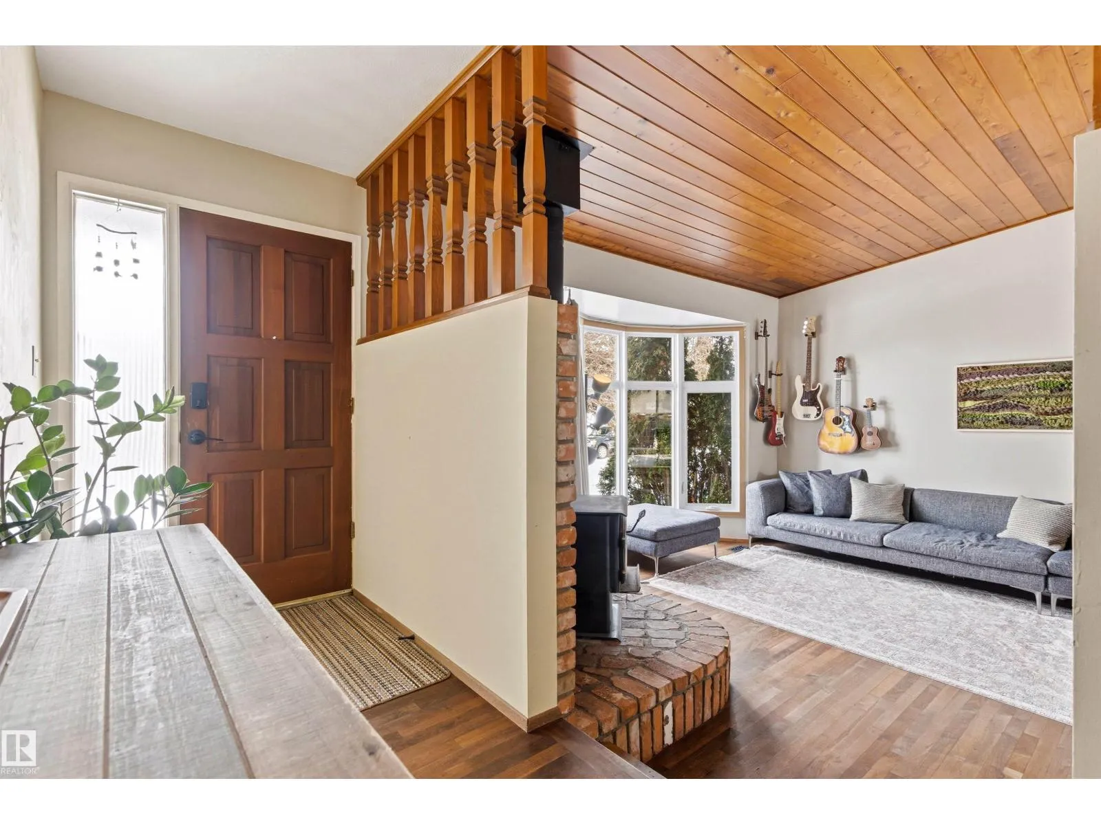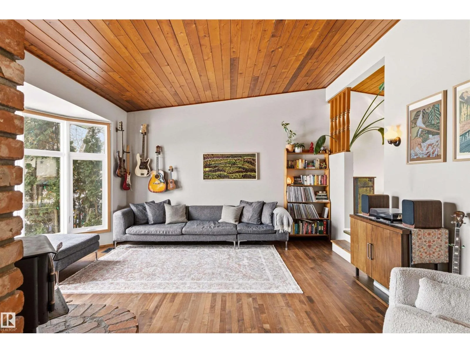 Located in the established community of Ormsby Place, this well-appointed bungalow offers over 2,180 sq ft of total living space w/ a pleasant blend of character & thoughtful updates. The main living area is defined by vaulted cedar plank ceilings, hardwood flooring, & a curved bay window that fills the space w/ natural light, complemented by a freestanding wood-burning fireplace set on a brick hearth. The kitchen features sage cabinetry & plenty of counterspace, opening into the dining room where patio doors lead to a private deck. Three bdrms â including a primary with 2-pc ensuite & a 4-pc bath round out the main level. The FULLY RENOVATED basement impresses w/ a large recreation room w/ a wood feature wall, 2 additional bdrms, a modern 3-pc bath & laundry/utility room. Key updates include the high-efficiency furnace & hot water tank (2022), shingles on the home(2017) & main floor windows (2018). A double detached garage & large, landscaped yard w/ mature trees complete this exceptional home. (id:27476)