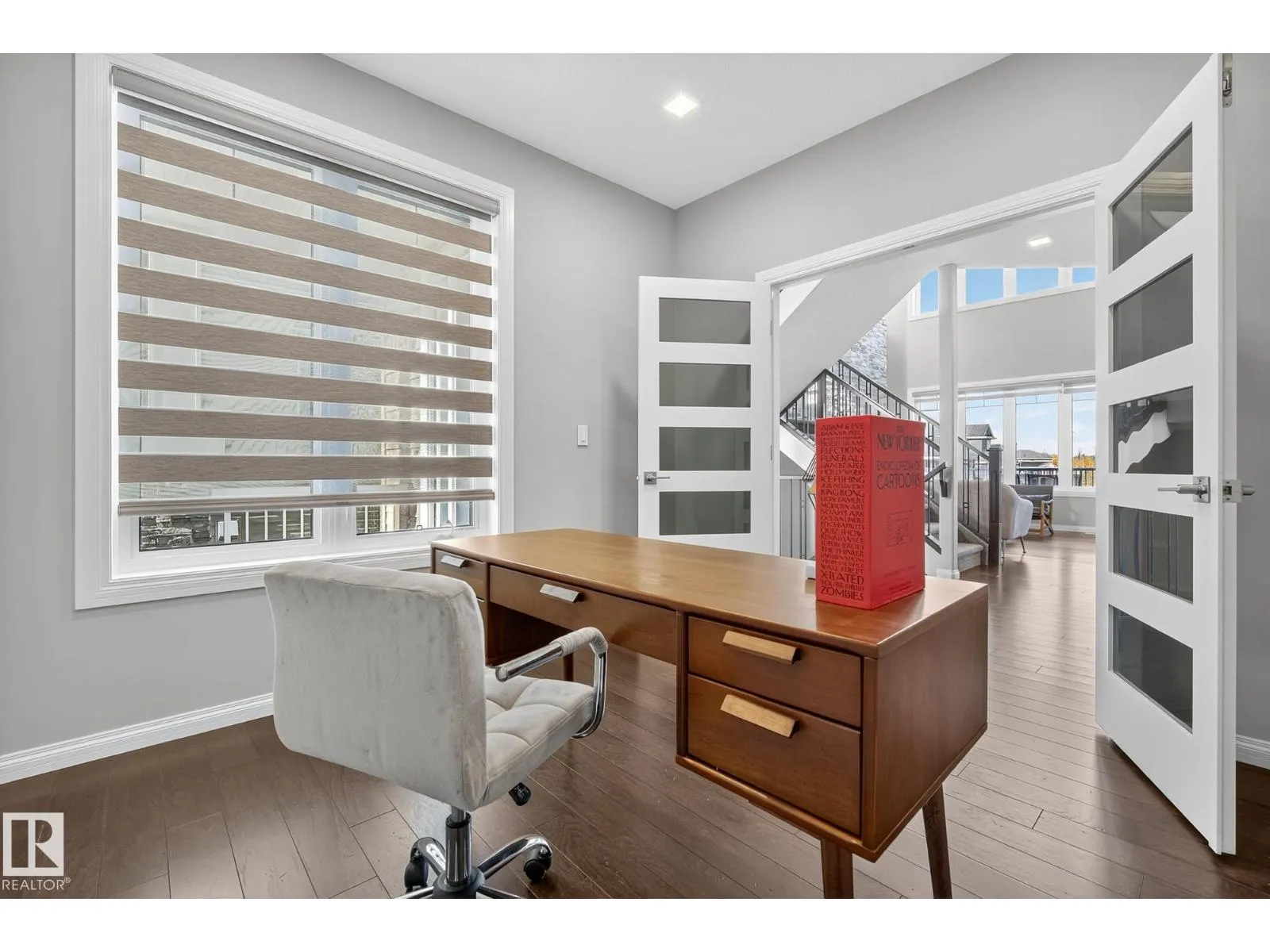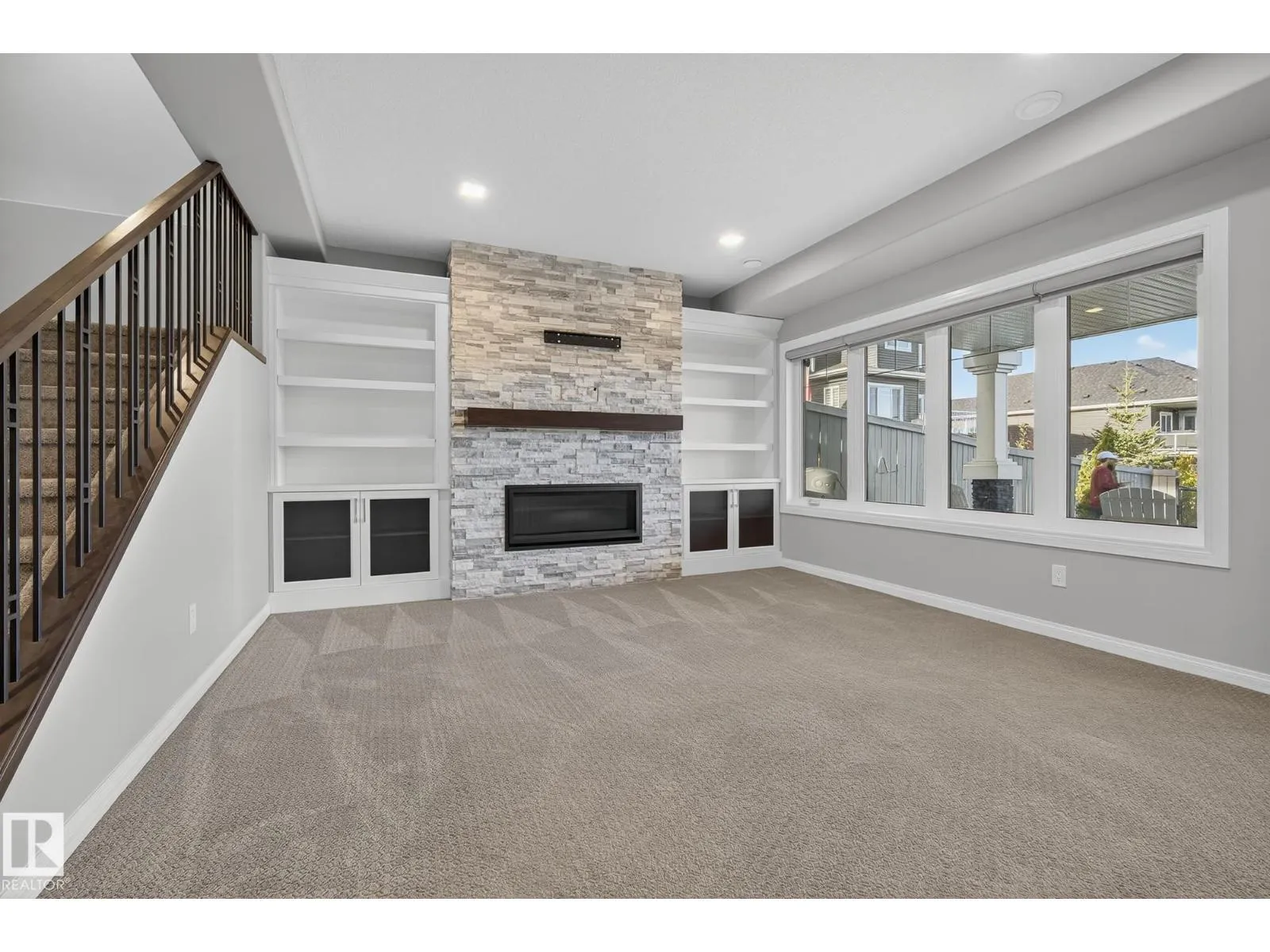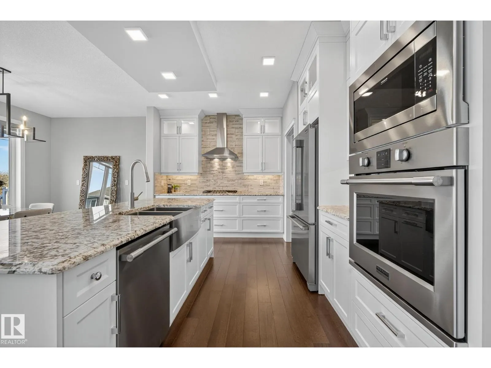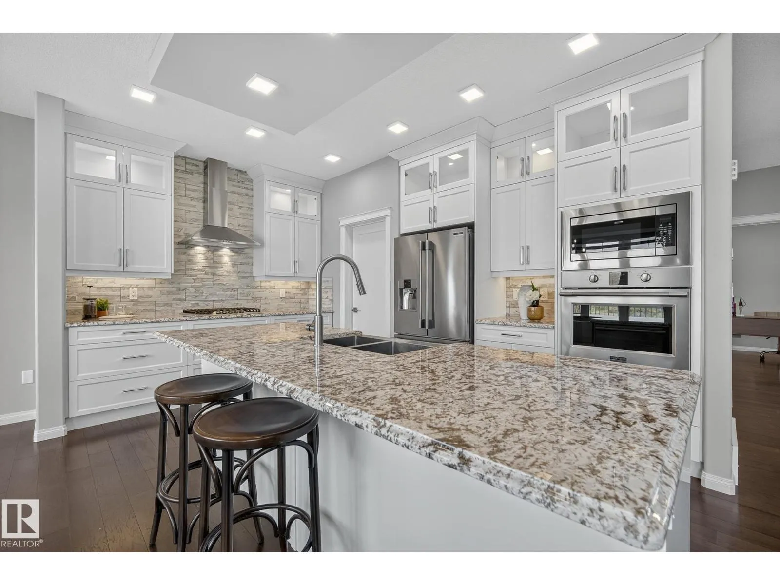 Turnkey and impeccably maintained, this custom-built walkout two-storey offers refined living BACKING DIRECTLY ONTO THE POND in the heart of Starling. Soaring 18-ft ceilings and a dramatic open-to-above great room are framed by a 4-panel window wall, flooding the home with natural light and capturing uninterrupted water views. The kitchen is elegantly appointed with European-style cabinetry, Frigidaire Professional appliances, gas range, and beveled granite countertops. Upstairs features a spacious bonus room, a private primary retreat with walk-in closet connecting to the laundry room, and two additional bedroomsâeach with its own ensuite. The fully finished walkout basement is designed for entertaining with a custom wet bar, rec space with stone fireplace, fourth bedroom, and access to a beautifully finished lower patio overlooking the pond. A rare offering combining design, function, and stunning views. (id:27476)