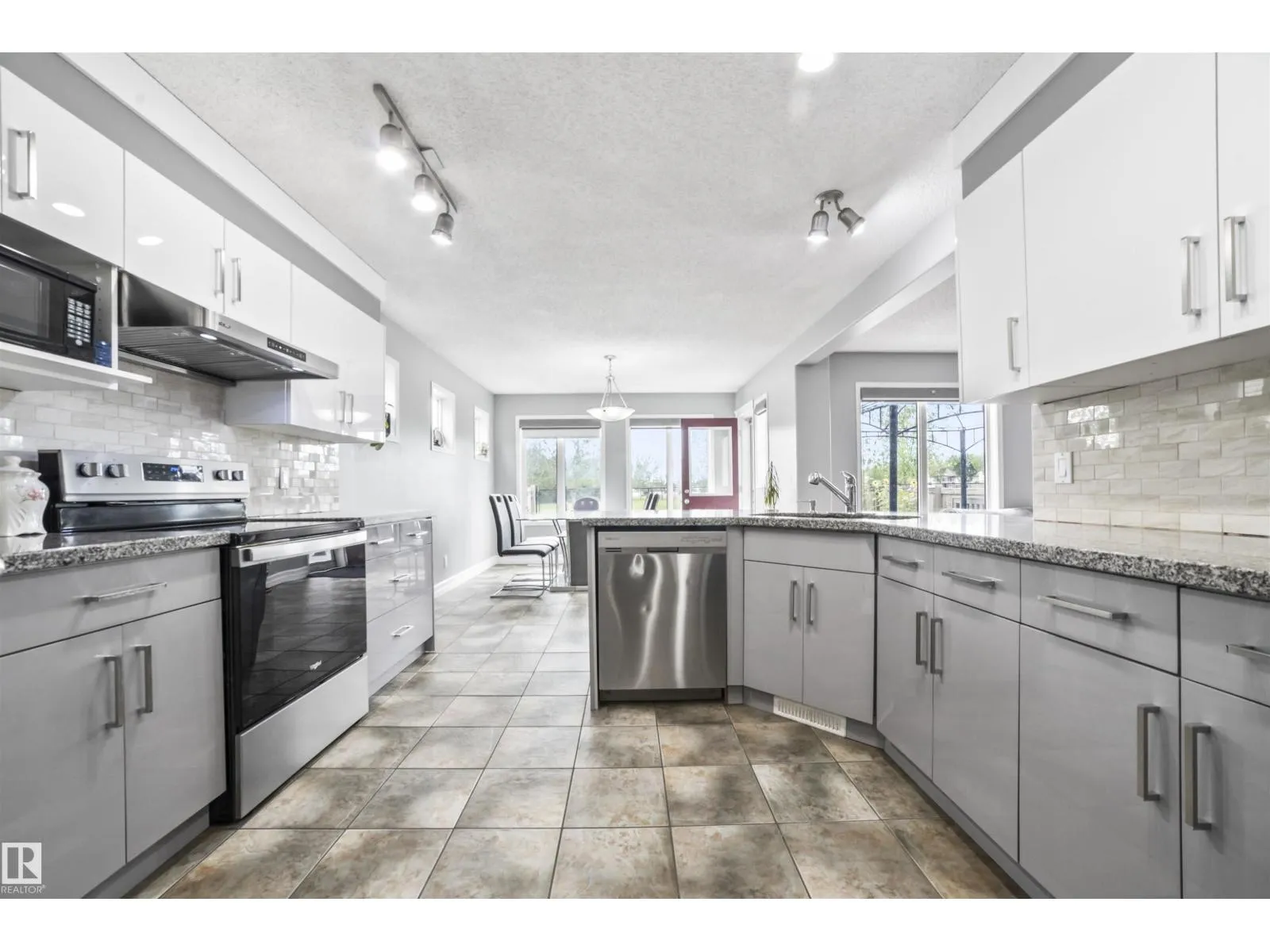 Backs onto a park in the vibrant community of Ellerslie, this upgraded 5-bedroom, 3.5-bath home offers modern design, space, and flexibility. The main floor features a bright open-concept layout with expansive windows, a stylish living area, and a contemporary kitchen with stainless steel appliances, granite countertops, and direct access to a large deck overlooking the fully landscaped yardâideal for entertaining. Upstairs includes three generously sized bedrooms, a sun-filled bonus room, and two full bathrooms, highlighted by a private primary retreat with a walk-in closet and sleek ensuite. The fully finished basement adds exceptional value with a second kitchen, two additional bedrooms, and a full bathroom, making it perfect for extended family or guests. Additional highlights include a double attached garage, brand-new driveway, and a prime location steps from schools, playgrounds, shopping, and public transit. This move-in-ready home delivers comfort, style, and an unbeatable park-backing location! (id:27476)