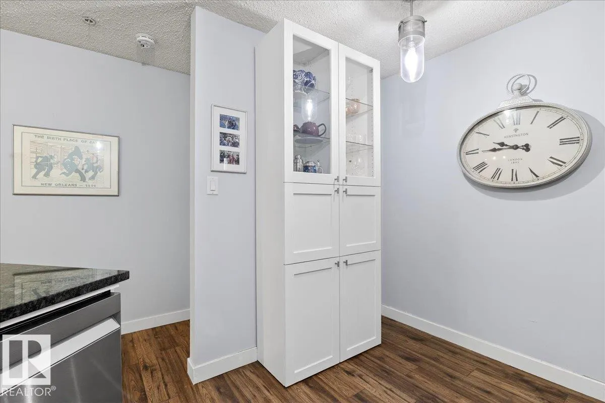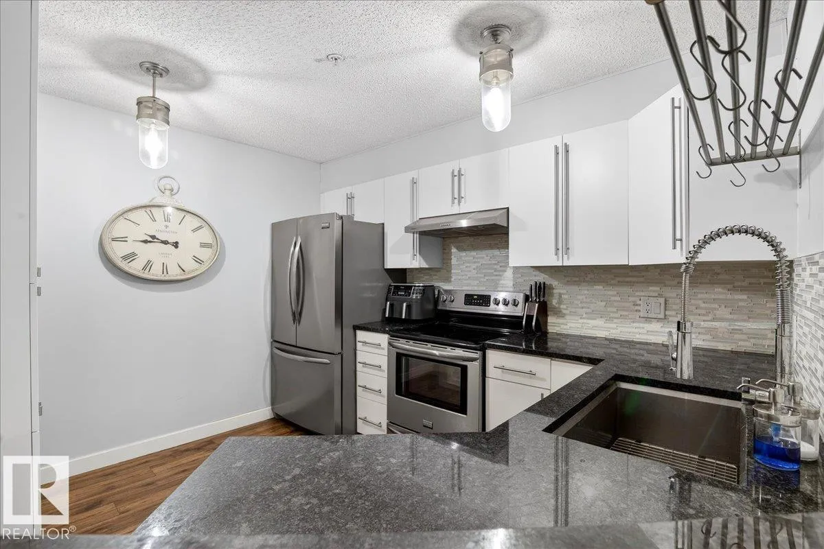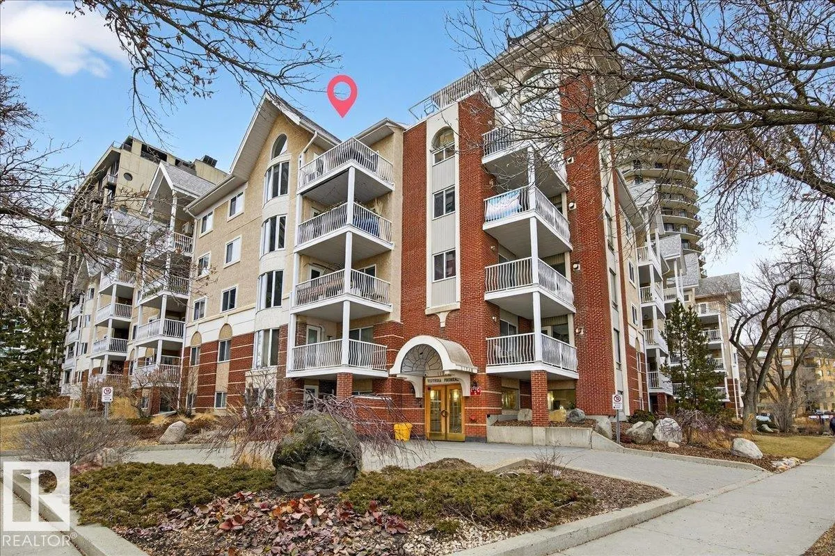 Step onto the PRESTIGIOUS VICTORIA PROMENADE OVERLOOKING the most magical views in Edmonton from your front door! A canopy of trees, a water fountain, benches & gazebos, park space, and even food trucks all make up YOUR FRONT YARD. Step into this 3rd floor, FULLY RENOâD 2 BED 2 BATH CONDO w AC, ENSUITE LAUNDRY, and a GAS FIREPLACE! Not to mention UNDERGROUND parking AND a STORAGE UNIT! You truly feel the spaciousness of this home- the kitchen is MASSIVE w a BUILT IN PANTRY, GRANITE COUNTERTOPS, an EAT UP BAR, and SS APPLIANCES! Your living room is well sized & can easily accommodate a dining table. The balcony has a gas line! Even though you have a storage cage, your laundry room has very enviable storage! A side by side washer-dryer and room for more storage above! Bedrooms are separated on either side of the suite. The home is well maintained and move in ready - come home to one of the most special places in our city. (id:27476)