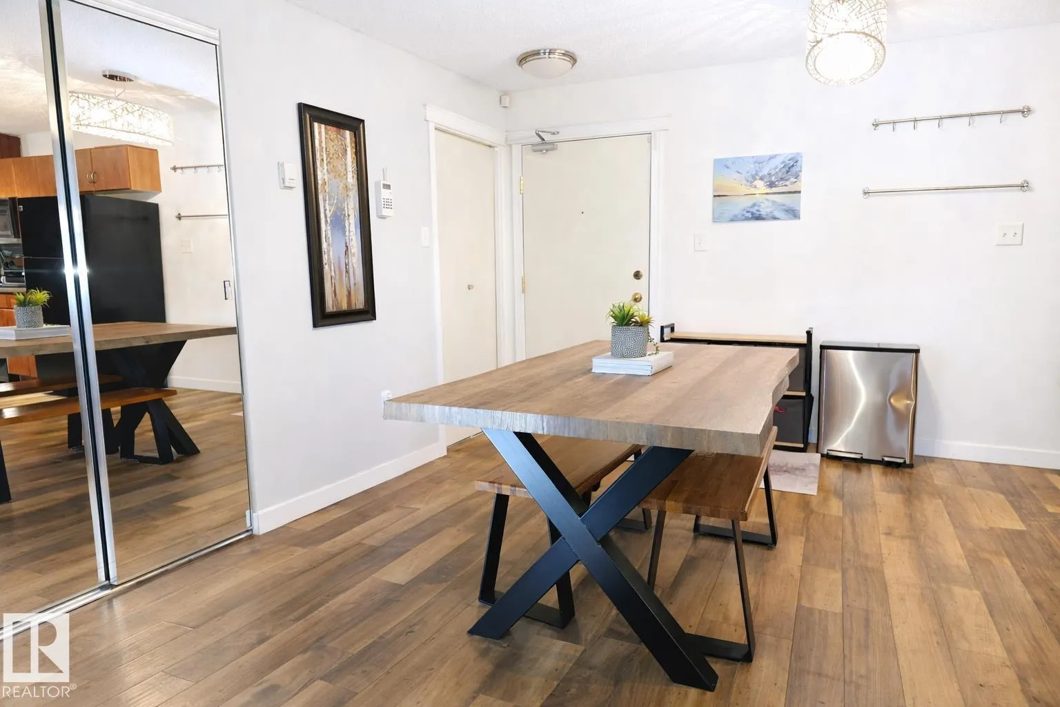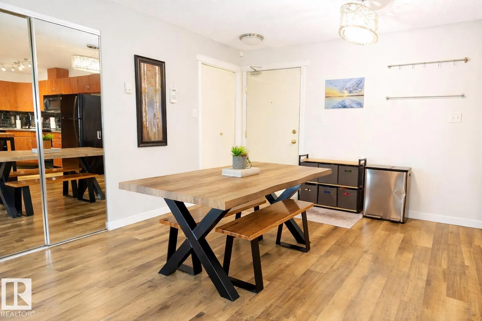 Welcome to Grange Pointe! This well maintained and upgraded 1028 sqft 2 bedroom, 2 bath condo offers a bright open concept layout. The large kitchen offers plenty of space and a stylish wood island with added eating space that flows seamlessly into the dining and living area. Step out onto your private balconyâperfect for relaxing. The spacious primary suite features a walk thru closet and 4 piece ensuite while the second bedroom is thoughtfully positioned on the opposite side for added comfort and privacy. Additional features include in-suite laundry with storage, abundant natural light and a parking stall. Enjoy nearby parks, shopping and convenient access to major amenities, Anthony Henday and Whitemud Drive. This is easy living at its best! (id:27476)