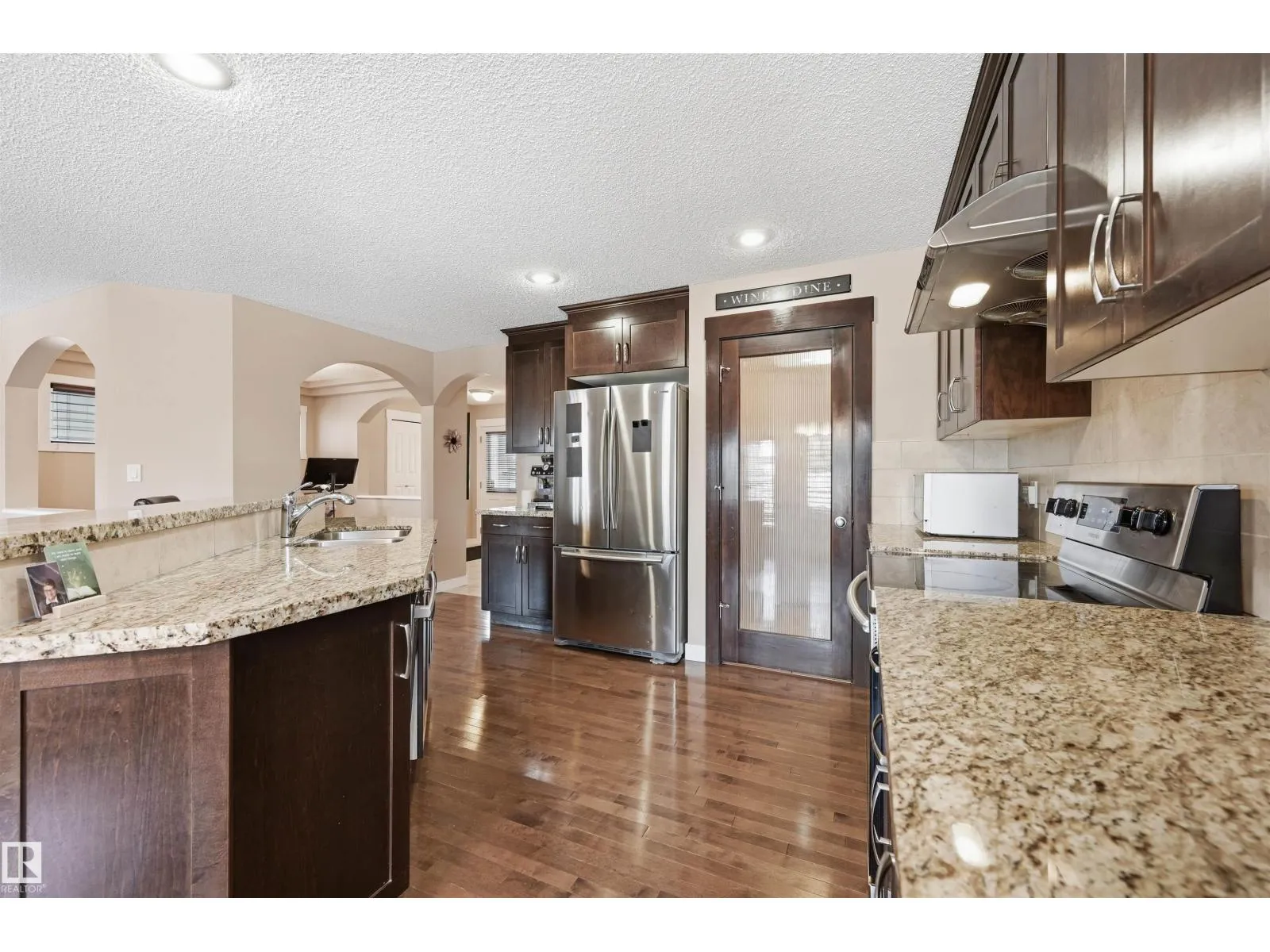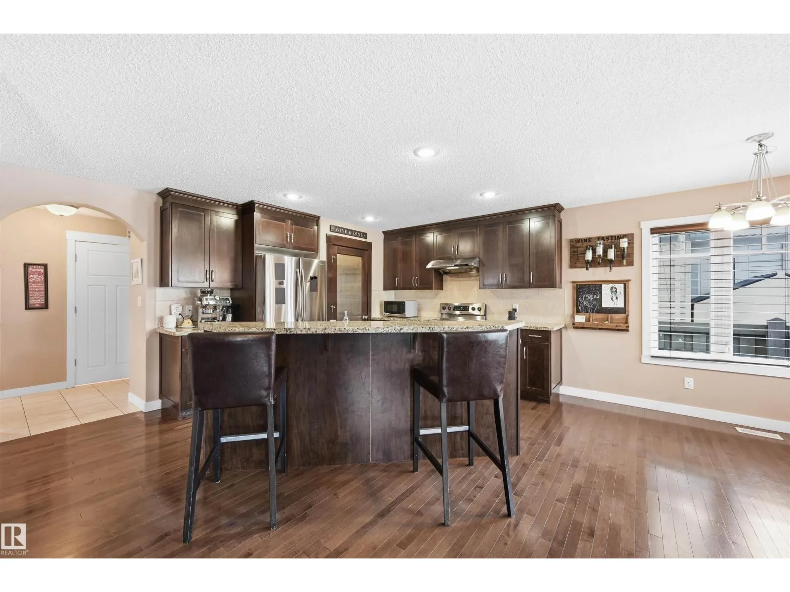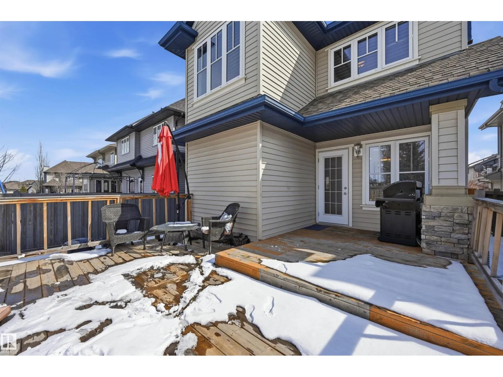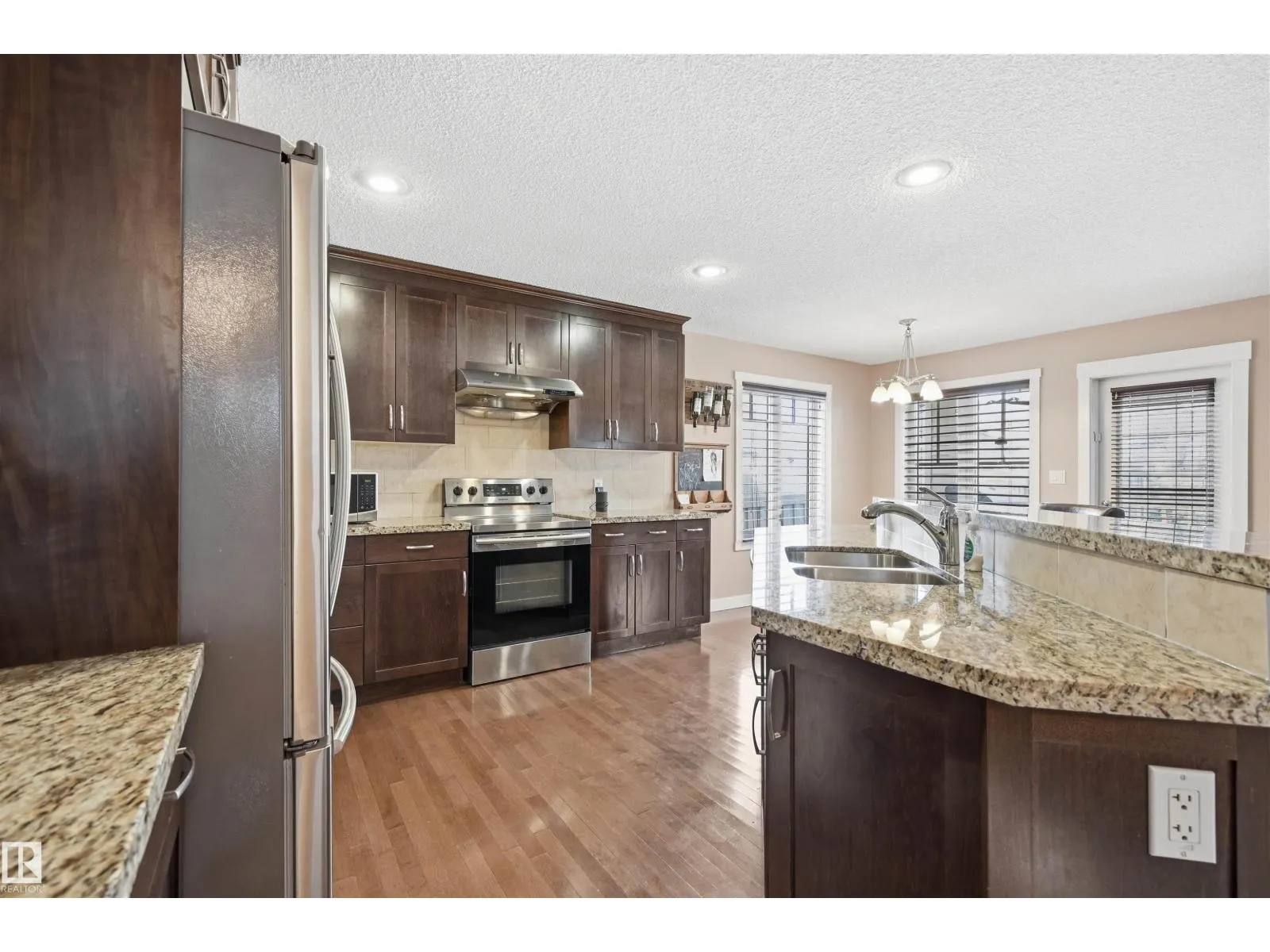 Fabulous Ambleside location just steps to Dr. Margaret-Ann Armour School & quality built by Cameron Homes boasting 5 bedrooms! Open concept plan w/ lots of natural light, ideal for those who love to entertain. Main floor flex rm can be used as a den or formal dining rm. Living rm located right off of kitchen & bright dining nook. Enjoy spacious kitchen w/ cabinets galore, stainless steel appliances & a walk through pantry leading to mudrm. Upper level has 3 spacious bdrms & bonus rm (all baths have granite counters & tile flooring). Sunny primary rm boasts a sitting area, walk-in closet plus double closets. Ensuite equipped w/ dual sinks, oversized soaker tub & separate shower. Extended deck for outdoor entertaining plus big yard! NEWER BASEMENT development w/ 2nd living rm, 2 more bdrms & bathrm roughed-in! Upgrades include newer carpet, AC, granite throughout, central vac, hardwood, water softener & more! Close to parks/pond, transit, shopping/Windermere Currents & easy access to the Henday! (id:27476)
