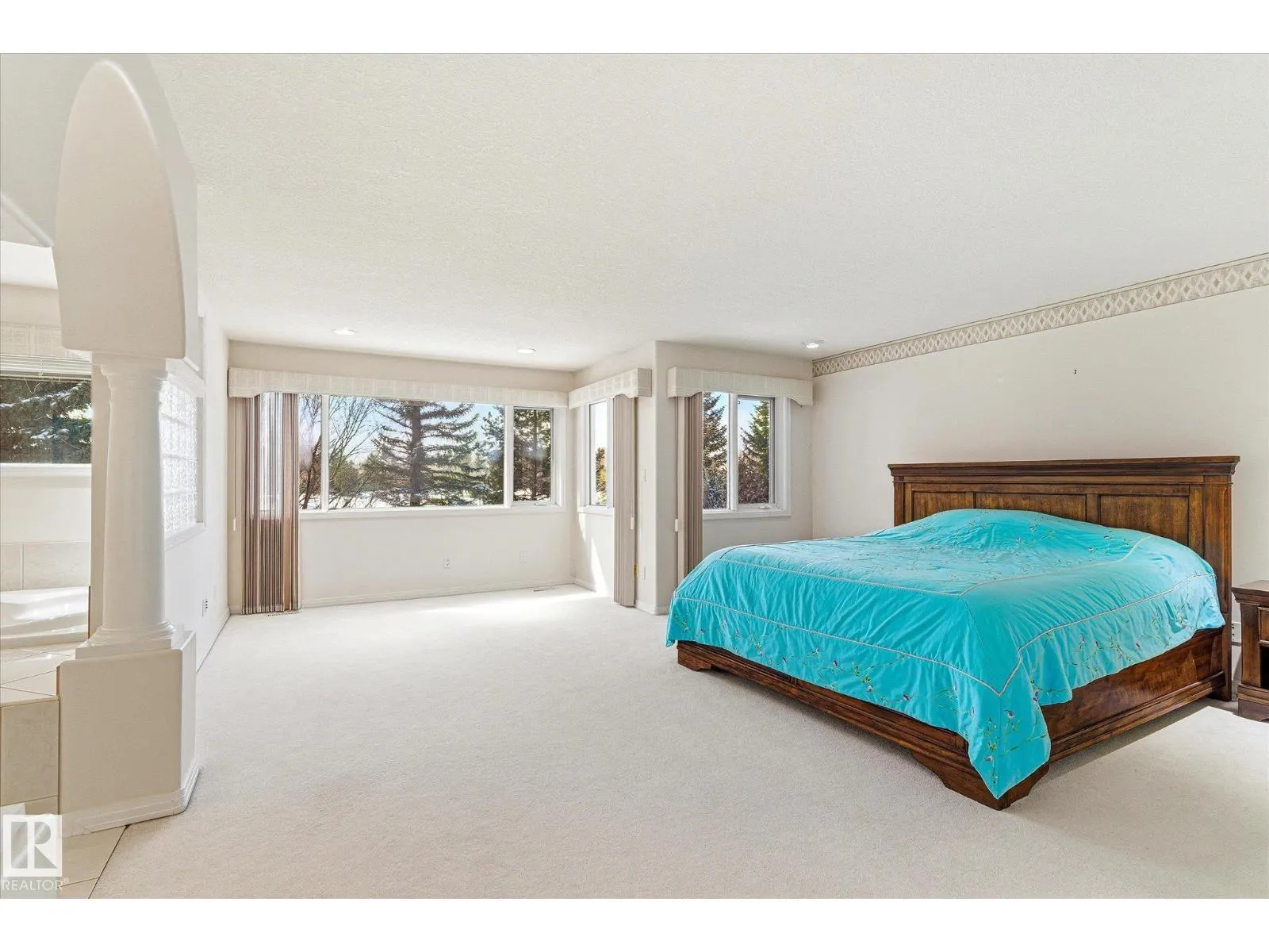 Impressive home located in the prestigious Wedgewood Heights, with triple heated garage backing onto a park and just steps from scenic walking trails, ravine, and community park. This beautifully home features a grand foyer entrance, a spacious and bright living room, an elegant formal dining room, and a cozy family room with a fireplace. The open-concept chefâs kitchen is thoughtfully appointed with abundant cabinetry, an oversized island, and modern appliances. A bedroom, three-piece bathroom, spacious laundry room, and a bright office/sunroom complete the main floor. A state-of-the-art curved oak staircase leads to the upper level, which features a luxurious primary suite with in-floor heating, a walk-in closet, and a five-piece ensuite. Two generously sized additional bedrooms and a four-piece bathroom complete the upper floor. The fully finished basement, also equipped with in-floor heating, offers a second living room, an exercise room, an additional bedroom, and a four-piece bathroom. (id:27476)
