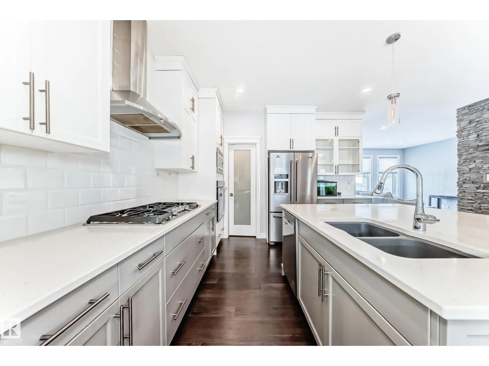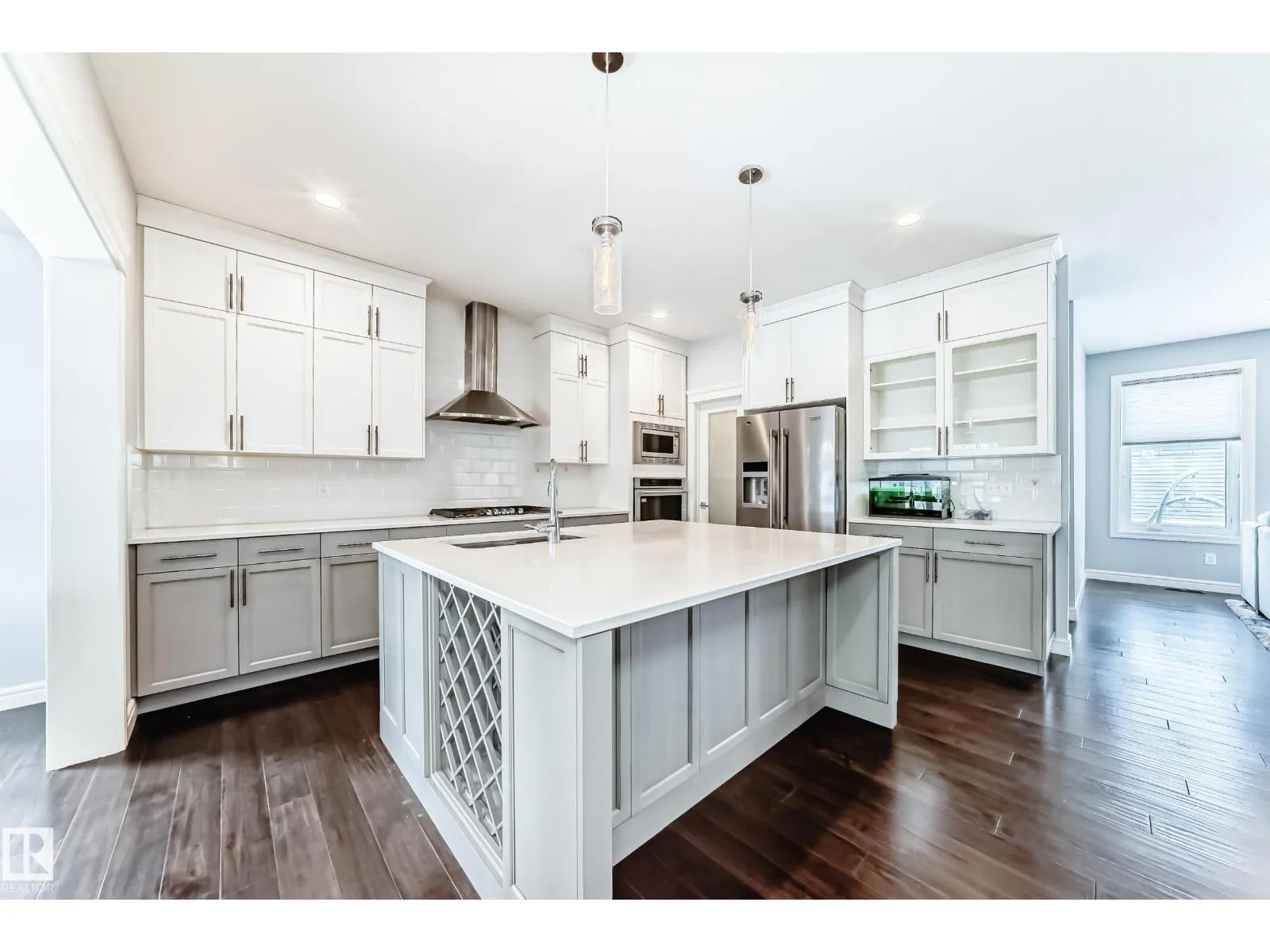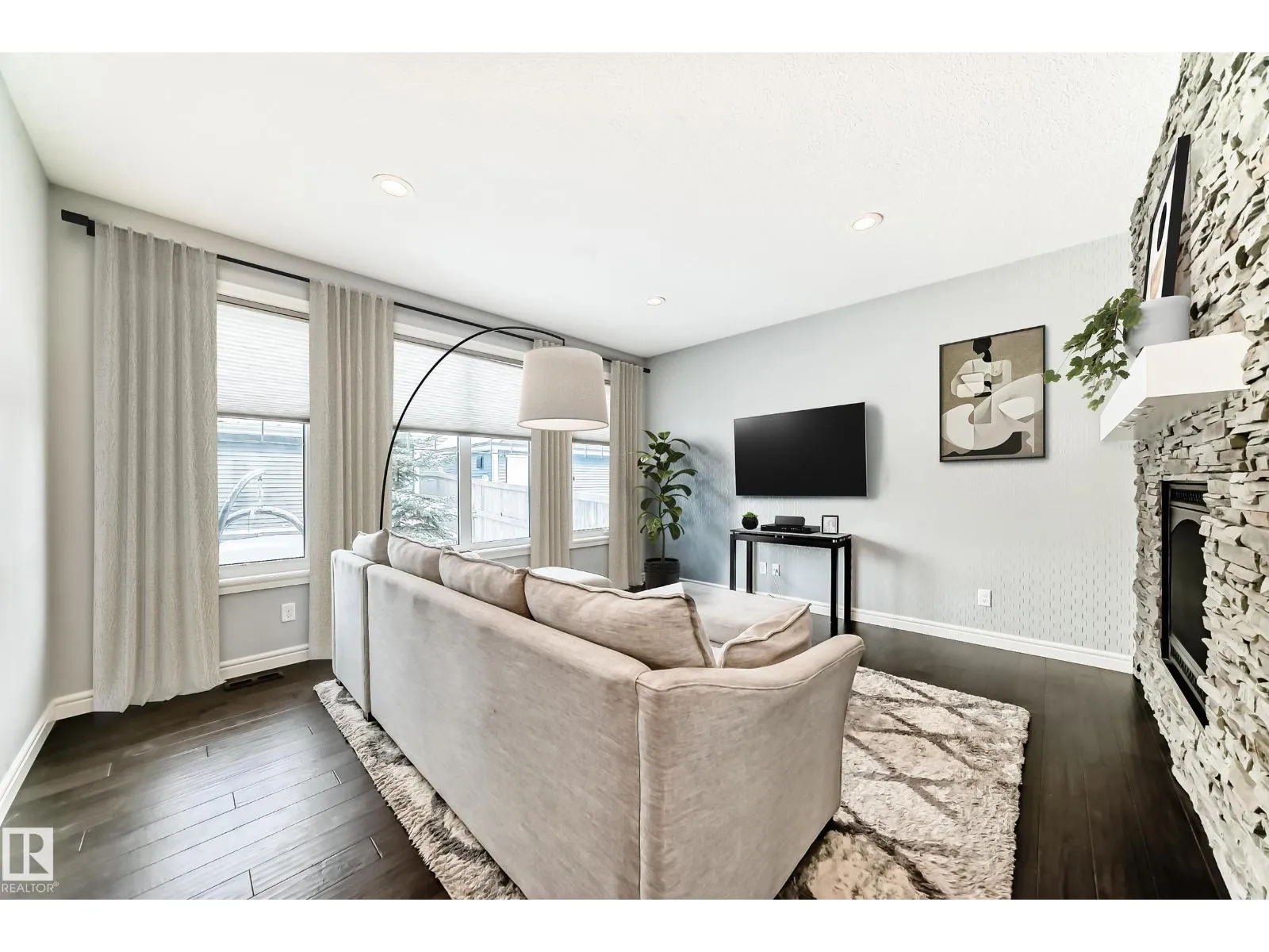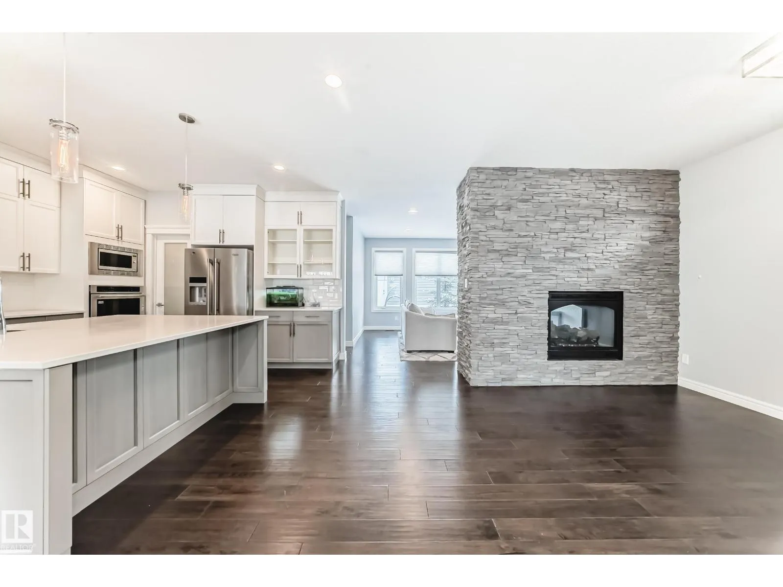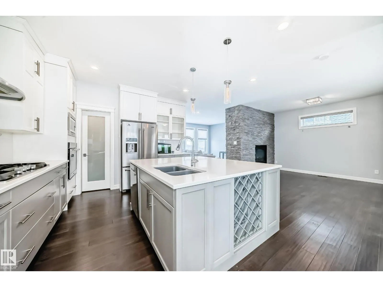 WELL-APPOINTED 2-STOREY IN GRIESBACH WITH FINISHED BASEMENT Set in the award-winning community of Griesbach, known for its tree-lined streets, lakes, and extensive park system, this 2,211 sqft, 4-bedroom, 3.5-bath home offers a thoughtful balance of space, design, and lifestyle. The main floor features engineered hardwood and a striking two-sided gas fireplace with brick feature wall connecting the living and dining areas. The kitchen flows easily into the main space, while a separate formal dining room adds flexibility. A mudroom and 2-piece bath complete the level. Upstairs, the bonus room and laundry add everyday convenience. The primary suite includes a walk-in closet and 5-piece ensuite, with two additional bedrooms and a full bath. The finished basement offers a fourth bedroom, 3-piece bath, and additional living space. Outside, enjoy a landscaped, fenced yard with deck and patio, plus a double detached garage. A home that pairs comfort with one of Edmontonâs most thoughtfully designed communities. (id:27476)