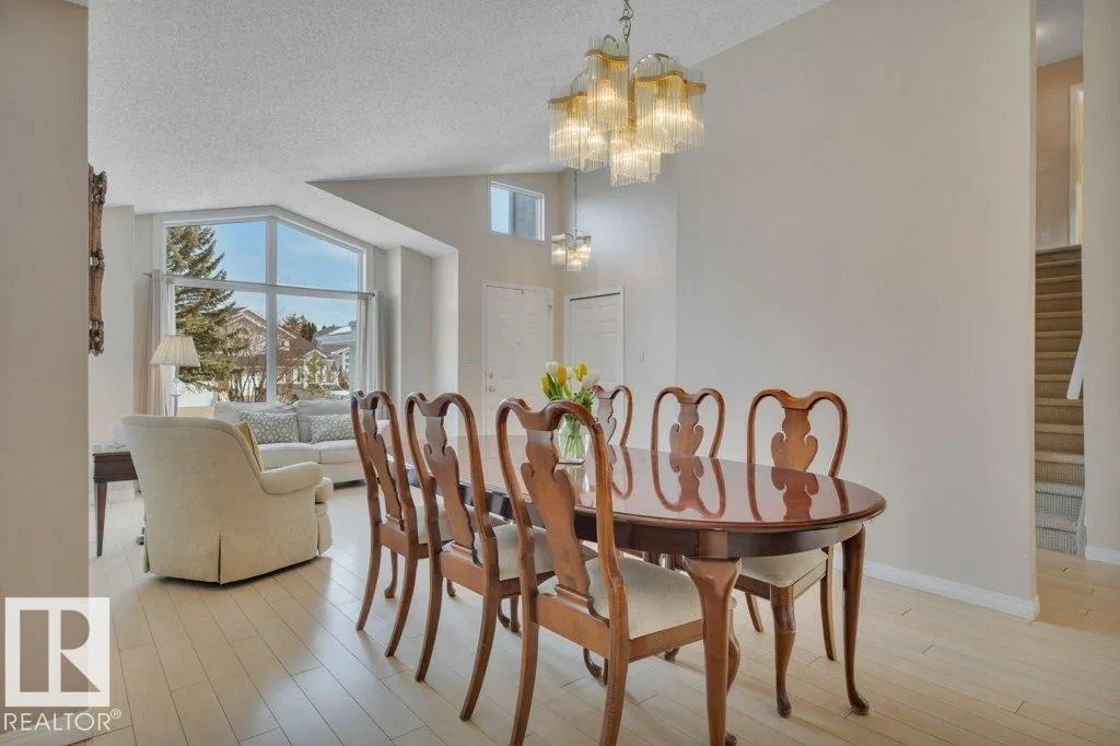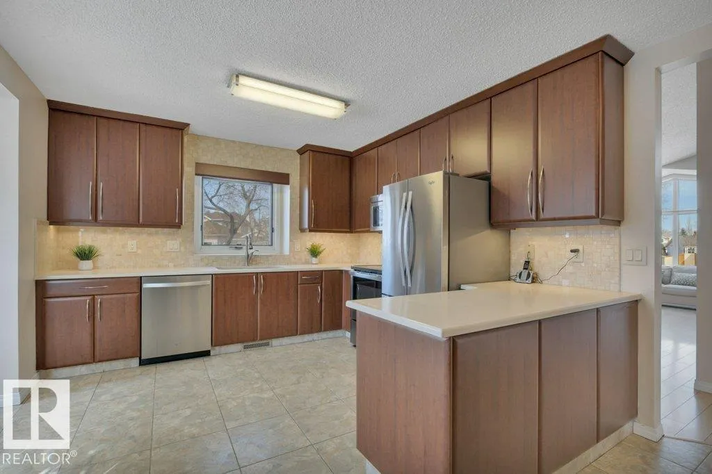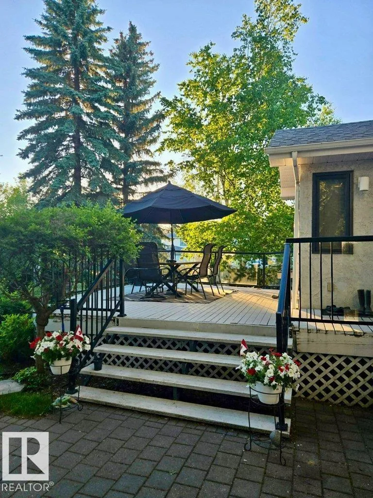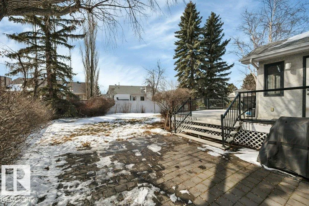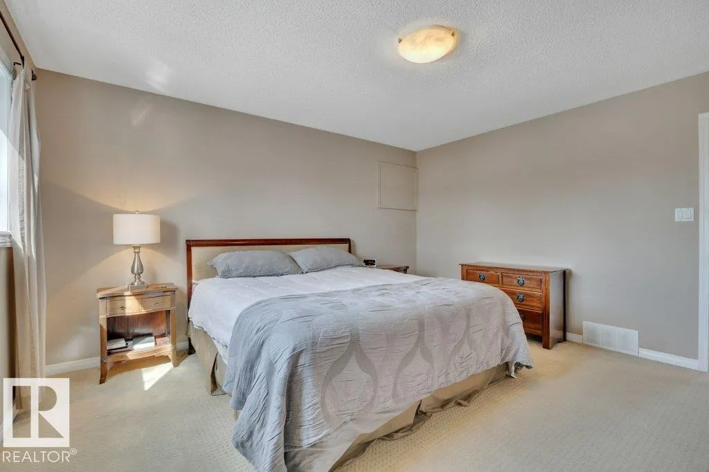 Prime Riverbend location on a quiet cul-de-sac, just a block from Earl Buxton & St. Mary schools, with quick access to Whitemud! This original-owner home offers 2,000 sq ft, plus a fully finished bsmt, 5 bdrms, a den, & 3.5 baths on a 730 sq.m. lot! The main floor features vaulted ceilings & laminate floors through the living & dining room, plus a rear family room with WETT-inspected wood-burning fireplace. Kitchen includes quartz counters, tile backsplash, stainless steel appliances & under-mount lighting. Watch your kids walk to school from the kitchen window! Enjoy morning coffee in the sunny dining nook overlooking the private, fully fenced yard with large deck, stone patio & mature trees. King-sized primary with walk-in closet & 3-pc ensuite. Three bedrooms up, plus two bedrooms, a rec room, bonus room, mechanical room with hobby area, & 3-pc bath in basement. Vinyl windows upstairs & front living room. Central A/C. Double attached garage. A perfect family home in a location that truly canât be beat! (id:27476)