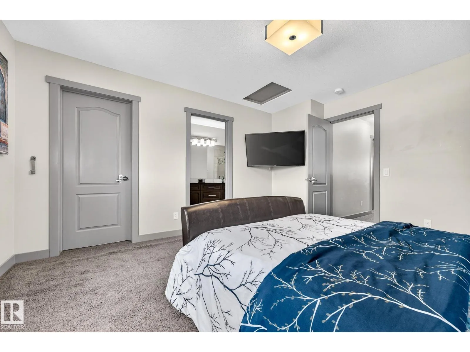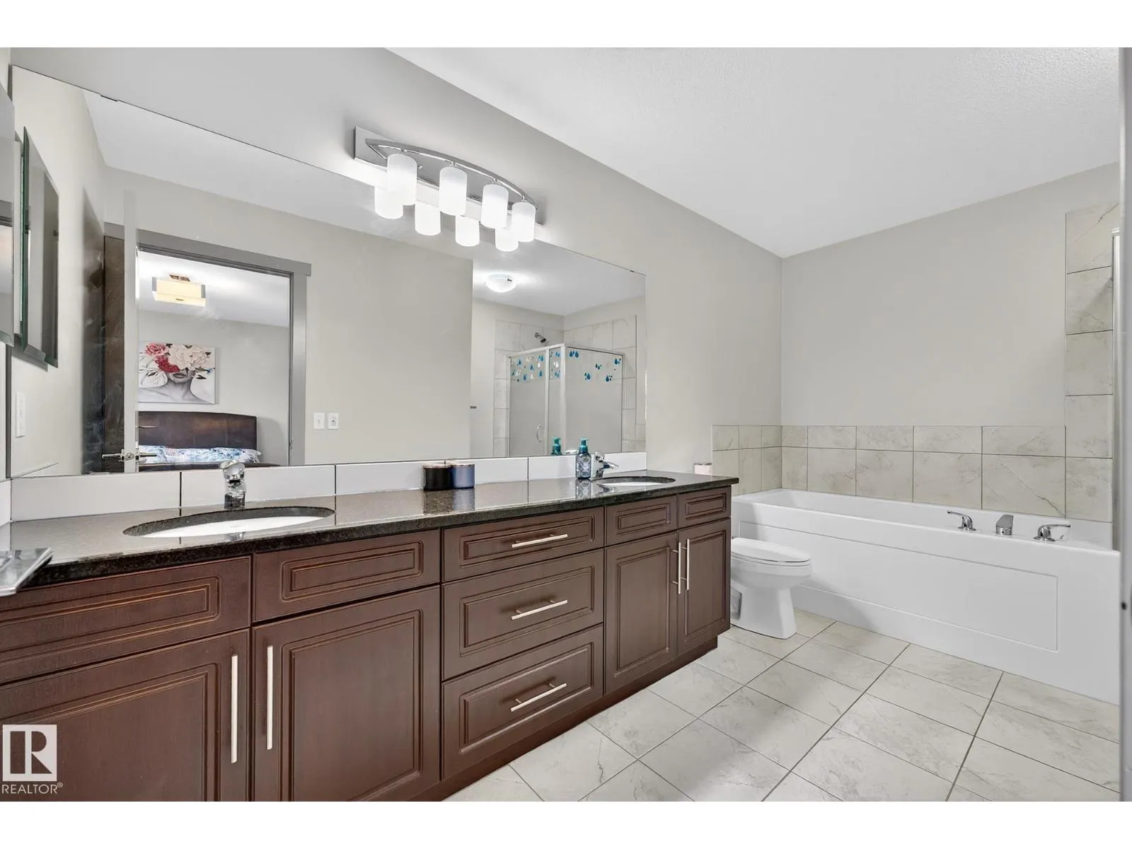 Experience the ultimate West Edmonton lifestyle in this meticulously maintained two-storey home in the family-focused community of Secord. This vibrant neighborhood is renowned for its scenic walking trails, lush wetlands, & convenient proximity to highly-rated local schools & playgrounds. The bright main floor features an open-concept layout with wide-plank laminate flooring & a cozy gas fireplace that serves as a warm centerpiece for the living area. The chef-inspired kitchen boasts granite countertops, stainless steel appliances, dark wood cabinetry, & a spacious pantry. Upstairs, discover a peaceful retreat in the primary suite, complete with a massive walk-in closet and a spa-like 5-piece ensuite designed for total relaxation. The fully finished basement adds a versatile rec room and a convenient half bath. Step outside to a large backyard deck with a custom pergola, perfect for entertaining. With Central AC & a prime location near the Anthony Henday, your commute is as seamless as your lifestyle. (id:27476)