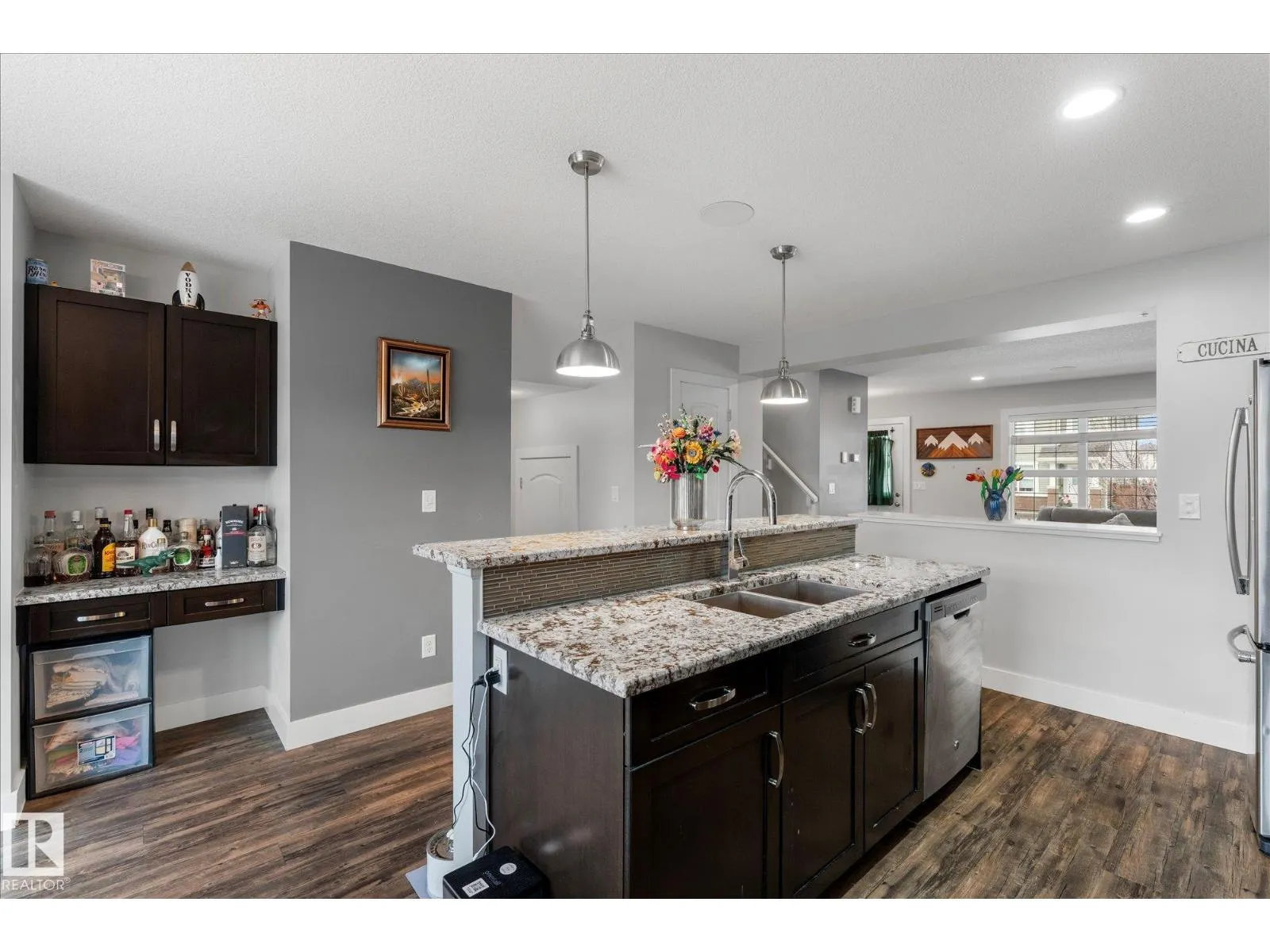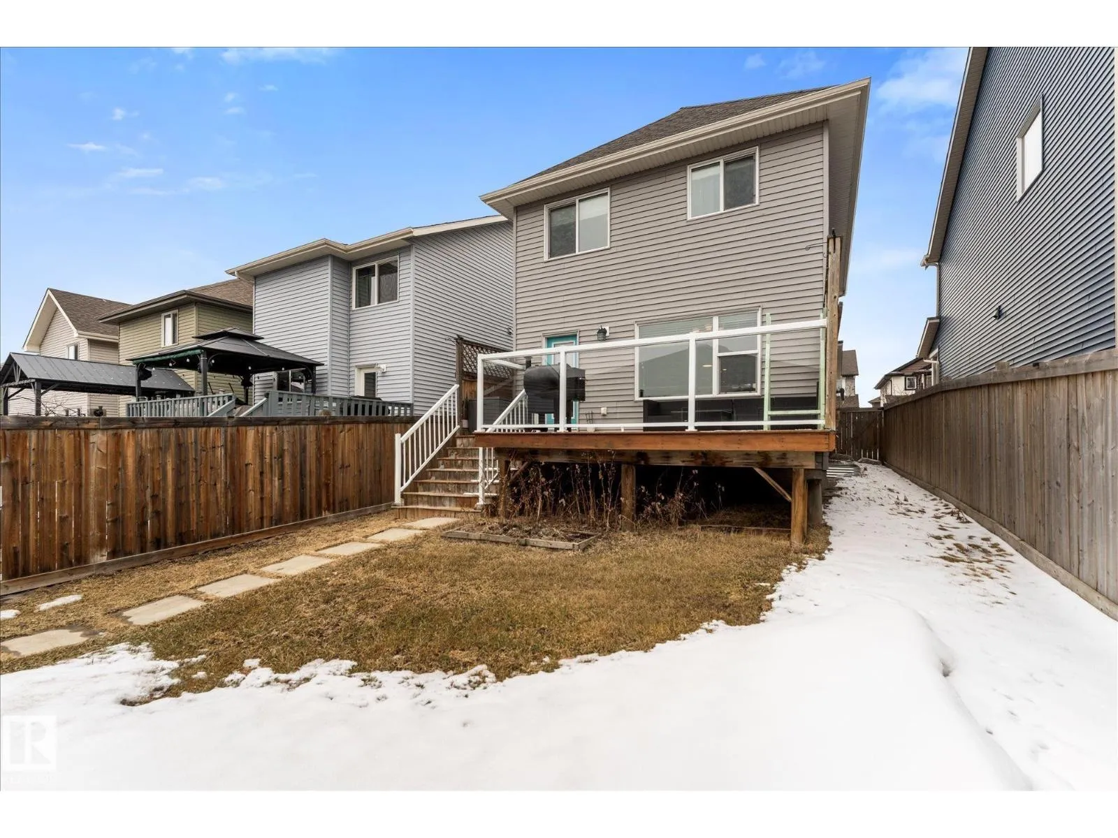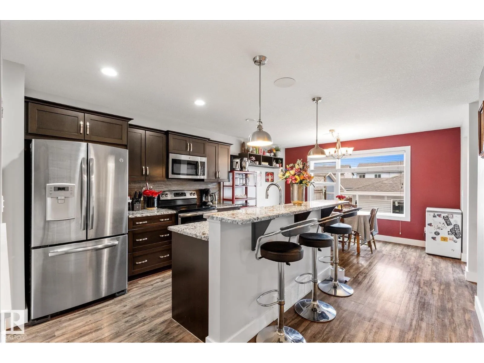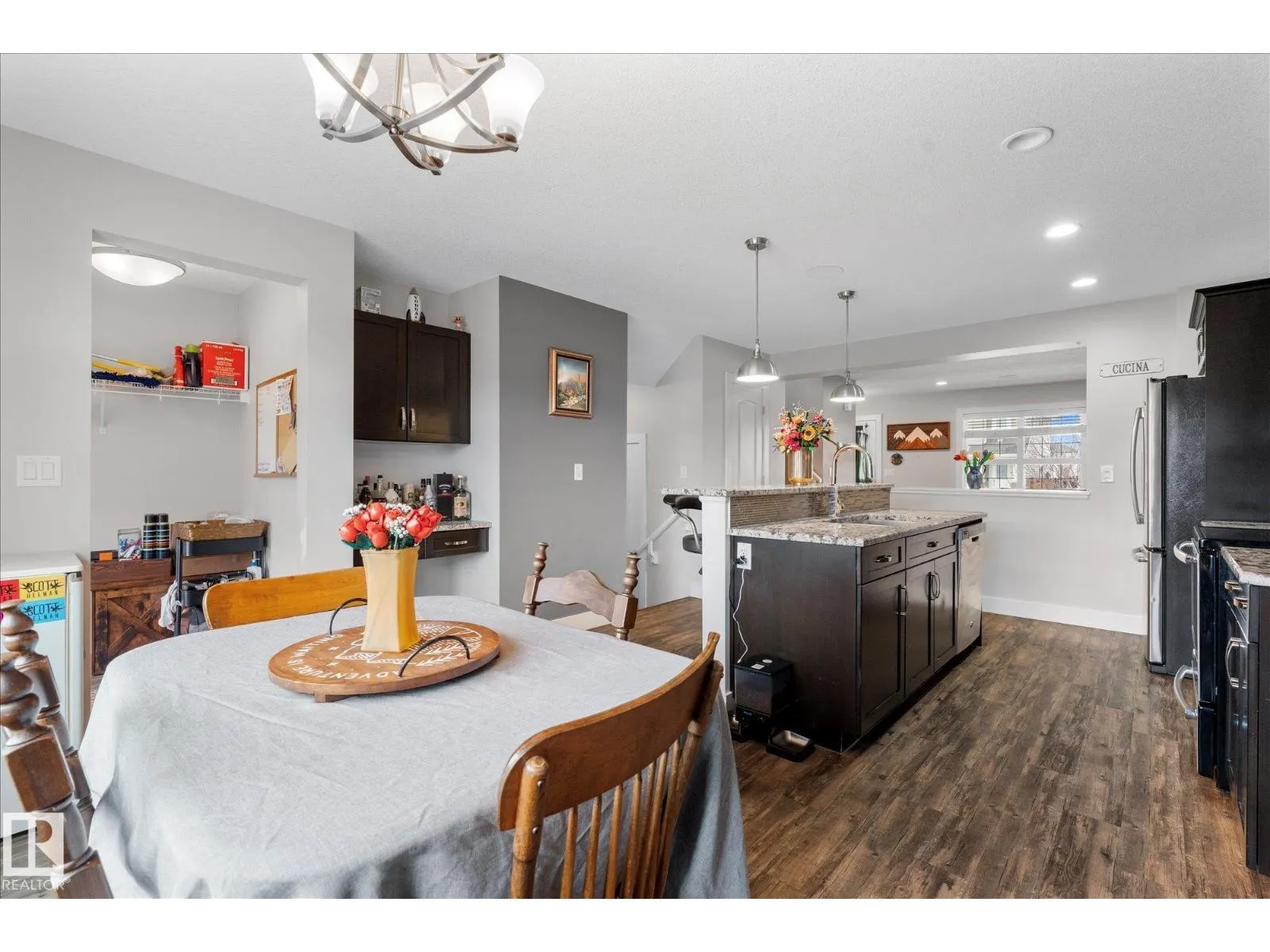 This stylish home features inviting curb appeal and a functional layout, with several upgrades already completed. The open-concept main floor showcases luxury vinyl plank flooring and granite countertops, creating a clean, modern feel. The bright and spacious living room features a cozy gas fireplace and ceiling-mounted Bluetooth speakers. The kitchen offers dark cabinetry, stainless steel appliances, an extended eat-up bar, and an undermount sink, while the dining area overlooks the deck and yard. A convenient 2-piece bath completes the main level. Upstairs, the primary suite includes a walk-in closet and 3-piece ensuite with stand-up shower. Youâll also find a second bedroom, full 4-piece bathroom, and a versatile bonus room. The basement is nearly finished and ready for your final touches, with space for a third bedroom, family room, bathroom, storage, and laundry. Heated 21x21 detached double garage. Additional features include an 80-gallon hot water tank, HRV, and A/C!! (id:27476)