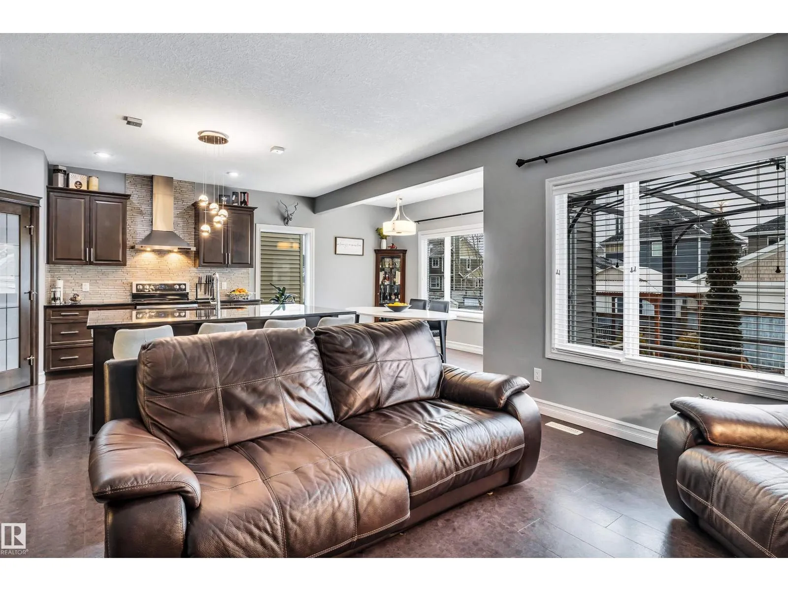 BRING THE FAMILY to your 6-bed, 4-bath 2-storey home in Summerside - where luxury living meets year-round lake lifestyle! Nestled on a quiet cul-de-sac, this executive home offers over 3,000 sq ft of beautifully developed open concept space with thoughtful touches throughout. Main floor features a huge gourmet kitchen, granite countertops, corner pantry, rich cabinetry and massive eat-up island flowing seamlessly into the bright dining area and overlooking the living area and gas fireplace. A main floor bedroom and full bathroom are perfect for guests or extended family. Step outside to your private backyard oasis with pergola, BBQ area, covered deck, and low-maintenance artificial turf â made for easy entertaining! Upstairs, the massive primary suite boasts a walk-in closet and spa-inspired 5-piece en-suite, plus two additional beds, a 4-piece bath, and a massive bonus room. The finished basement offers a private entrance, 2 beds, 3-piece bath, ready for a kitchen and laundry - perfect suite potential! (id:27476)