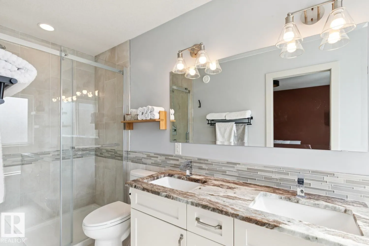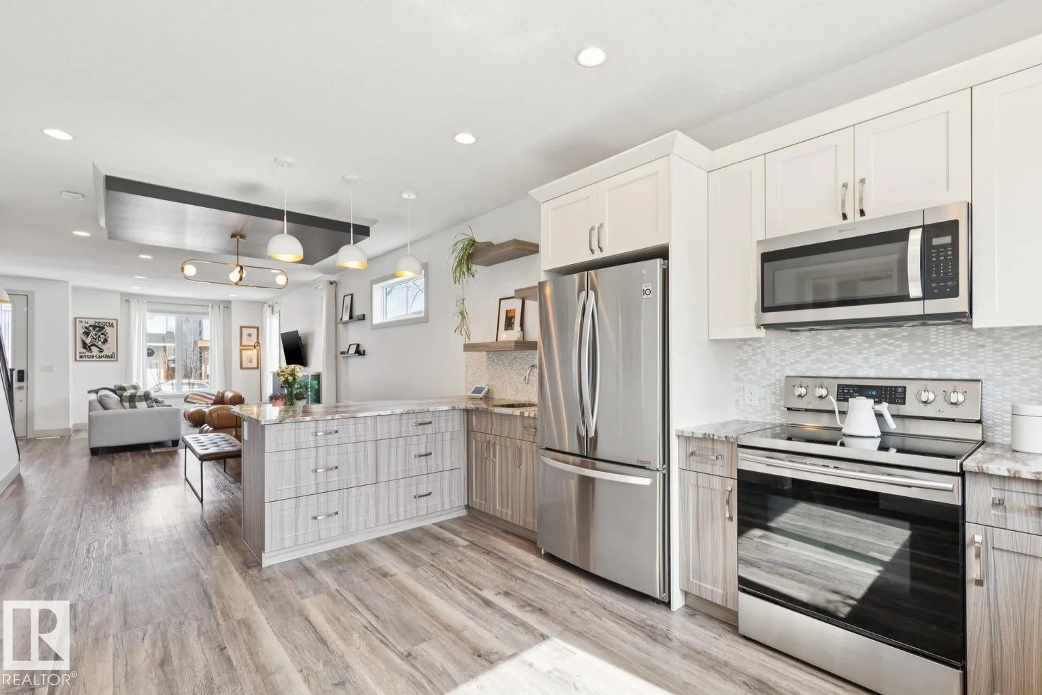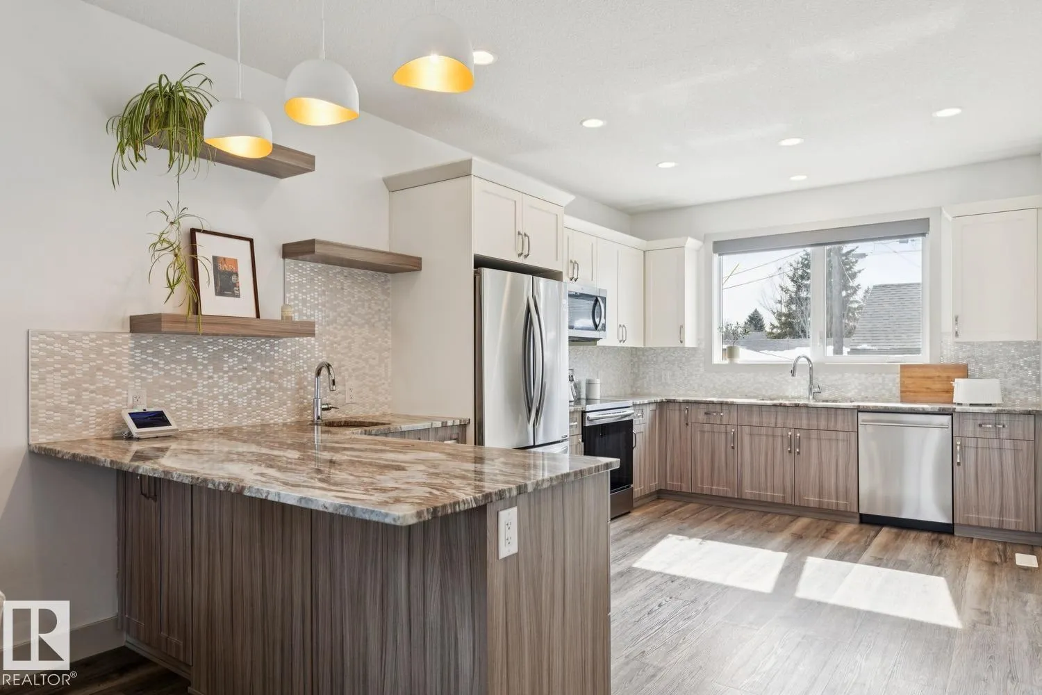 Better than new: NO MAINTENANCE LANDSCAPING (art. turf), done. FENCING & DECK, done. WINDOW COVERINGS, done! This gorgeous home has been stylishly tweaked and finished for you - all you need to do is move in! Located just steps from Edmonton's River Valley, this 1,592sq.ft, 3 bed/2.5 bath property will impress you the minute you step inside. The open concept main floor has an ideal layout, with the kitchen running along the back of the house - maximizing countertop & storage space. The main sink overlooks your sunny SOUTH-facing backyard & the deck (perfect for the incoming patio weather). Granite countertops + S/S appliances & an add'l prep sink complete this kitchen. Upstairs you'll find the primary bedroom with its walk-in closet & 5PC bath (incl. deep soaking tub & shower). 2 add'l bedrooms (one currently styled as a bonus room), 4PC bath & FULL laundry room complete this level. The basement is ready for finishing (rough-in for bath + oversized windows). This walkable, mature community awaits! (id:27476)