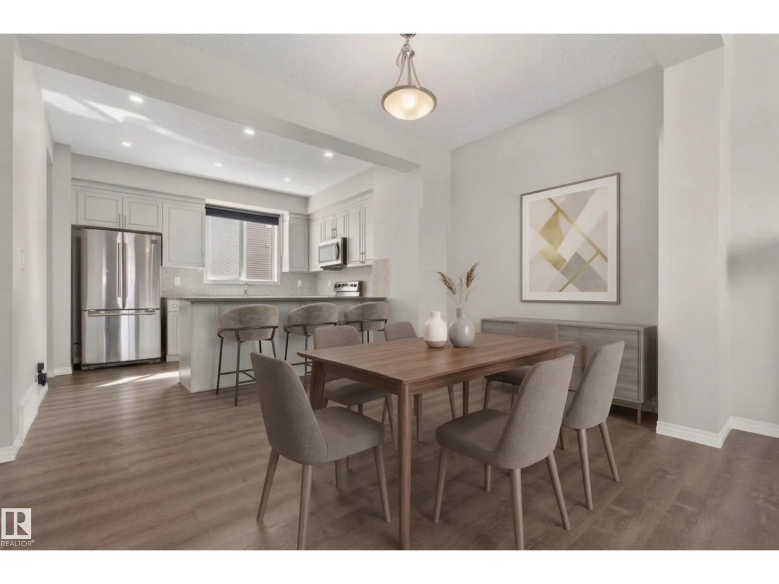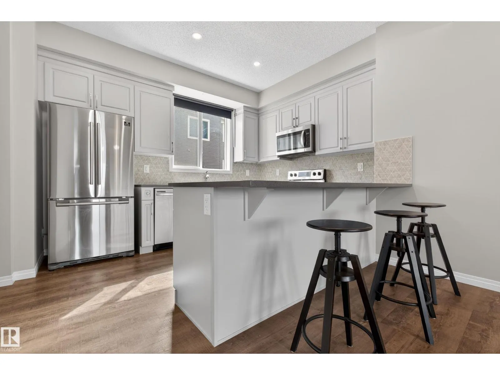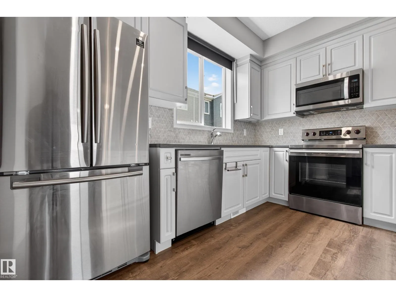 Welcome to this beautifully positioned townhouse in Walker Lakes, backing onto a green walking trail with elevated views that offer added privacy and open surroundings. This well-planned 3-bedroom, 2.5-bath home features a functional layout across three levels, including a flexible entry-level space ideal for a home office, gym, or additional living area. The main floor is bright and open, highlighted by a modern kitchen with a large island, stainless steel appliances, and seamless flow into the living and dining areas. Enjoy the balcony overlooking the green space and walking pathsâperfect for relaxing outdoors. Upstairs, the primary suite includes a walk-in closet and private ensuite, along with two additional bedrooms and a full bathroom. Complete with a double attached garage and located close to schools, shopping, transit, and Anthony Henday. (id:27476)