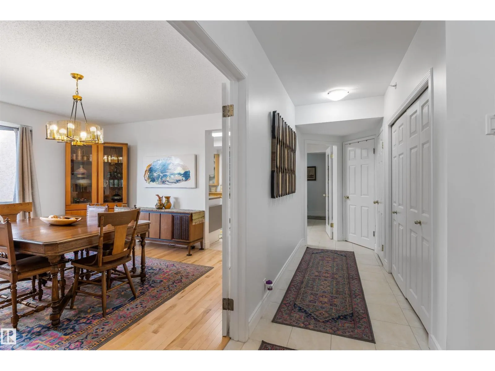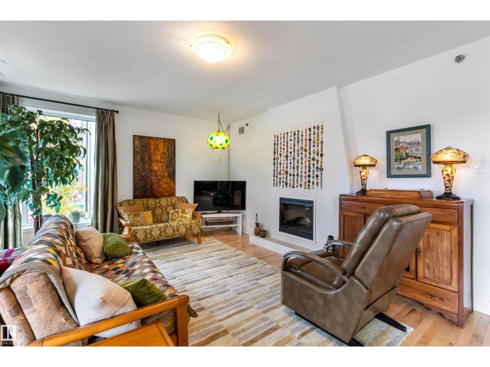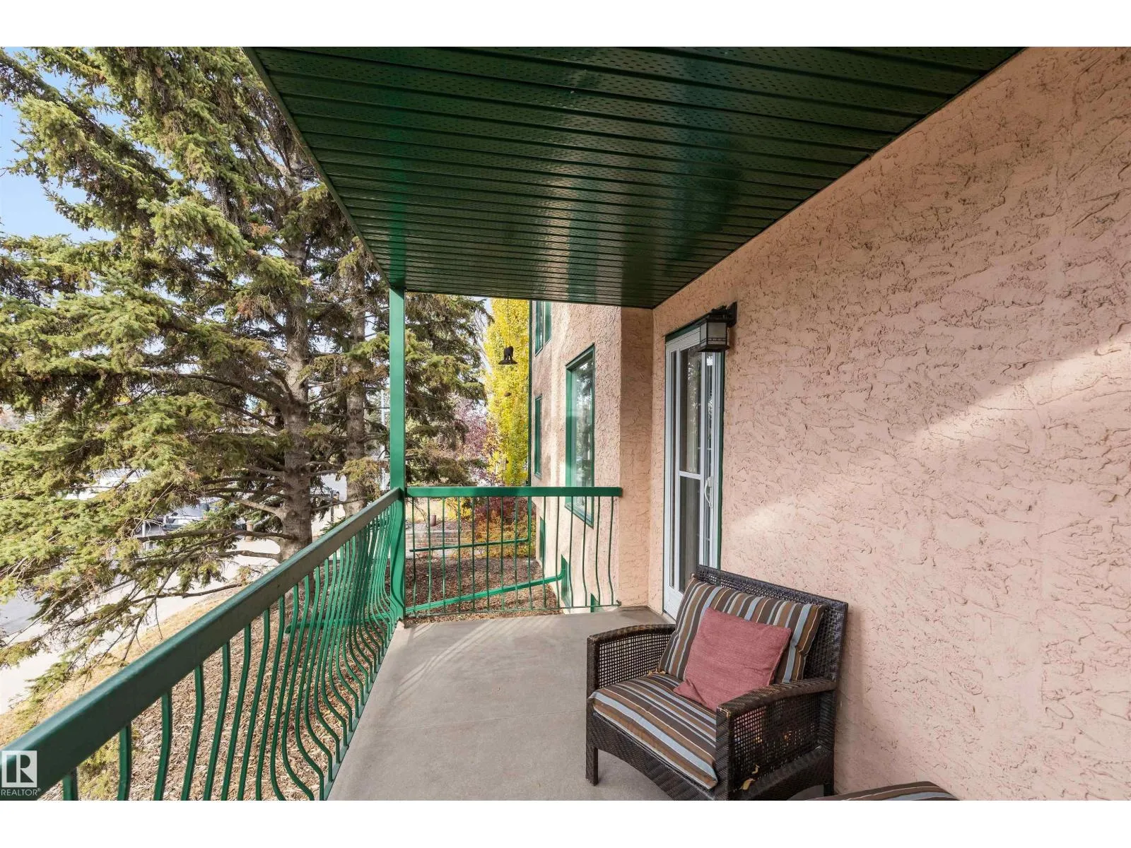 Steps from the Edmonton River Valley & MILL CREEK RAVINE, discover this SPACIOUS ONE OF A KIND CONDO in the Rembrandt. The unit opens into the kitchen w/ European style cabinetry, tiled back splash & pot/pan drawers. HARDWOOD FLOORING in living & dining room. Dining room can easily accommodate entertaining & includes a bay window w/ views of the River Valley & an abundance of storage w/ 2 closets. FRENCH DOORS separate the dining room from the central hall. Living room is huge w/ WALLS OF WINDOWS & features a stunning electric FIREPLACE. The living room includes flex space on one end to accommodate an office. There are 2 BEDROOMS & a large DEN that could be utilized as a 3rd bedroom. The den features a 2ND FIREPLACE & access to a large covered balcony. The primary bedroom features a 5pce ensuite w/ double sinks. There is a 3pce bathroom & in suite laundry. This is a unique building w/ only 16 suites. ALL UTILITIES are included in the condo fee. Pet Friendly & 1 assigned underground HEATED PARKING STALL! (id:27476)