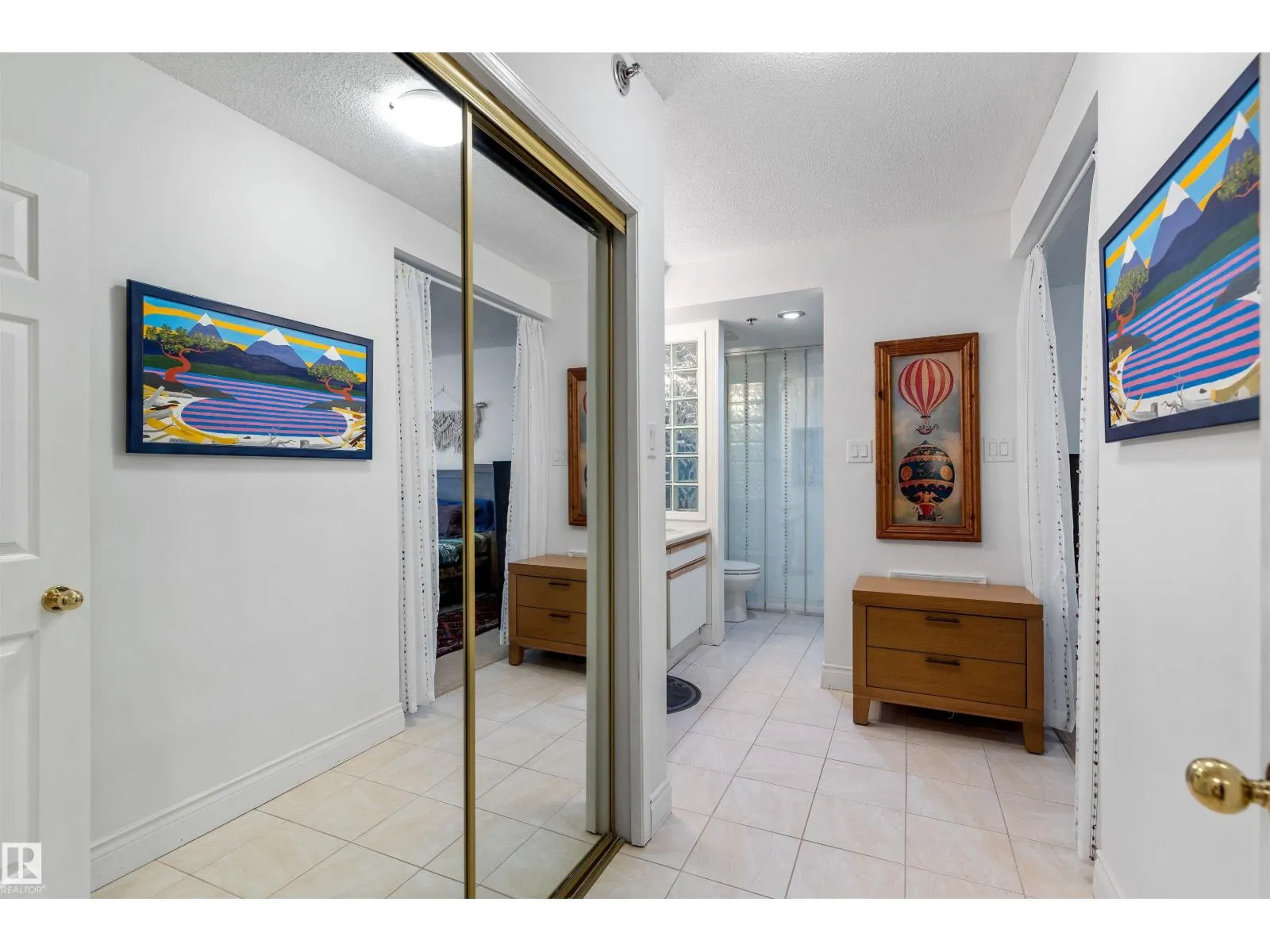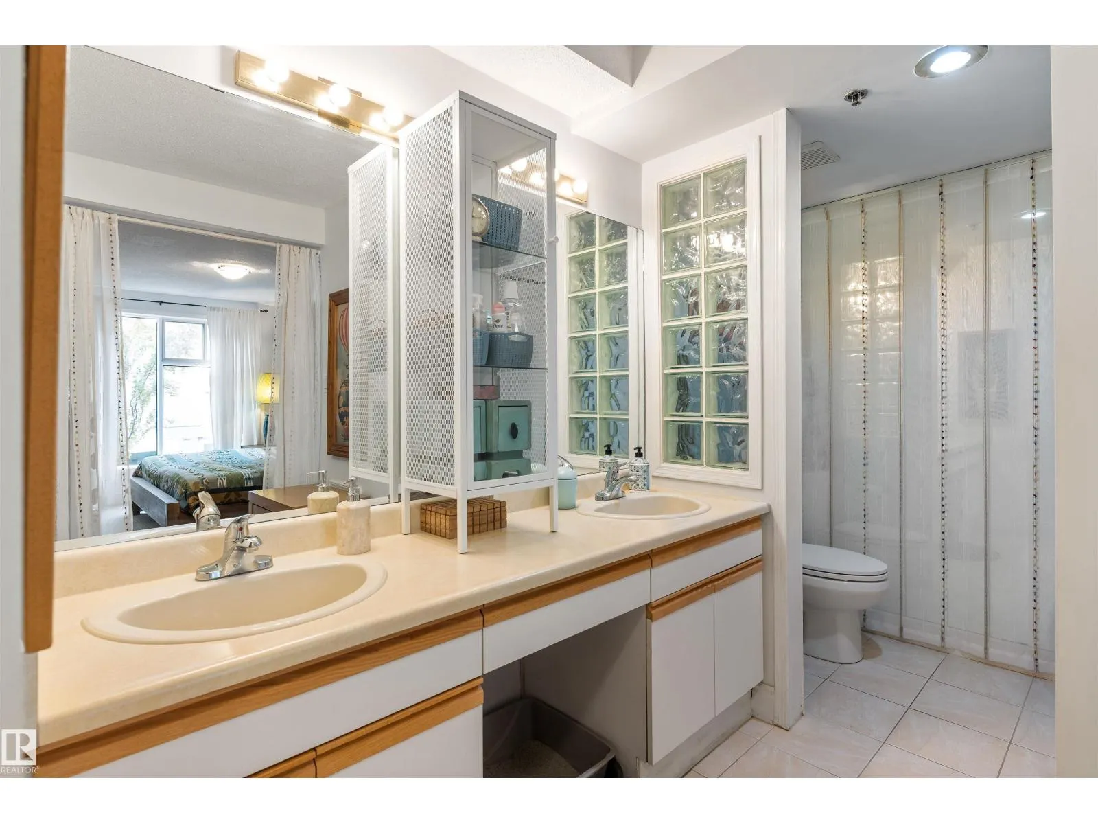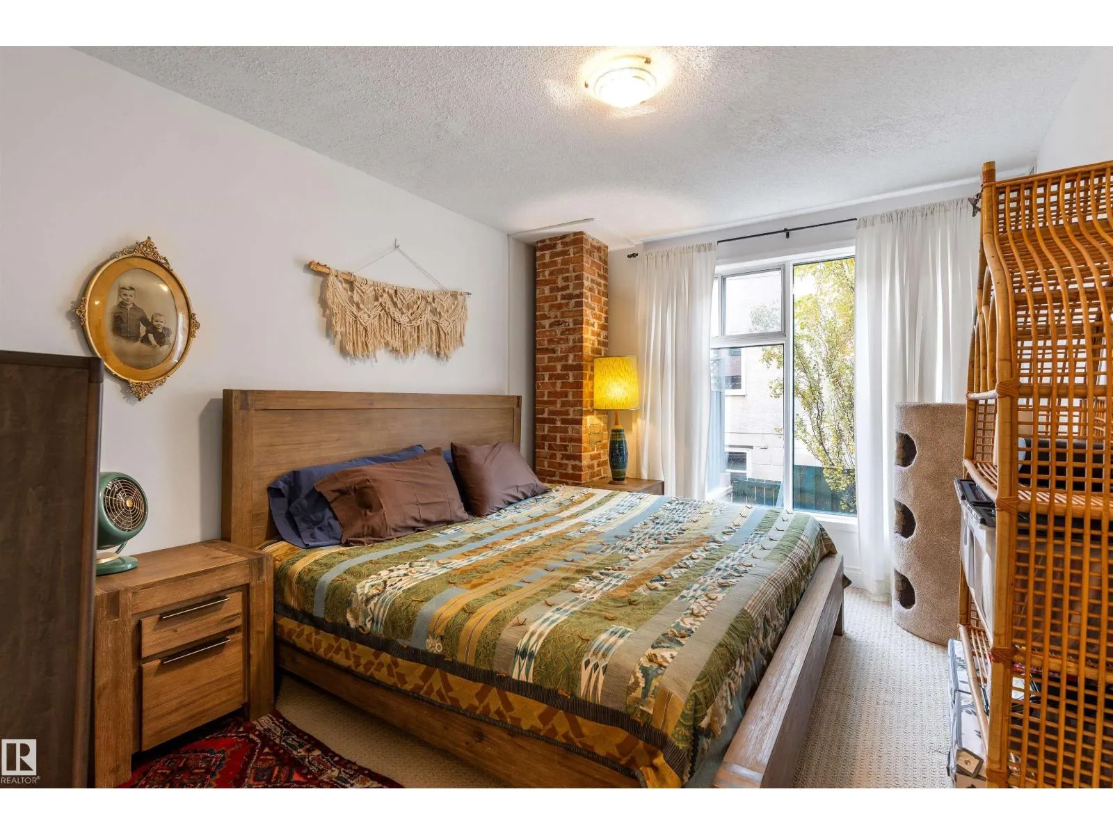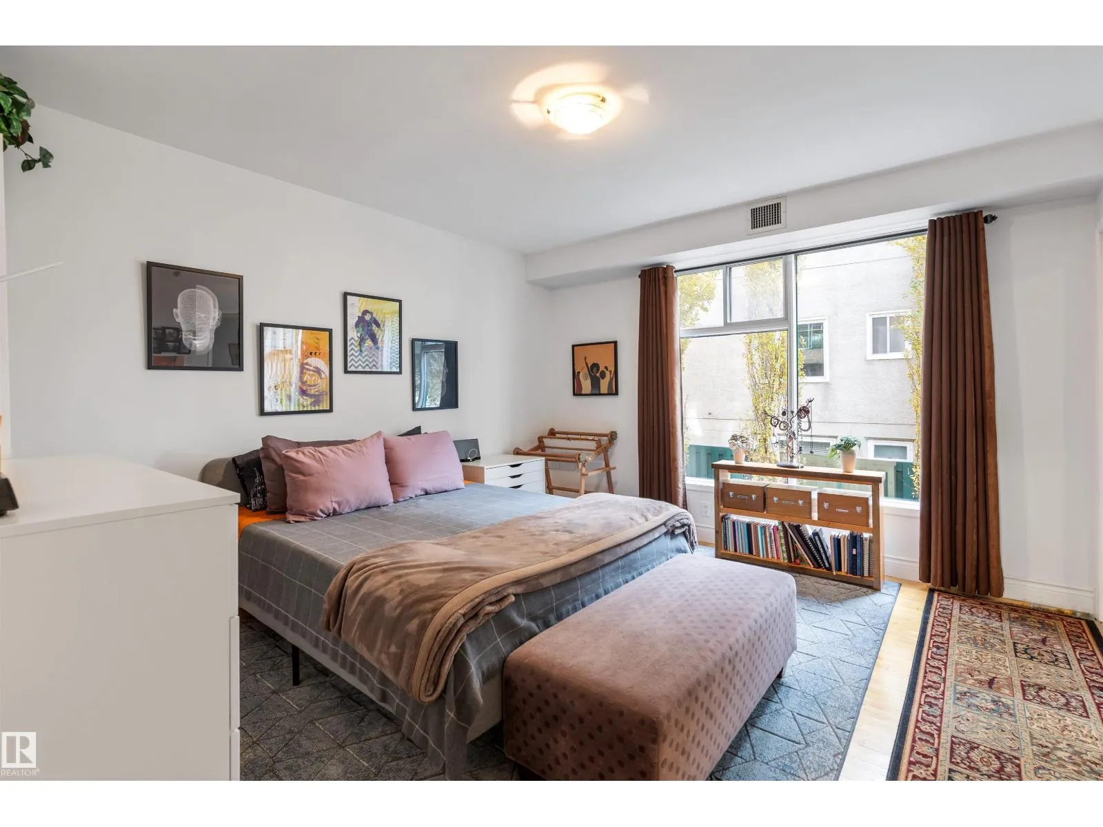 Steps from the Edmonton River Valley & MILL CREEK RAVINE, discover this SPACIOUS ONE OF A KIND CONDO in the Rembrandt. The unit opens into the kitchen w/ European style cabinetry, tiled back splash & pot/pan drawers. HARDWOOD FLOORING in living & dining room. Dining room can easily accommodate entertaining & includes a bay window w/ views of the River Valley & an abundance of storage w/ 2 closets. FRENCH DOORS separate the dining room from the central hall. Living room is huge w/ WALLS OF WINDOWS & features a stunning electric FIREPLACE. The living room includes flex space on one end to accommodate an office. There are 2 BEDROOMS & a large DEN that could be utilized as a 3rd bedroom. The den features a 2ND FIREPLACE & access to a large covered balcony. The primary bedroom features a 5pce ensuite w/ double sinks. There is a 3pce bathroom & in suite laundry. This is a unique building w/ only 16 suites. ALL UTILITIES are included in the condo fee. Pet Friendly & 1 assigned underground HEATED PARKING STALL! (id:27476)