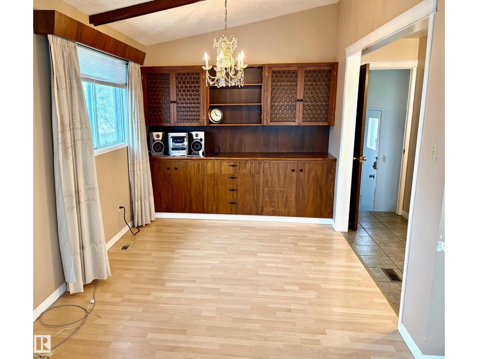Solid, open beam bungalow on a large lot in a great neighbourhood. Located in Evansdale, this 3 bedroom, 1.5 bathroom home has laminate and ceramic tile floors, main floor laundry off the back entrance, an oversized 24' x 24' garage, and a partially developed basement with a wood-burning fireplace. The large yard has a heated shed and access to a 20' wide (approximate) Utility Right-of-way from the City for a small annual fee that makes for a larger yard. (id:27476)
